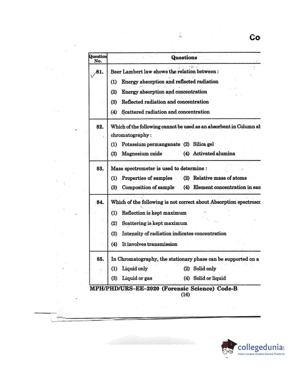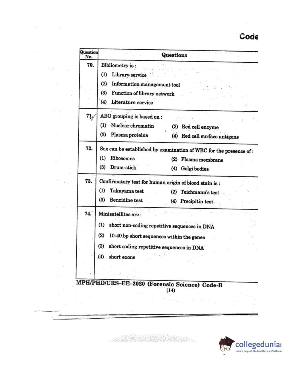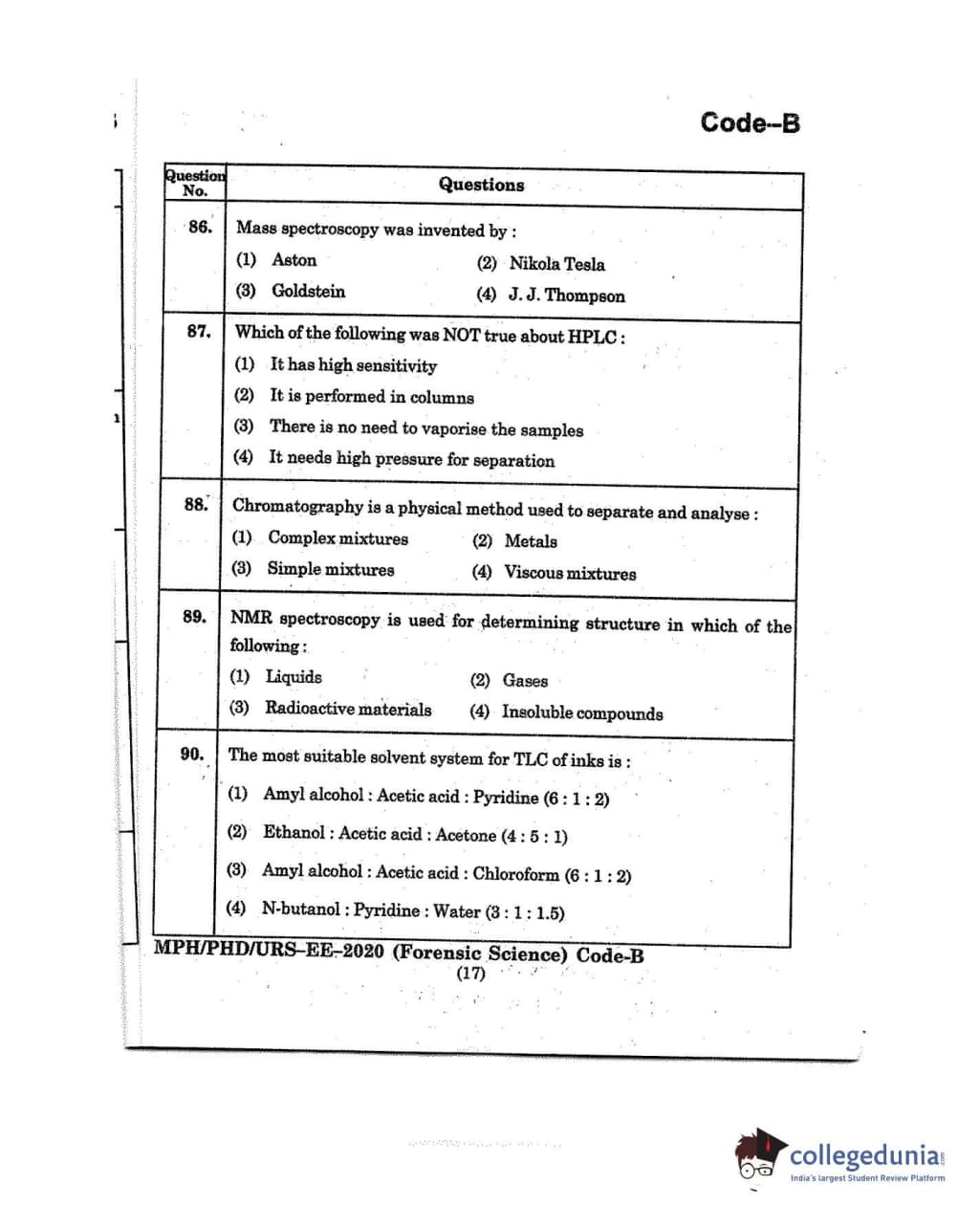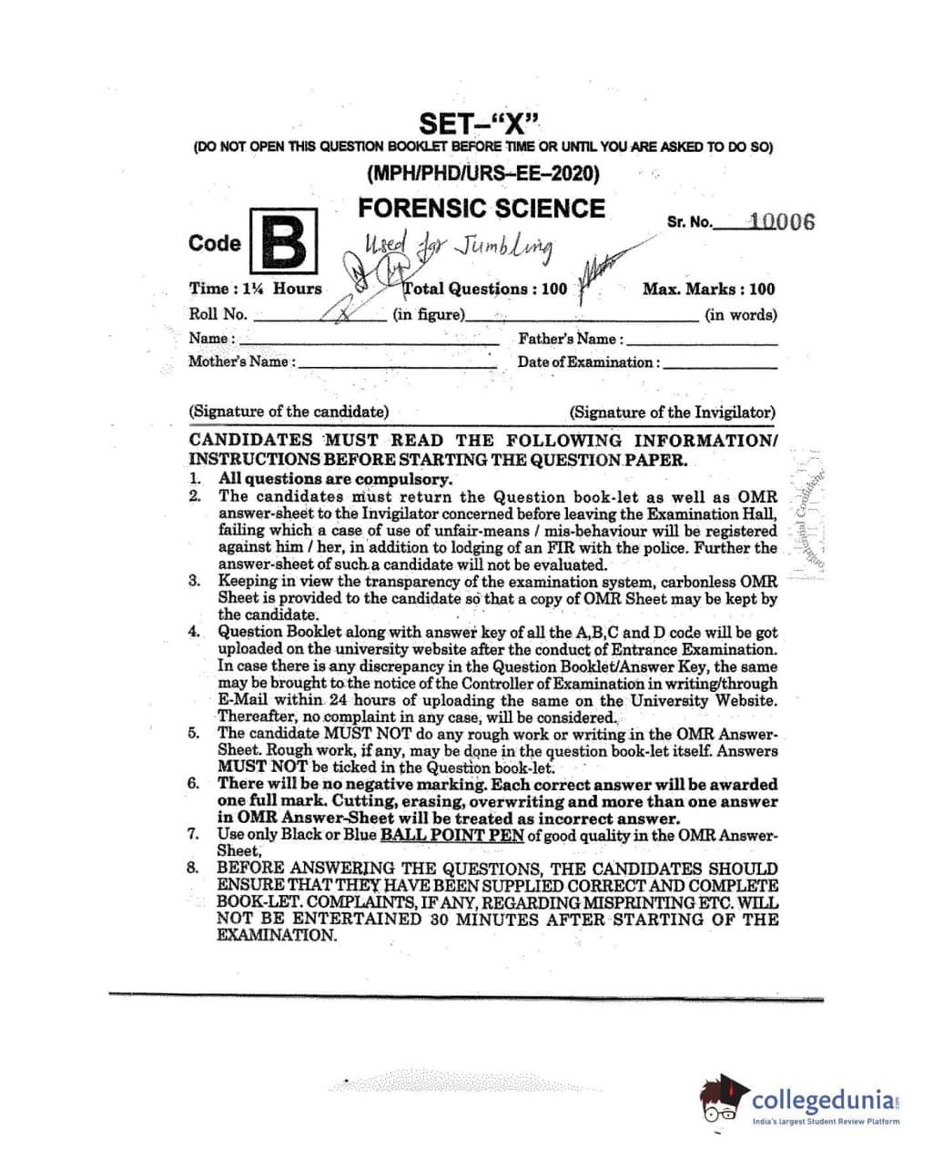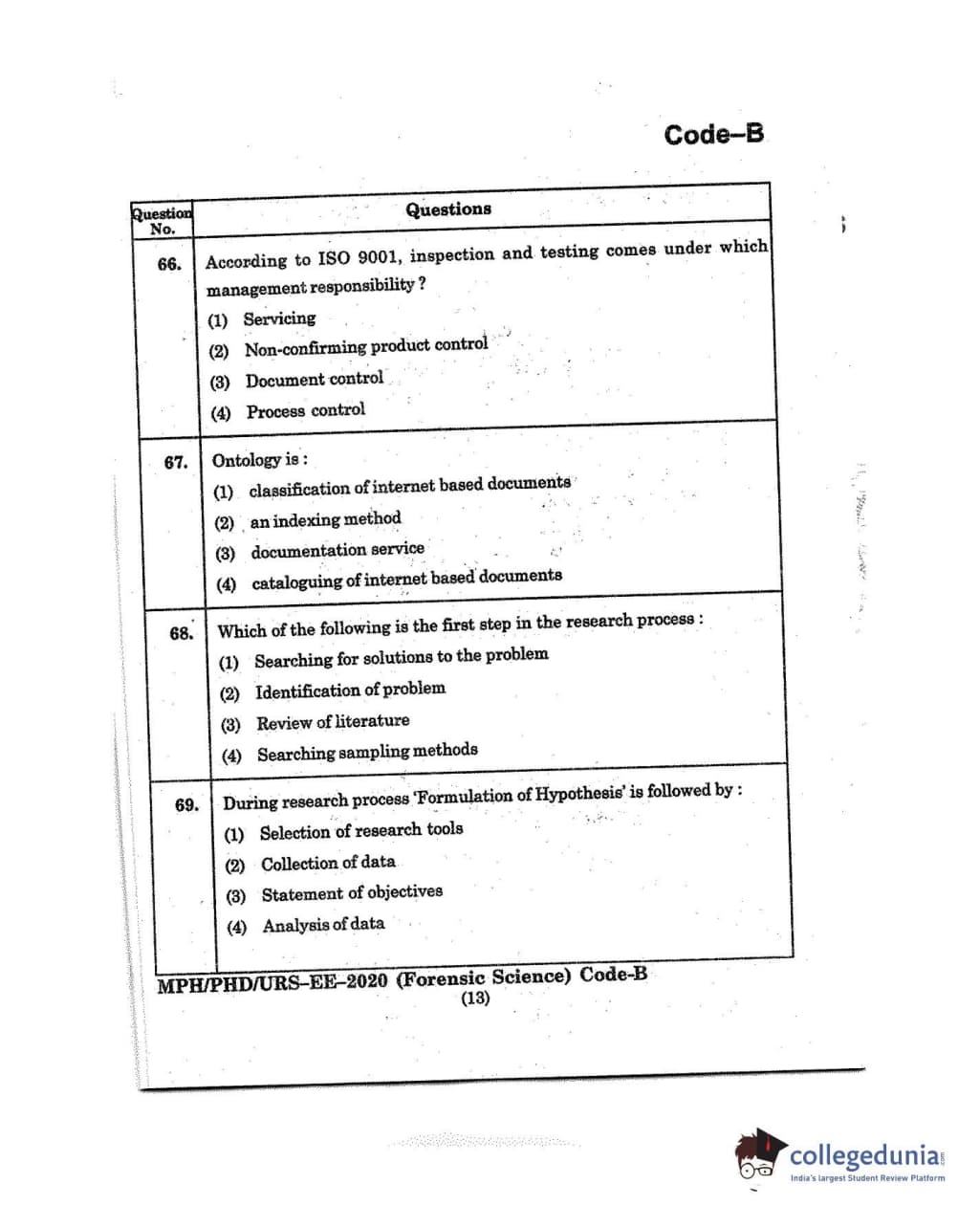MDUCEE 2020 M.Phil/Ph.D/URS - Forensic Science Set B Question Paper with Answer Key PDFs