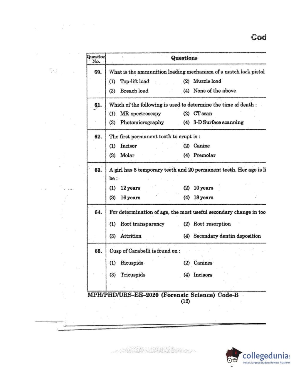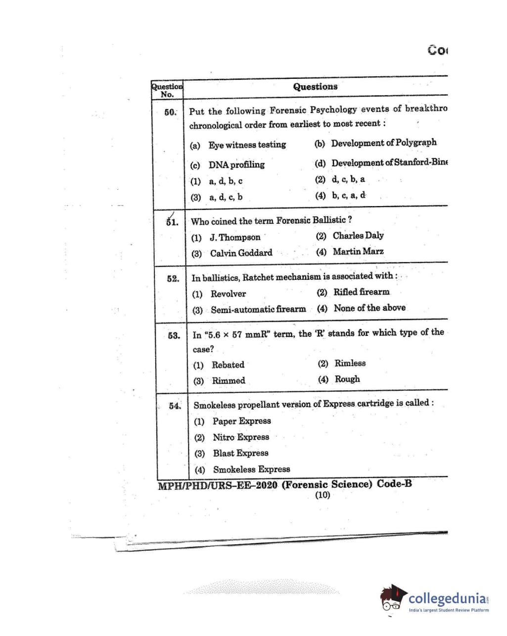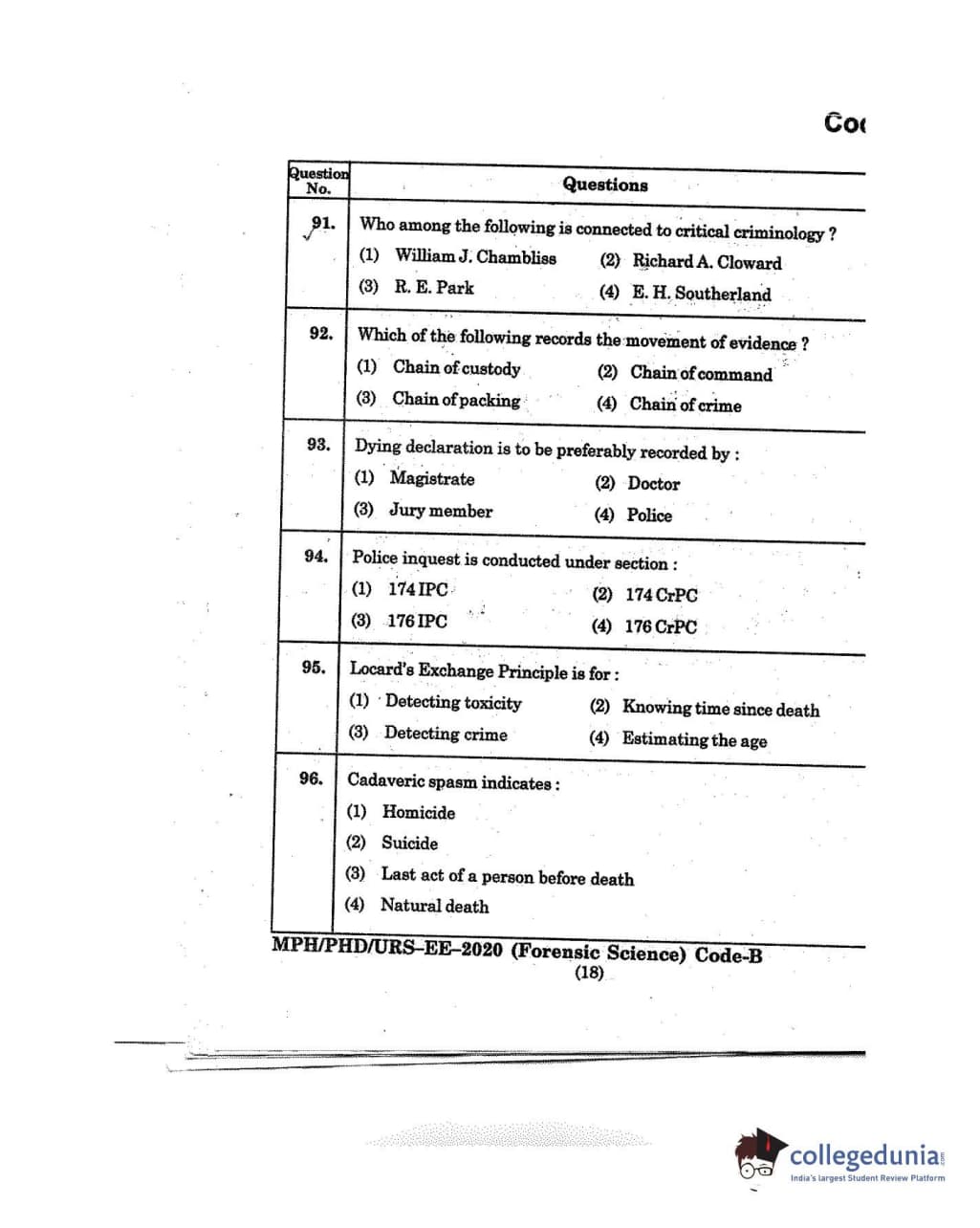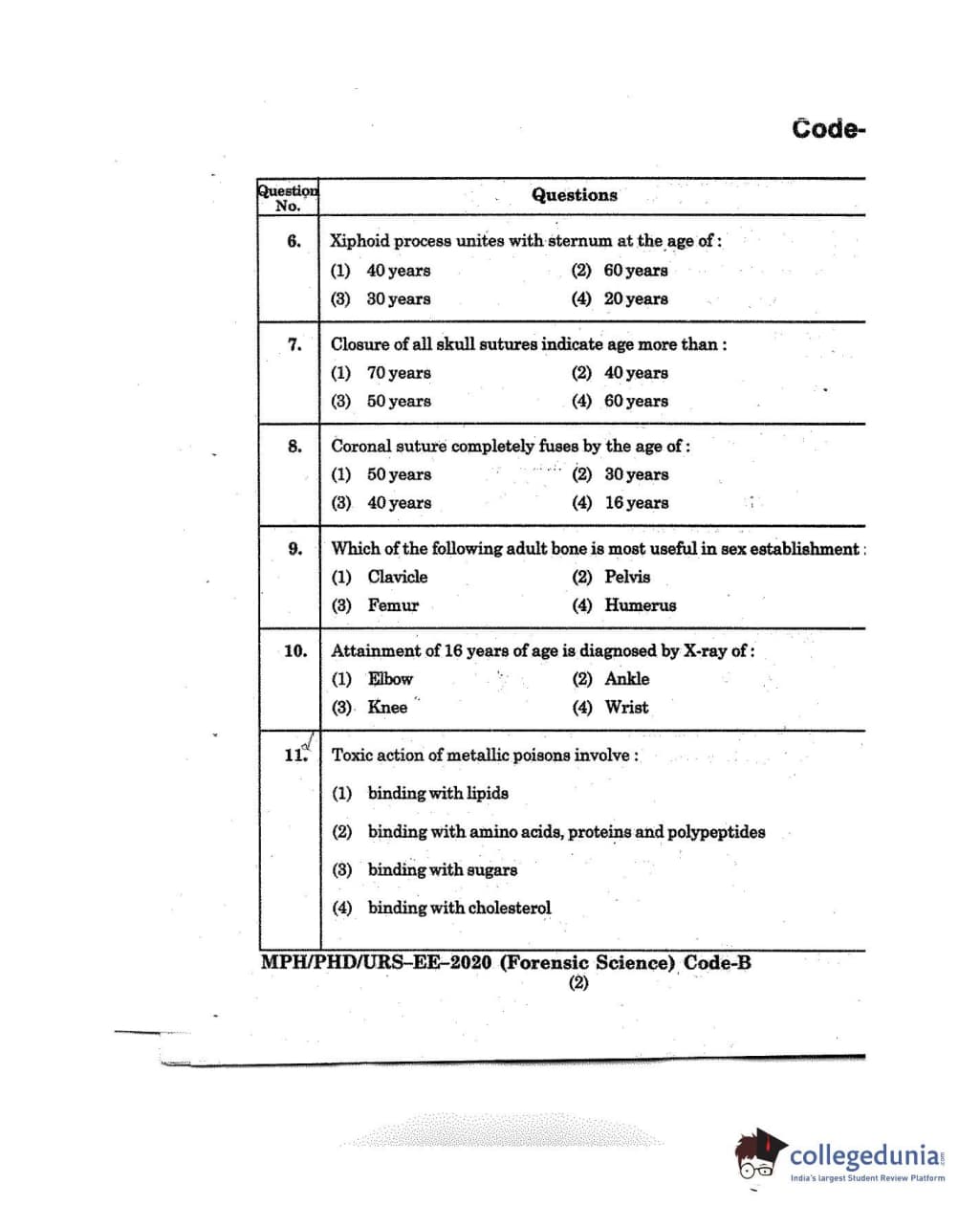 MDUCEE 2020 M.Phil/Ph.D/URS - Forensic Science Set B Question Paper with Answer Key PDFs