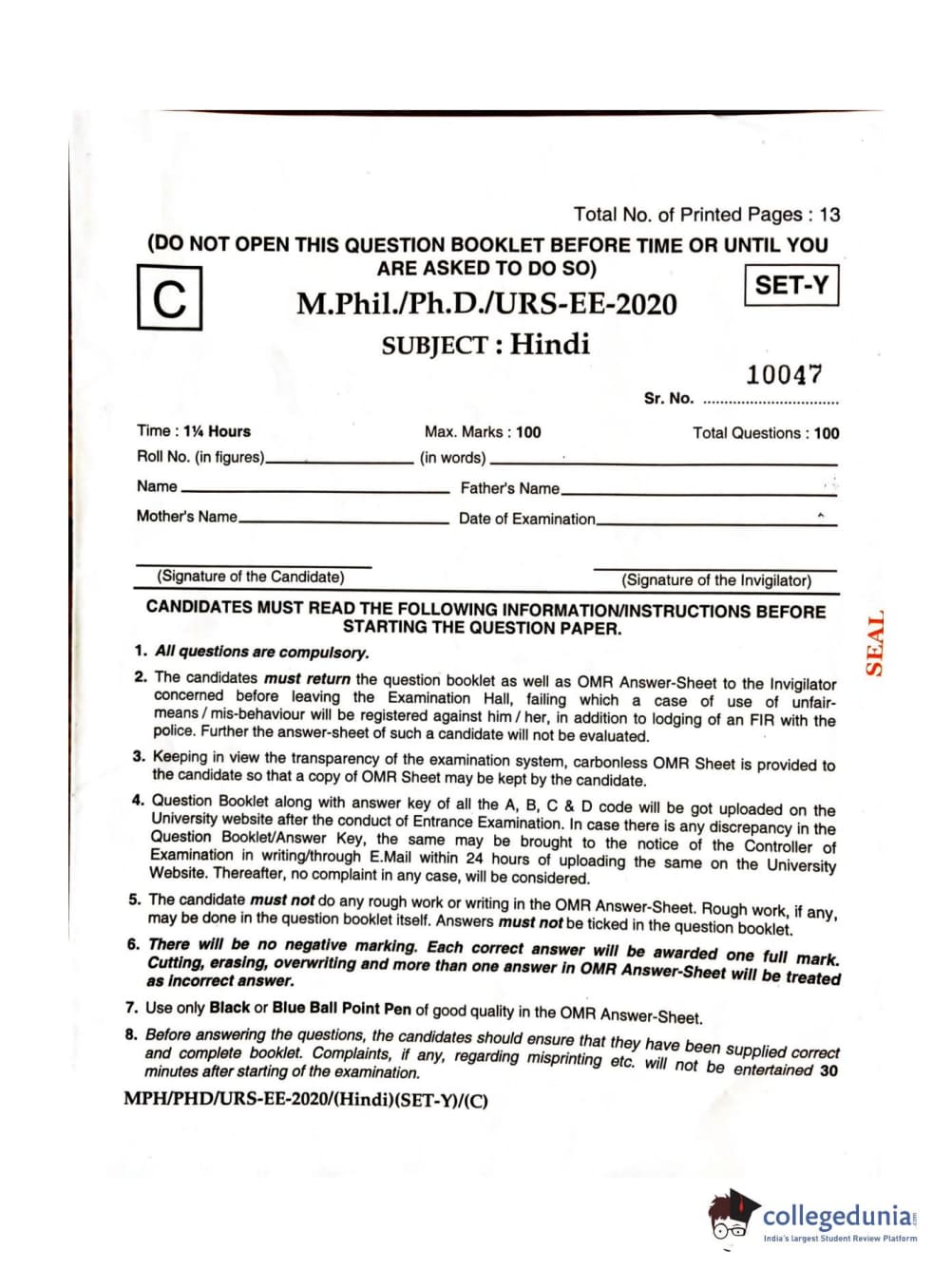 | MDUCEE 2020 M.Phil/Ph.D/URS – Hindi Set C Question Paper PDF | MDUCEE 2020 M.Phil/Ph.D/URS – Hindi Set C Answer Key PDF |