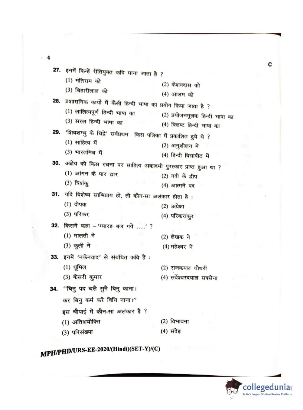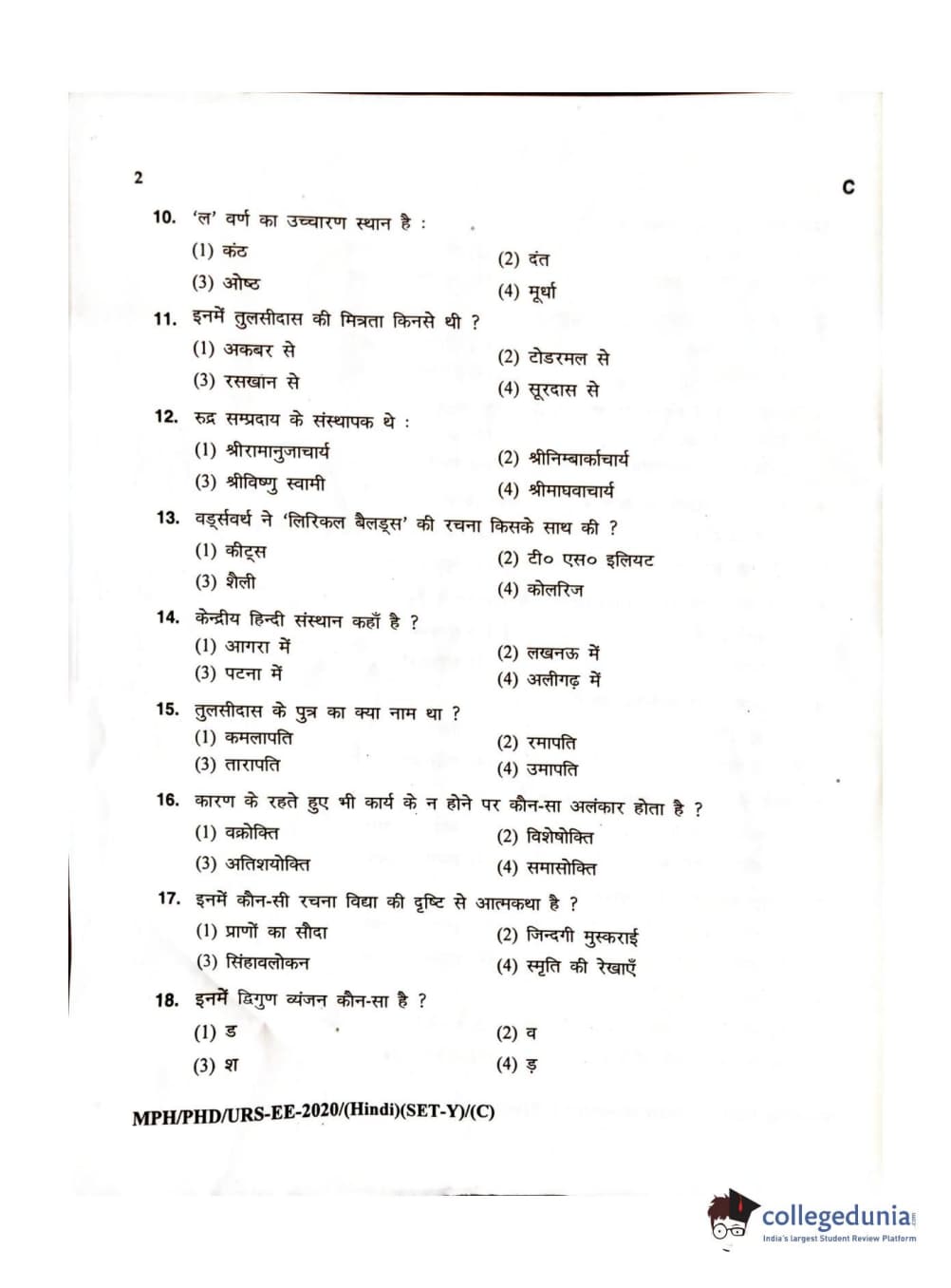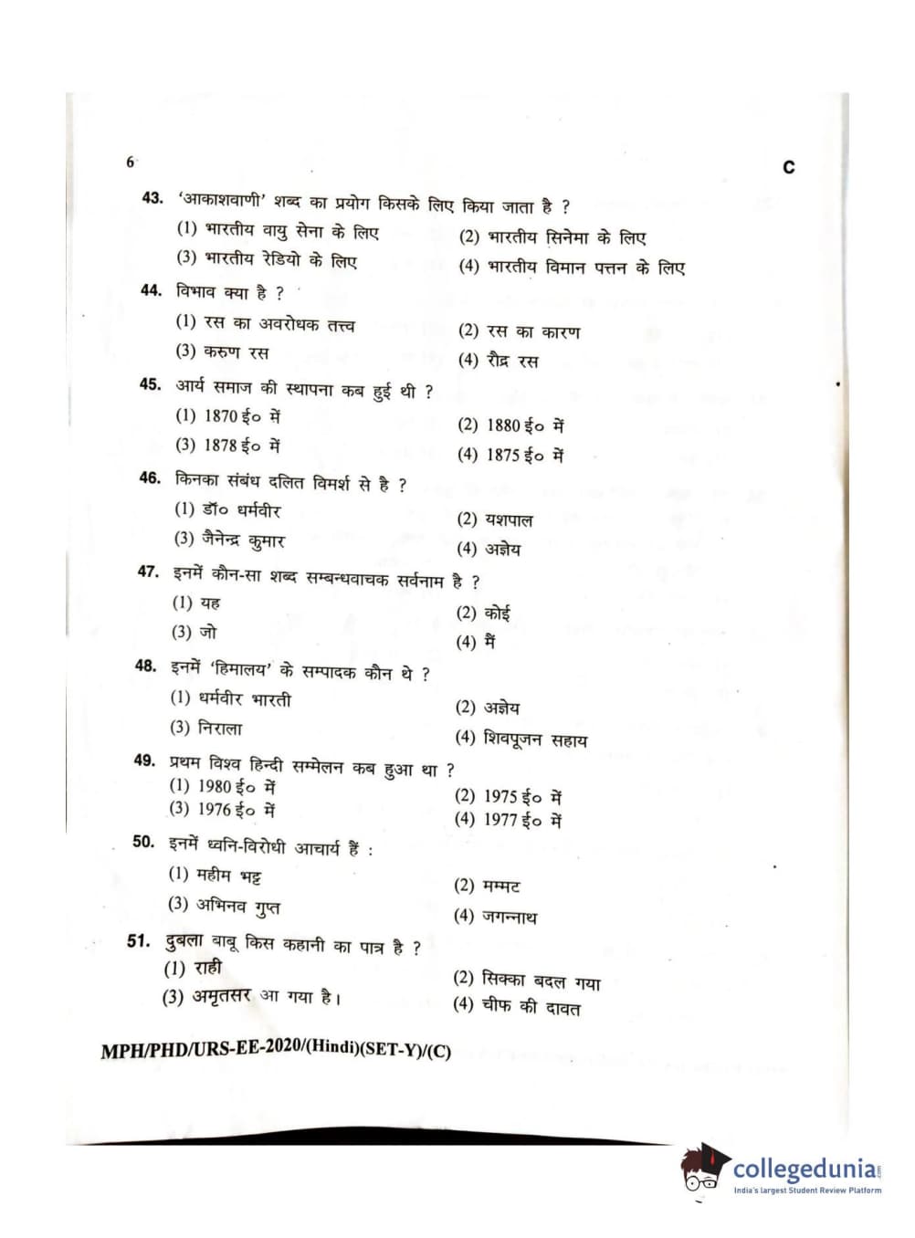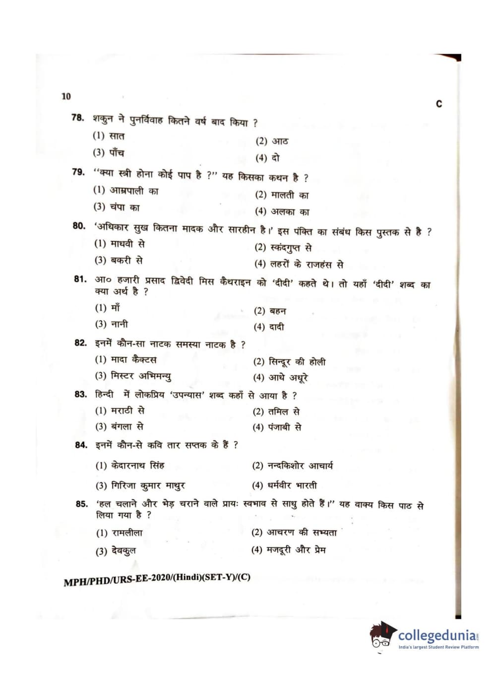 MDUCEE 2020 M.Phil/Ph.D/URS – Hindi Set C Question Paper with Answer Key PDFs