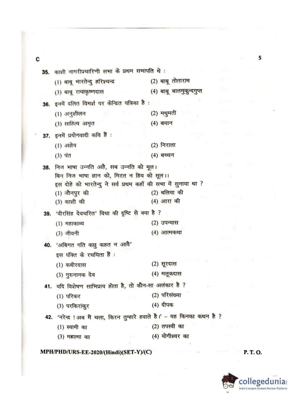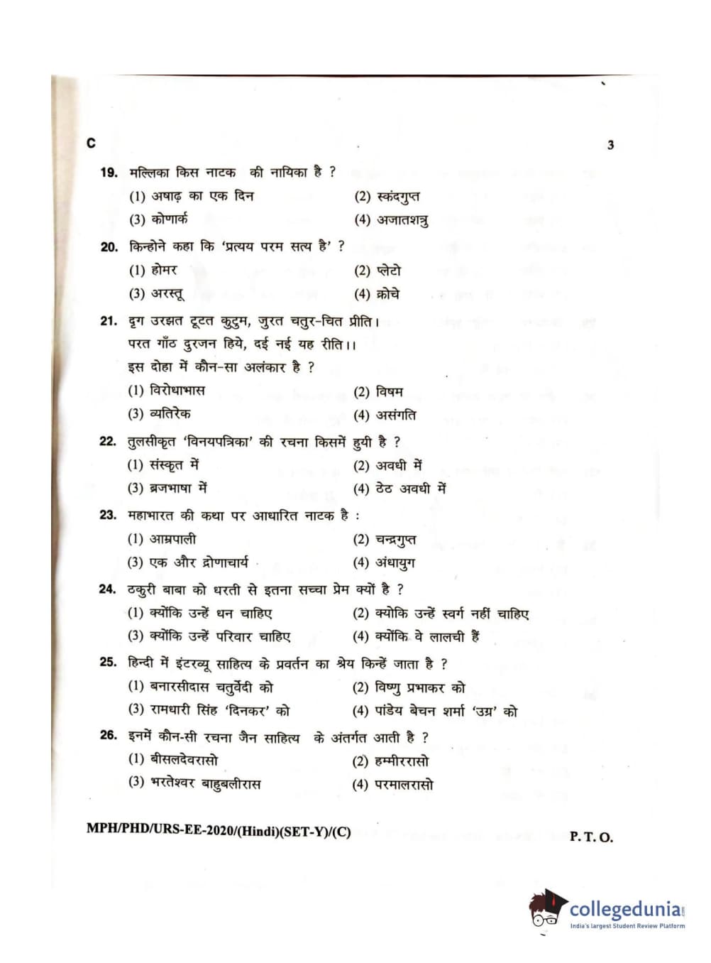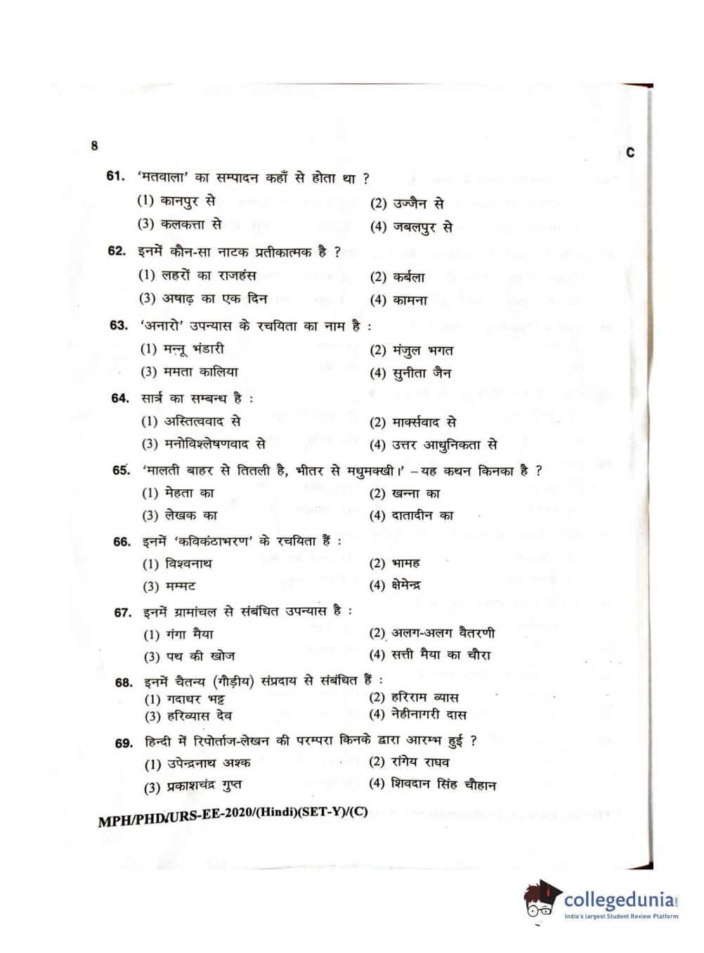 MDUCEE 2020 M.Phil/Ph.D/URS – Hindi Set C Question Paper with Answer Key PDFs