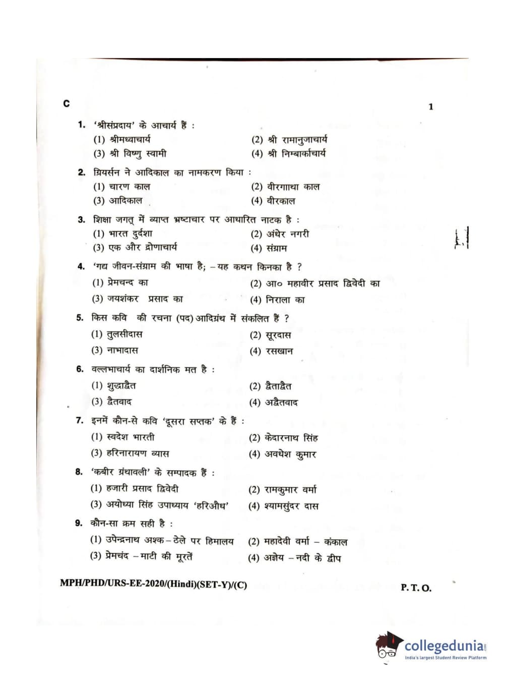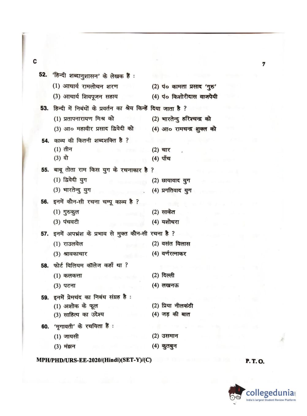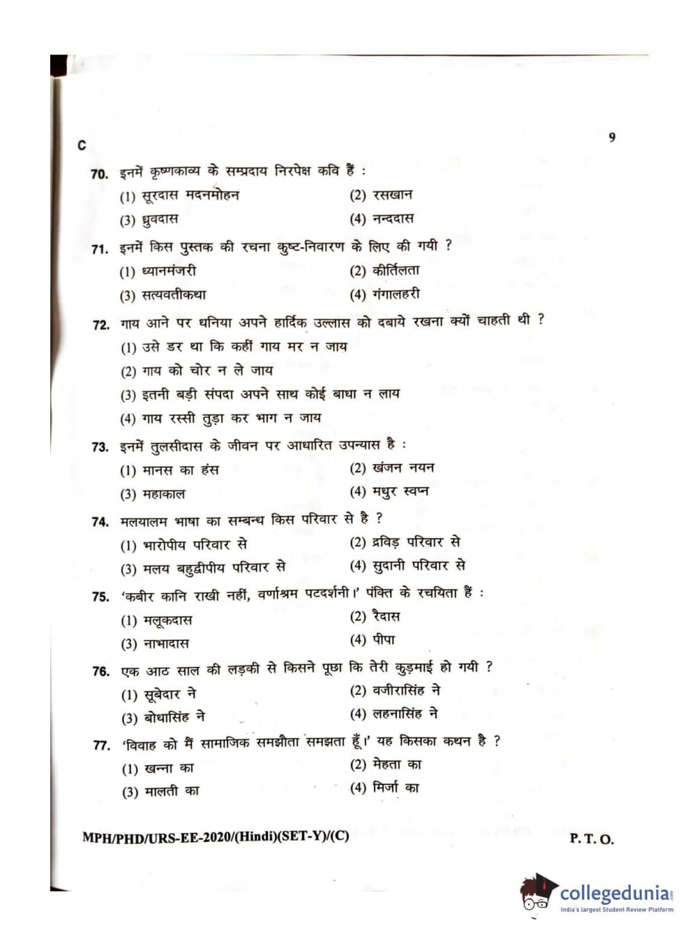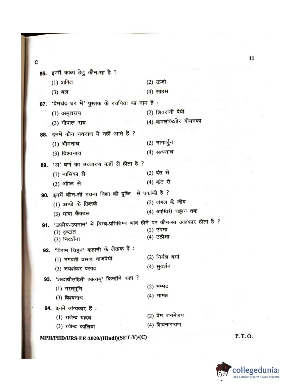 MDUCEE 2020 M.Phil/Ph.D/URS – Hindi Set C Question Paper with Answer Key PDFs