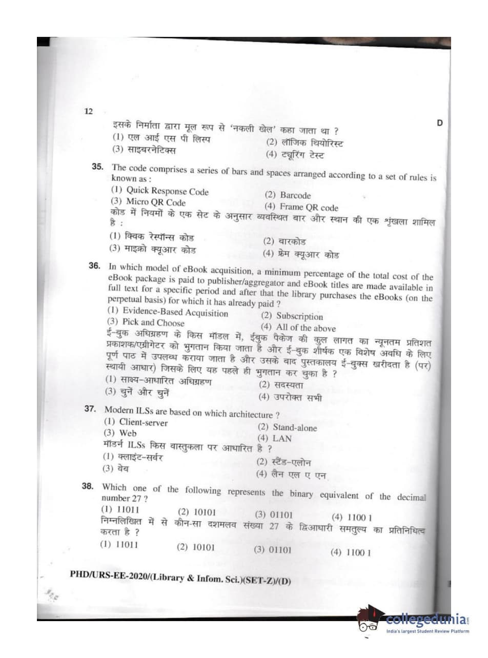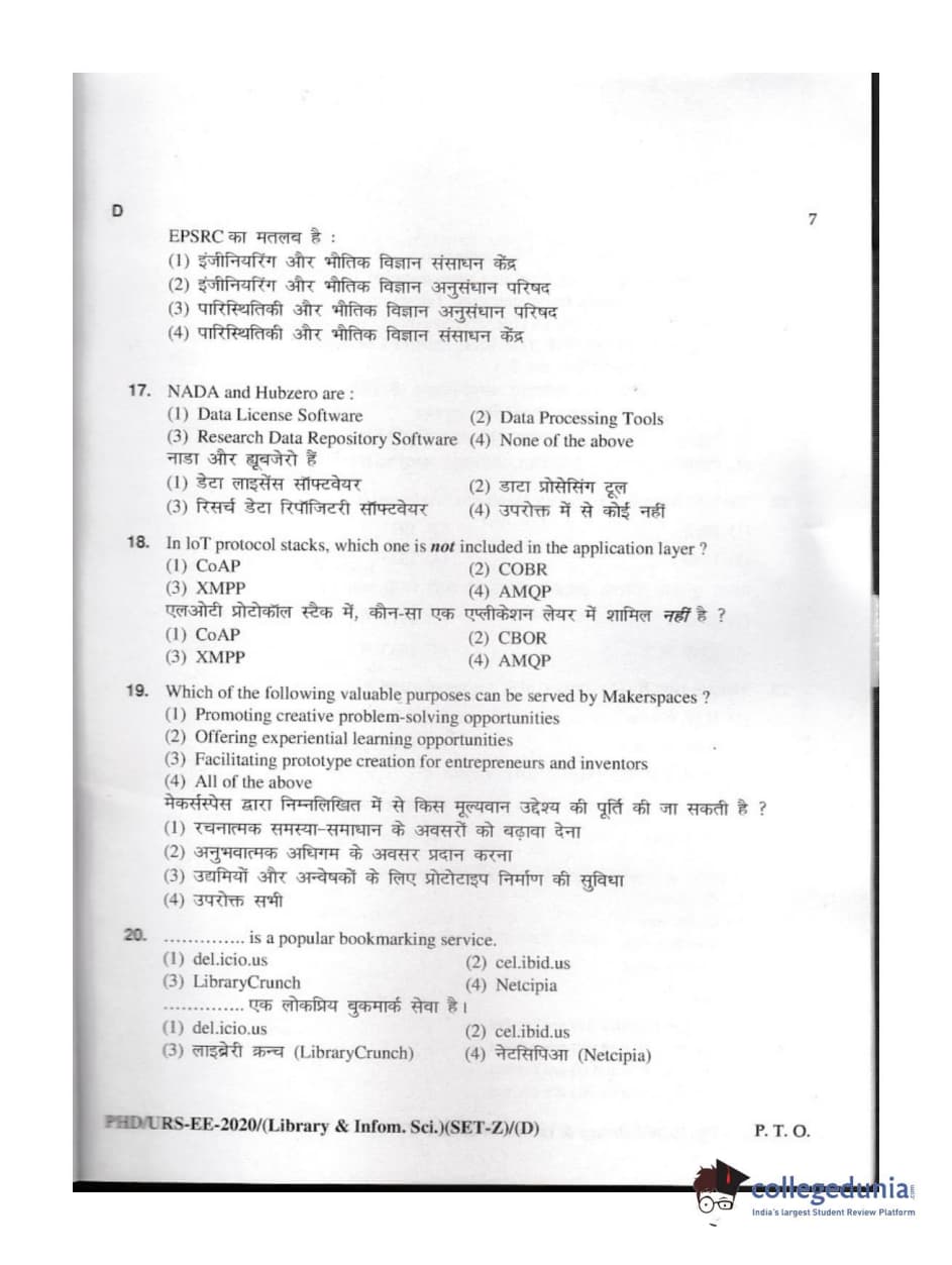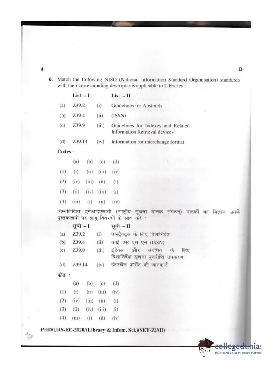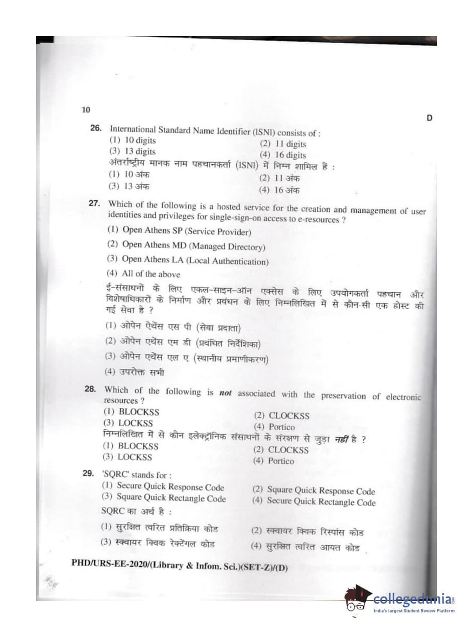 | MDUCEE 2020 M.Phil/Ph.D/URS - Library and Information Science Set D Question Paper PDF | MDUCEE 2020 M.Phil/Ph.D/URS - Library and Information Science Set D Answer Key PDF |