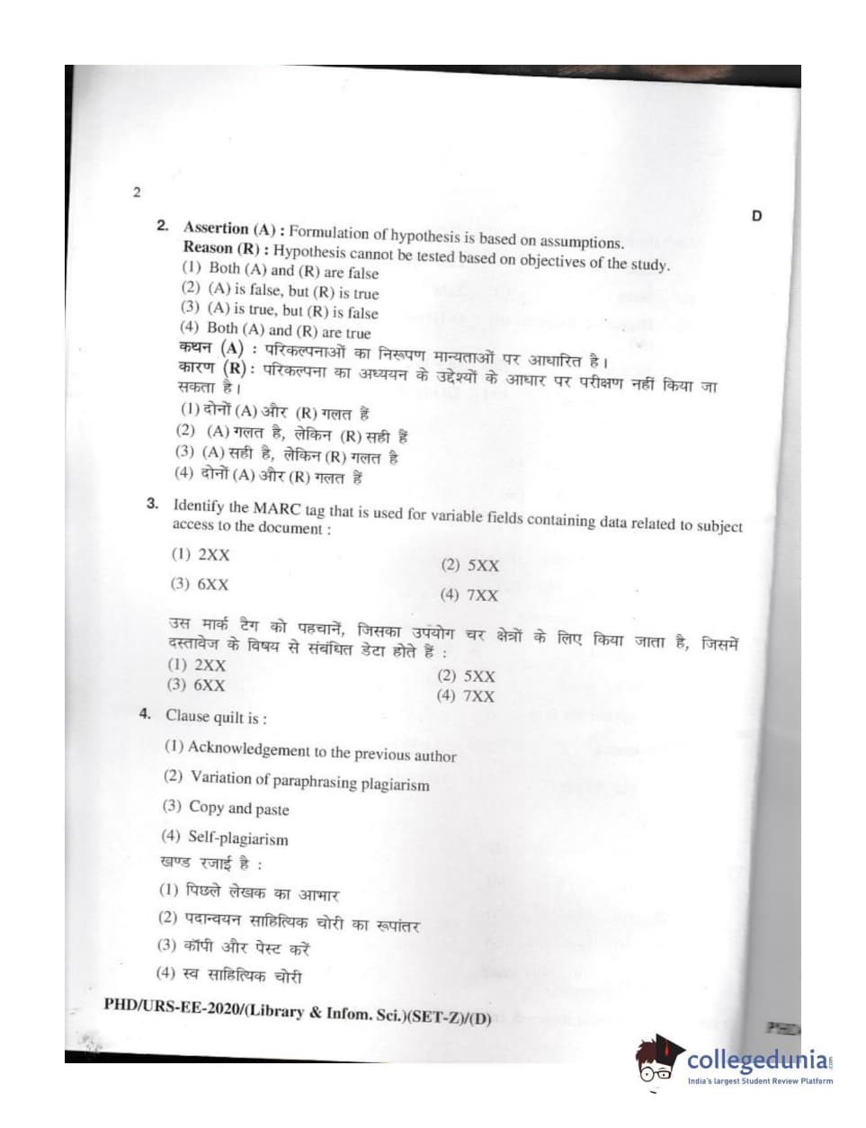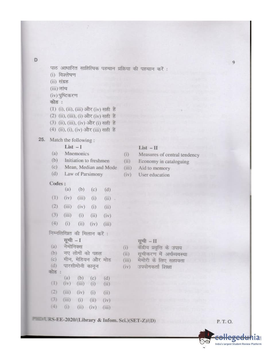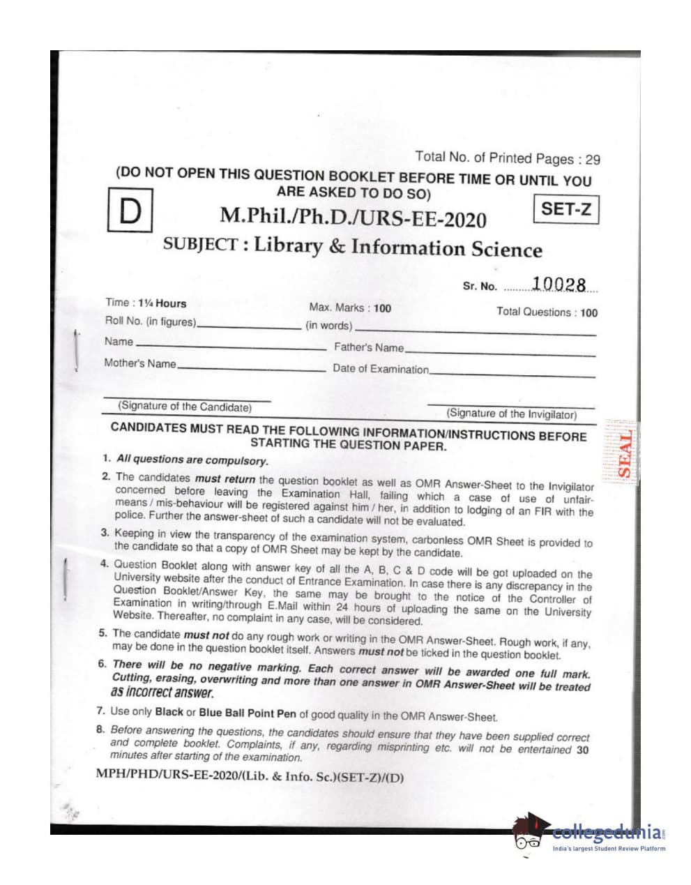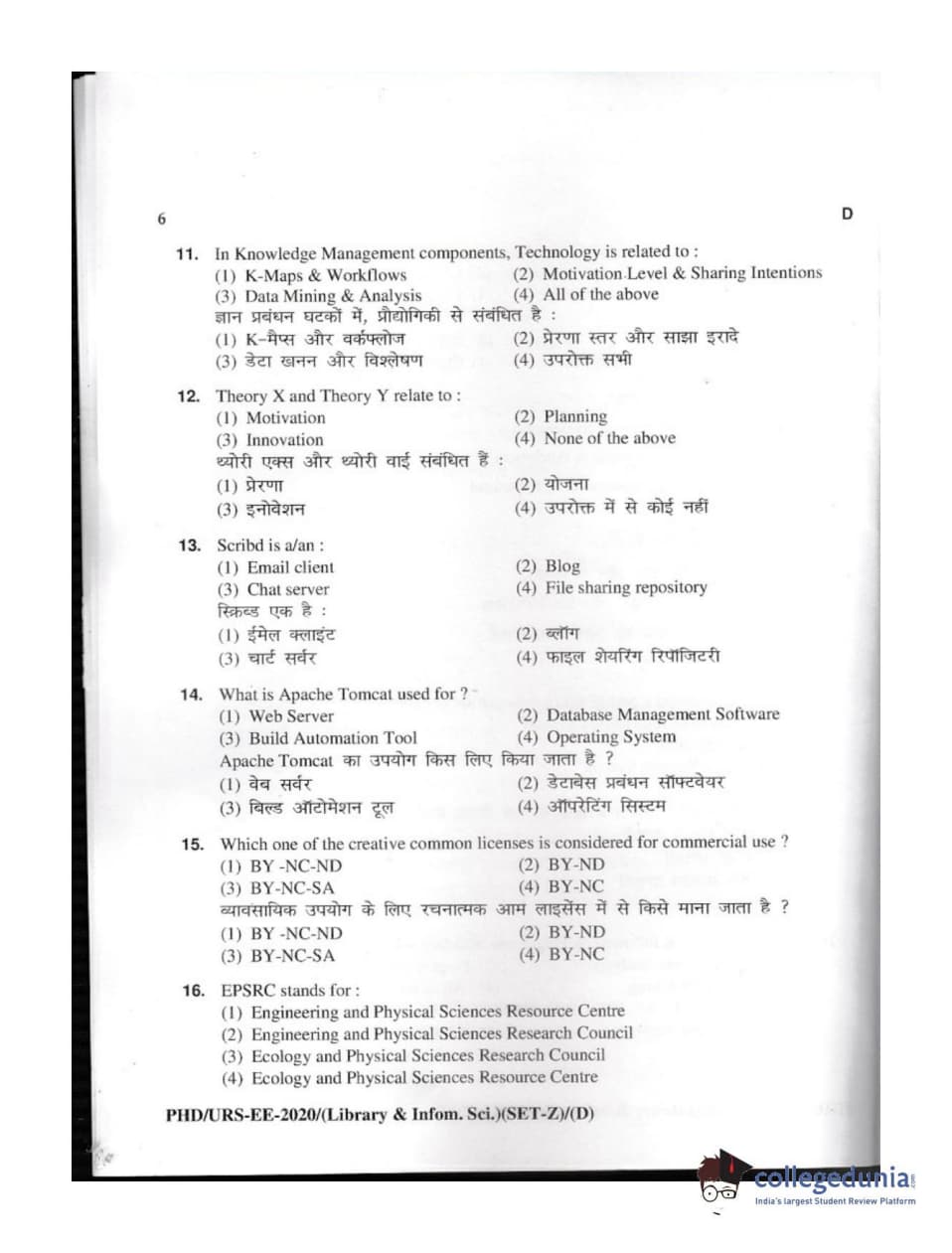 | MDUCEE 2020 M.Phil/Ph.D/URS - Library and Information Science Set D Question Paper PDF | MDUCEE 2020 M.Phil/Ph.D/URS - Library and Information Science Set D Answer Key PDF |