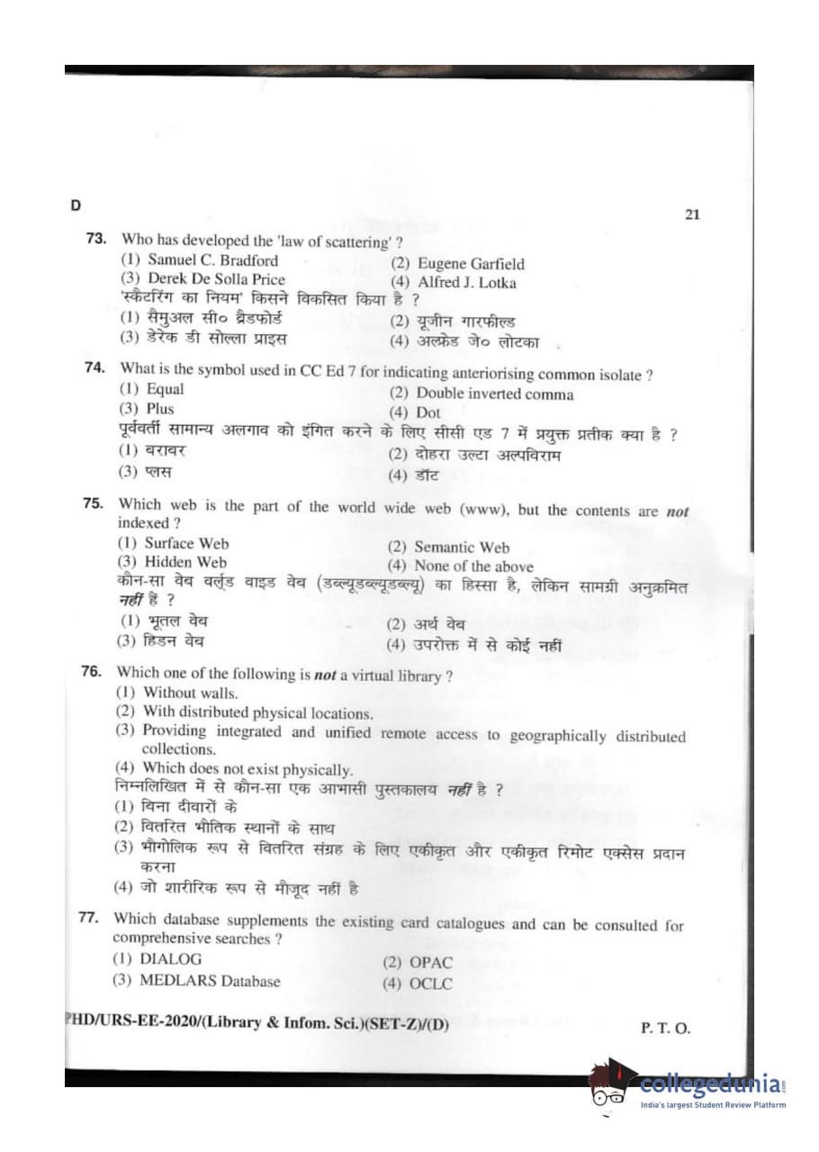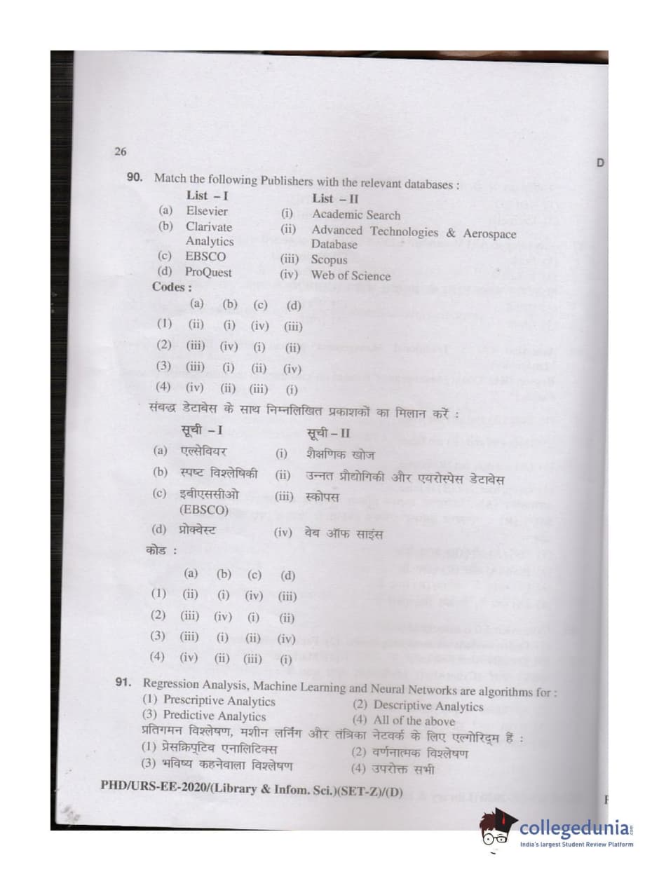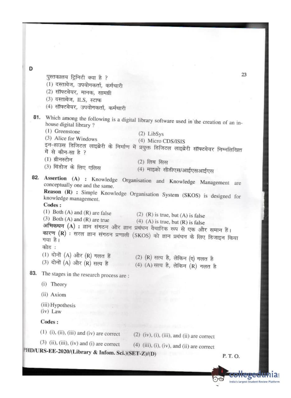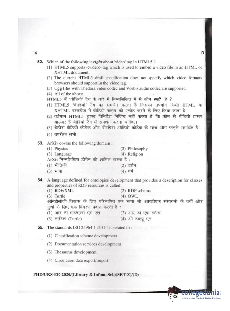 MDUCEE 2020 M.Phil/Ph.D/URS - Library and Information Science Set D Question Paper with Answer Key PDFs