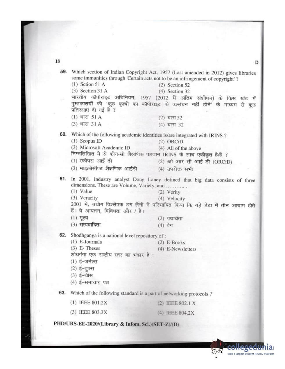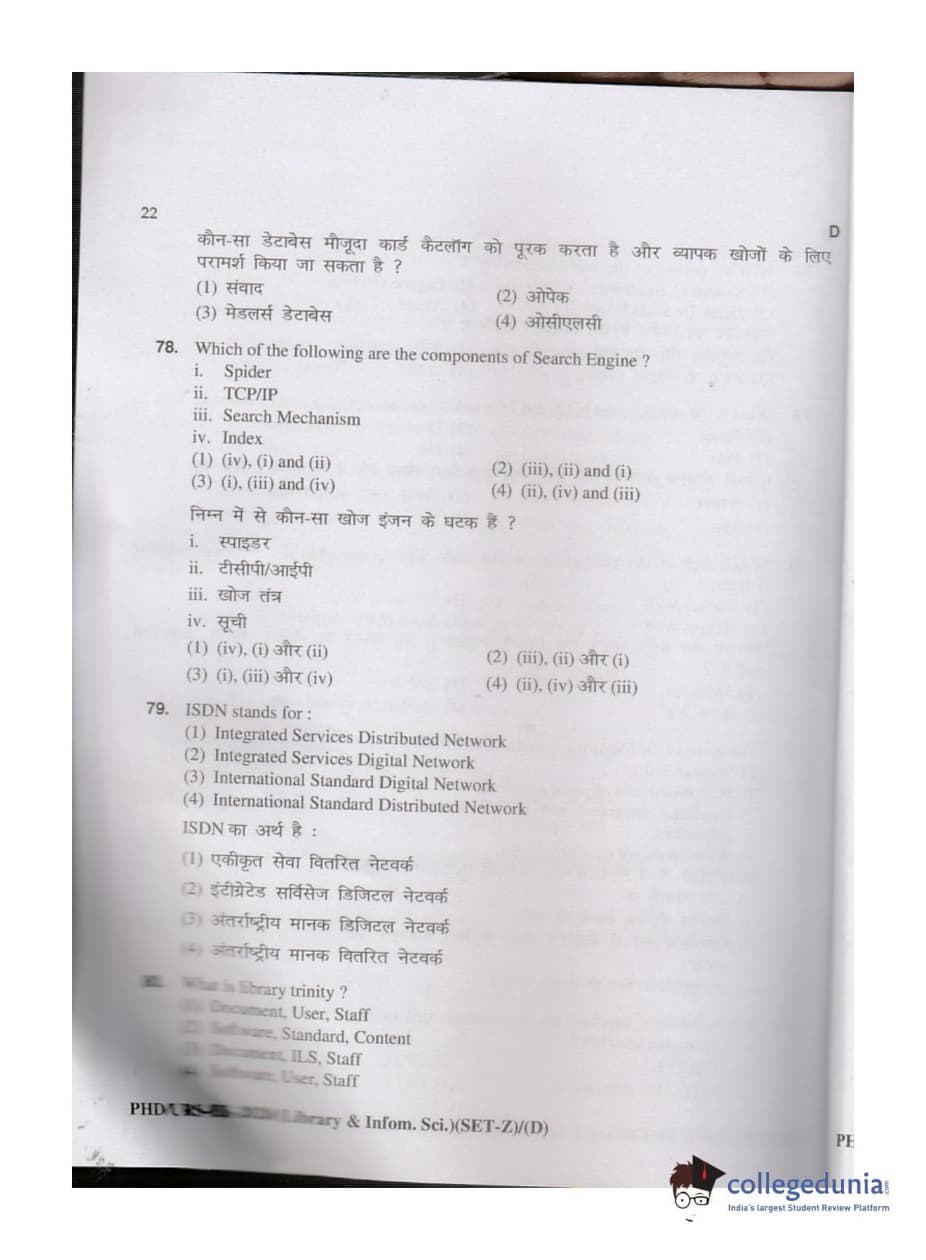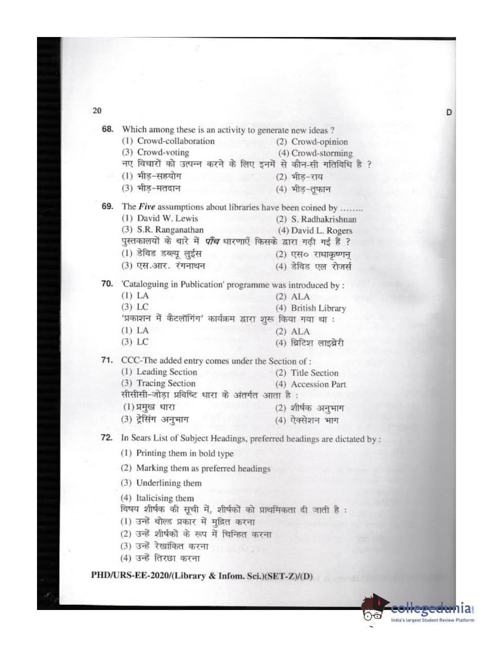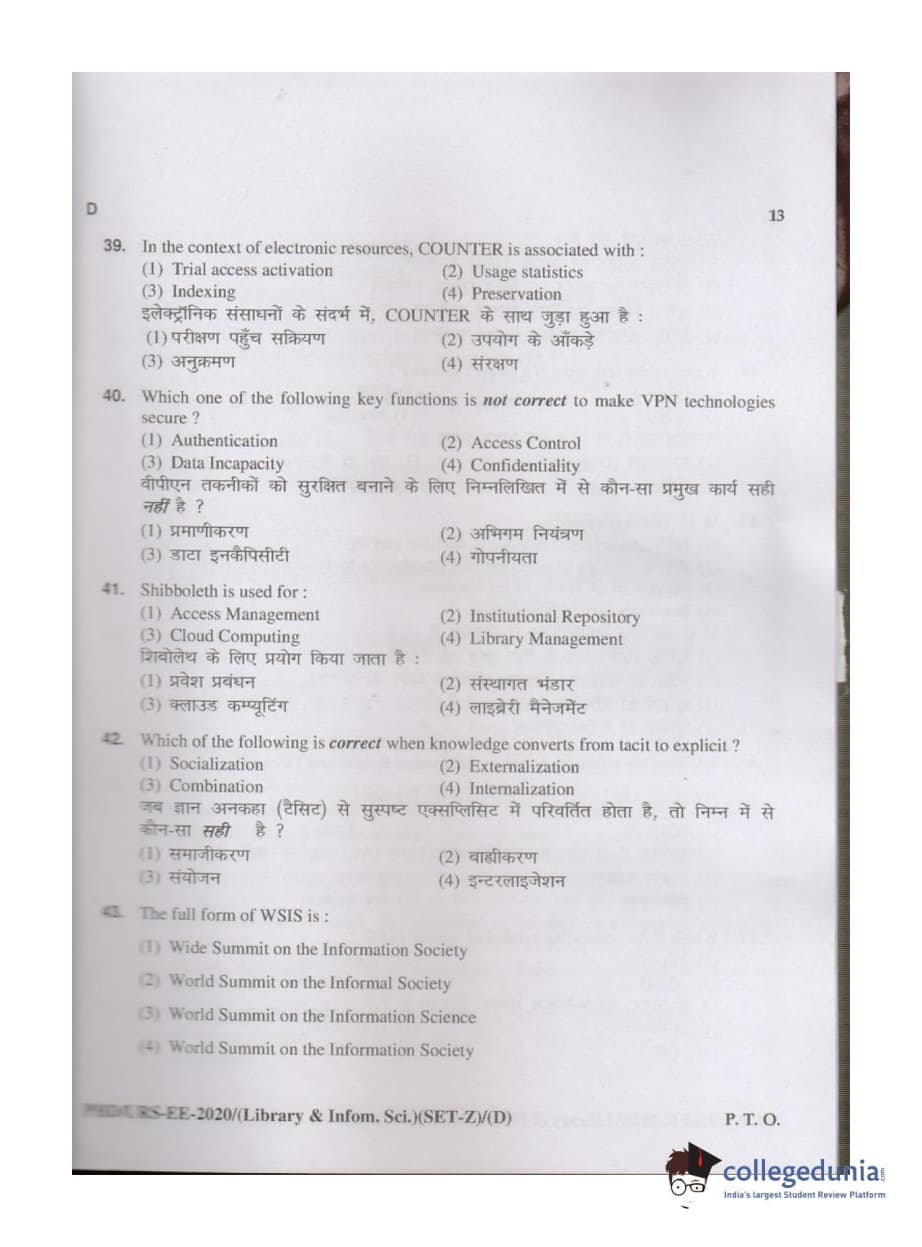 MDUCEE 2020 M.Phil/Ph.D/URS - Library and Information Science Set D Question Paper with Answer Key PDFs