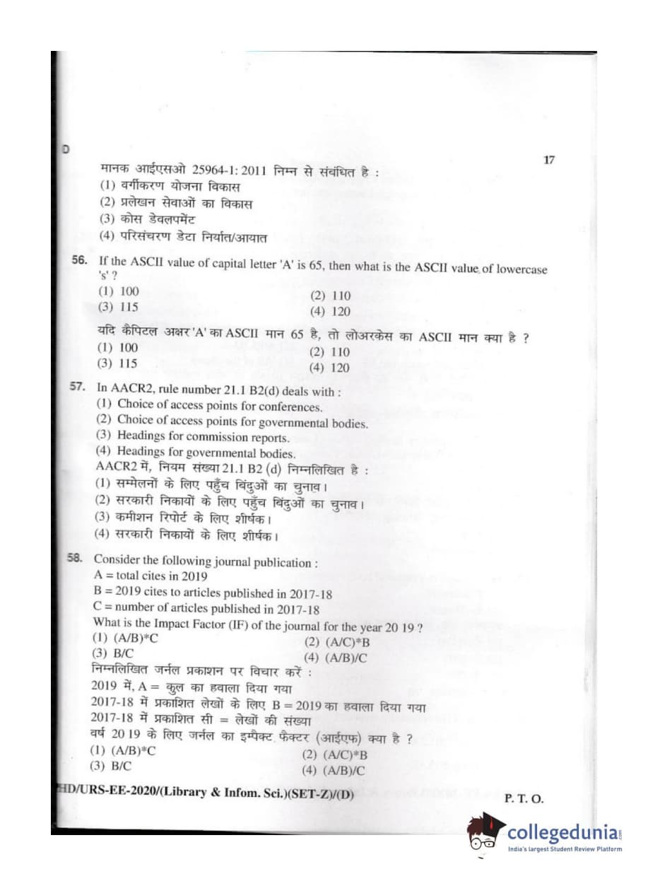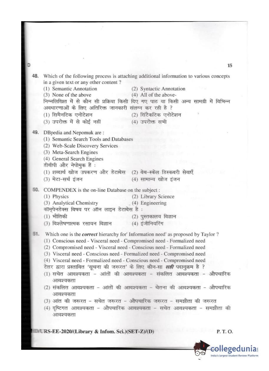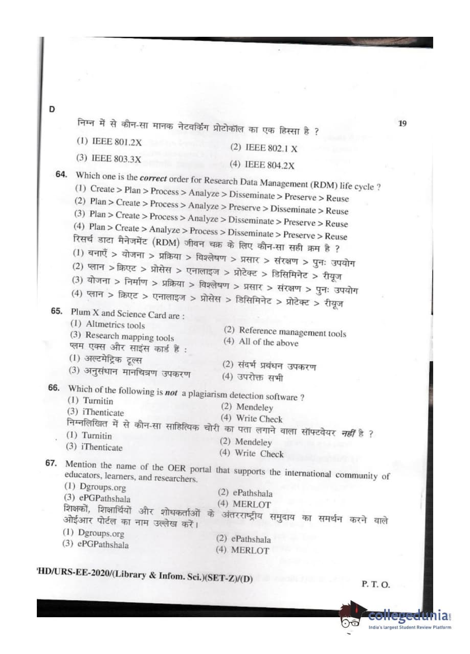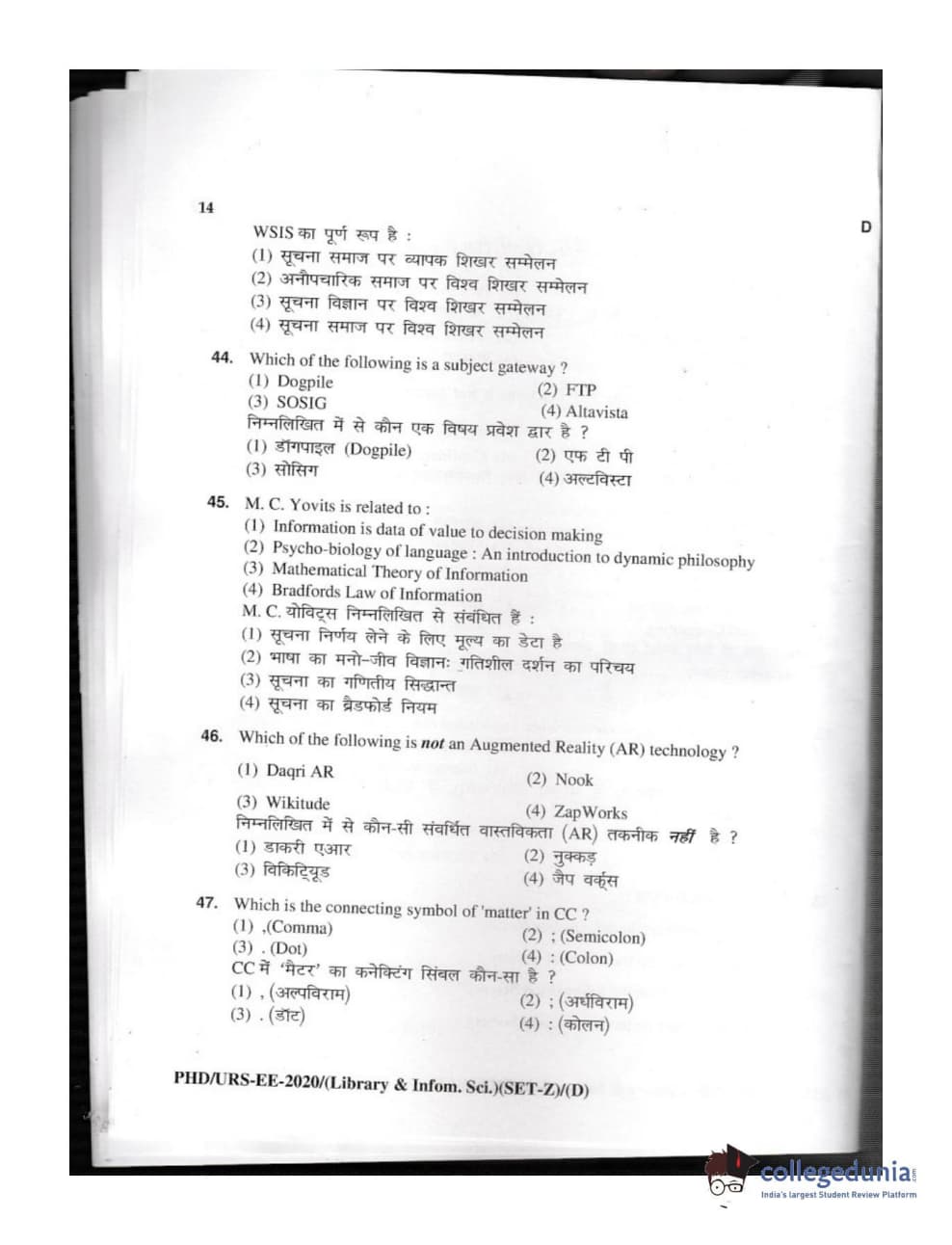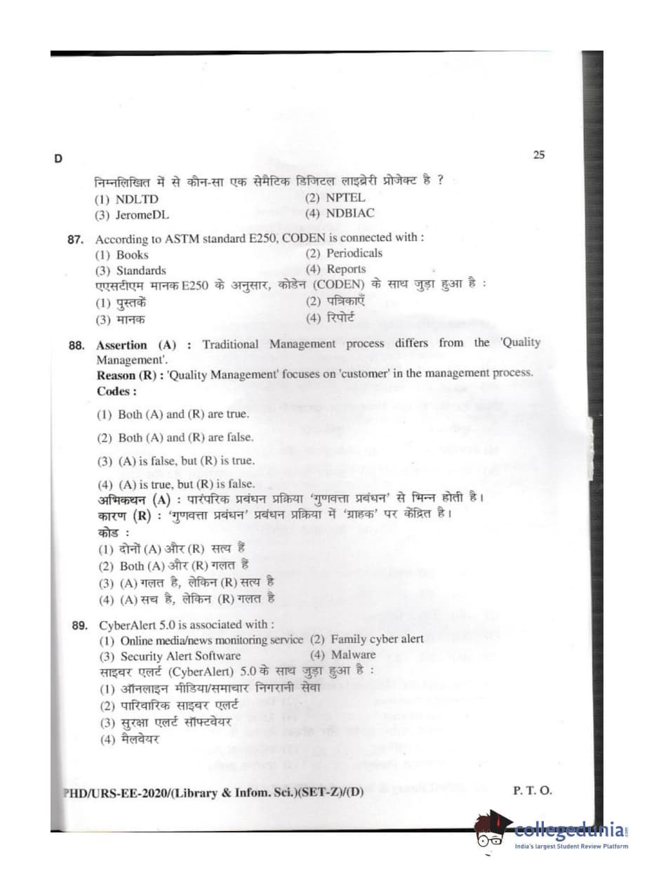 MDUCEE 2020 M.Phil/Ph.D/URS - Library and Information Science Set D Question Paper with Answer Key PDFs