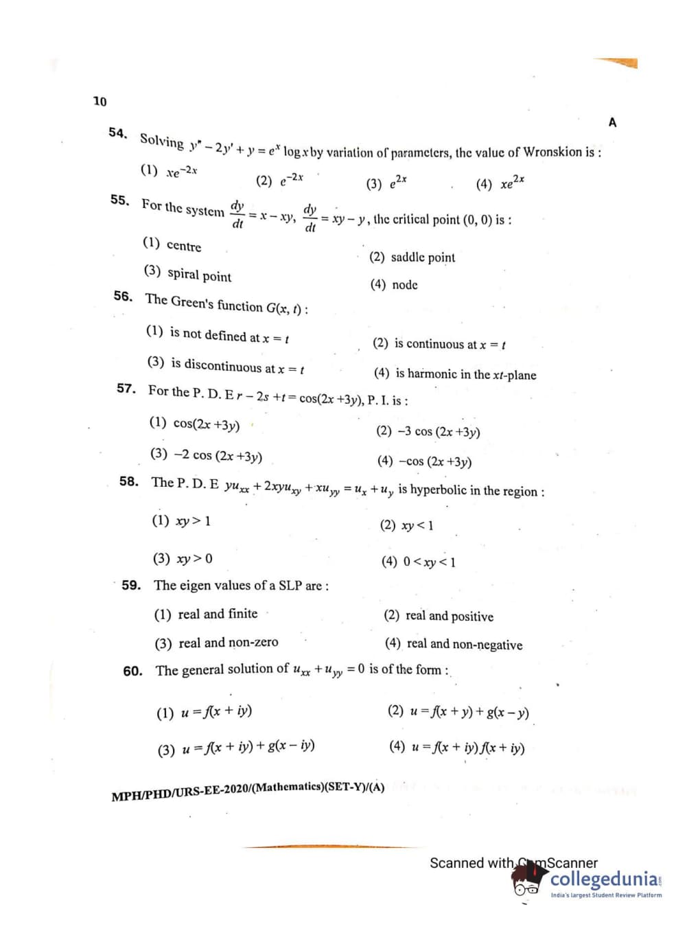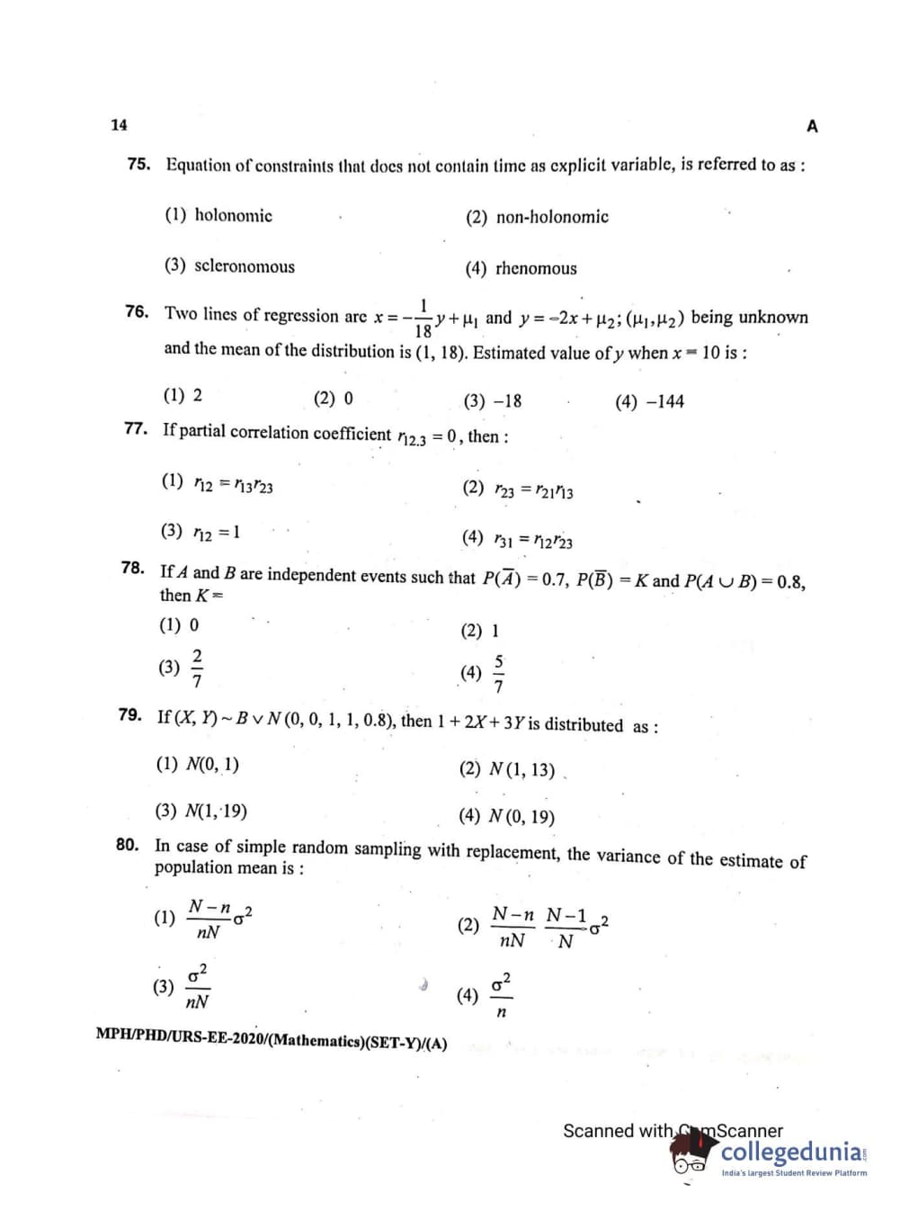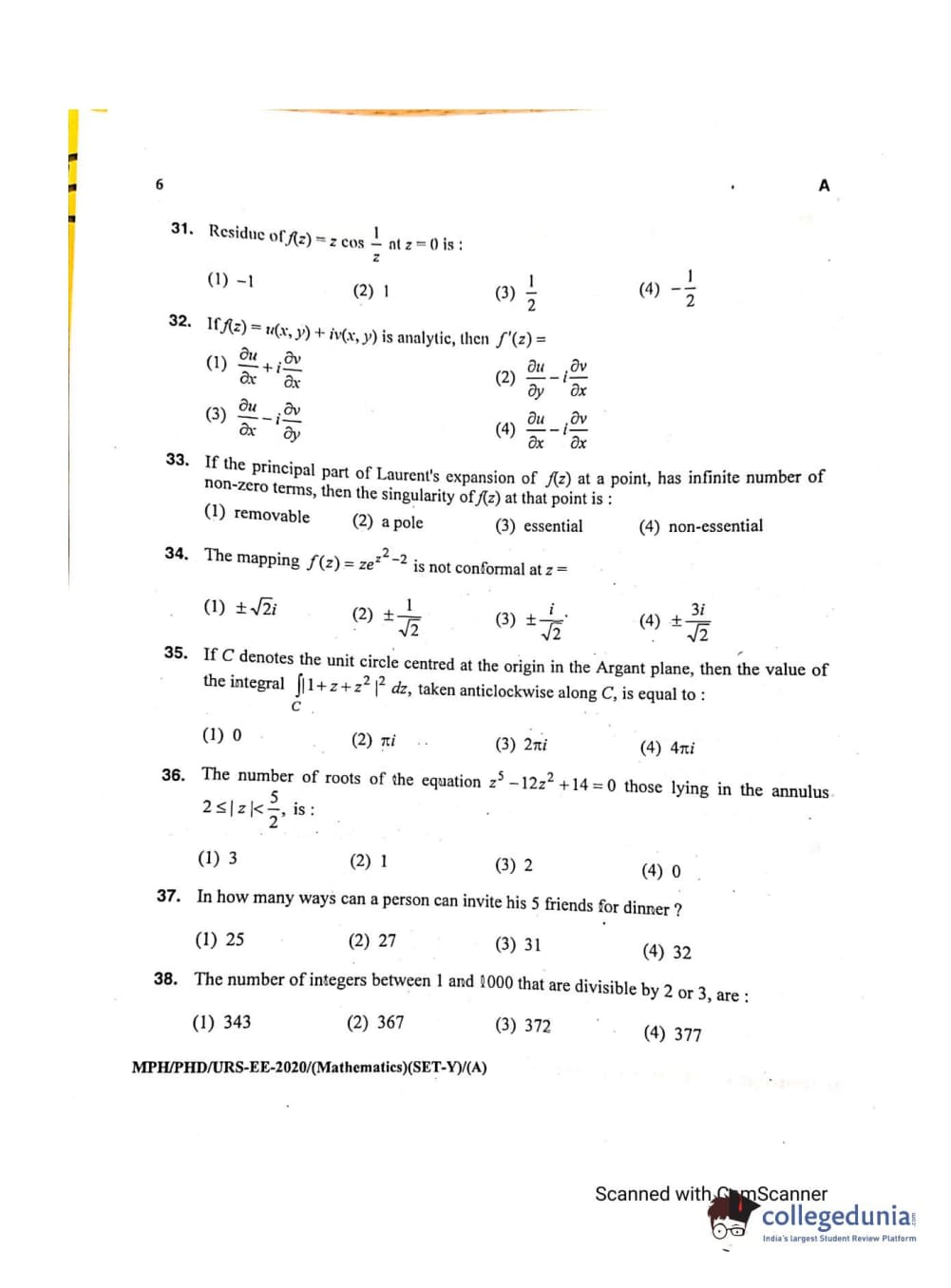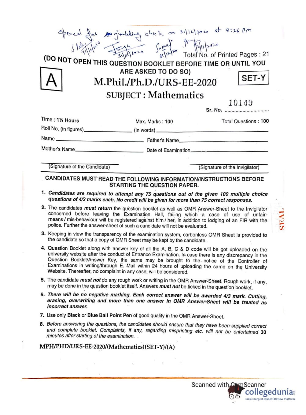 MDUCEE 2020 M.Phil/Ph.D/URS - Mathematics Set A Question Paper with Answer Key PDFs