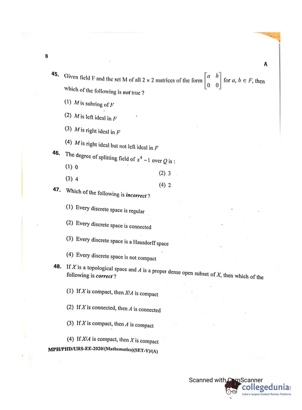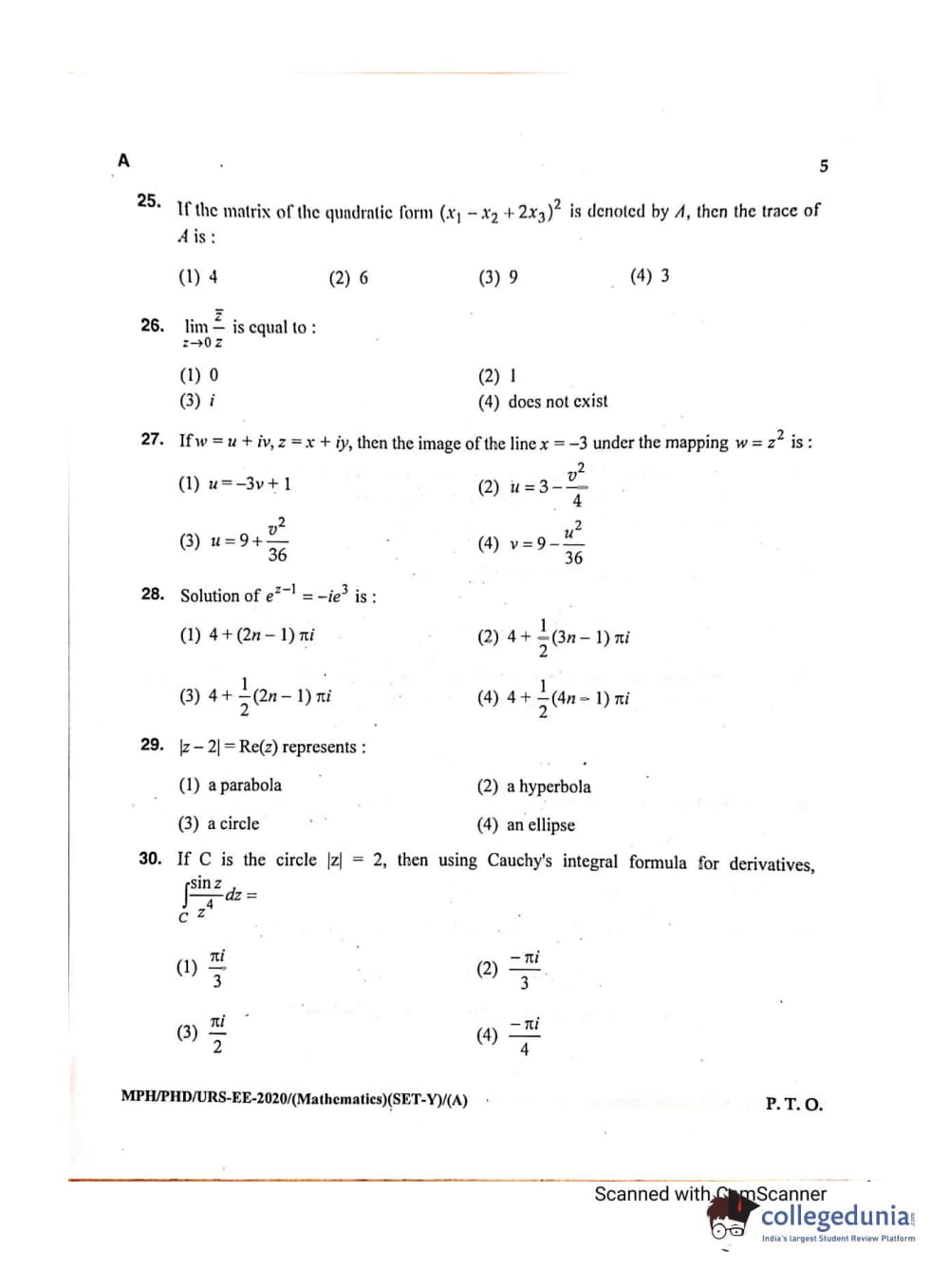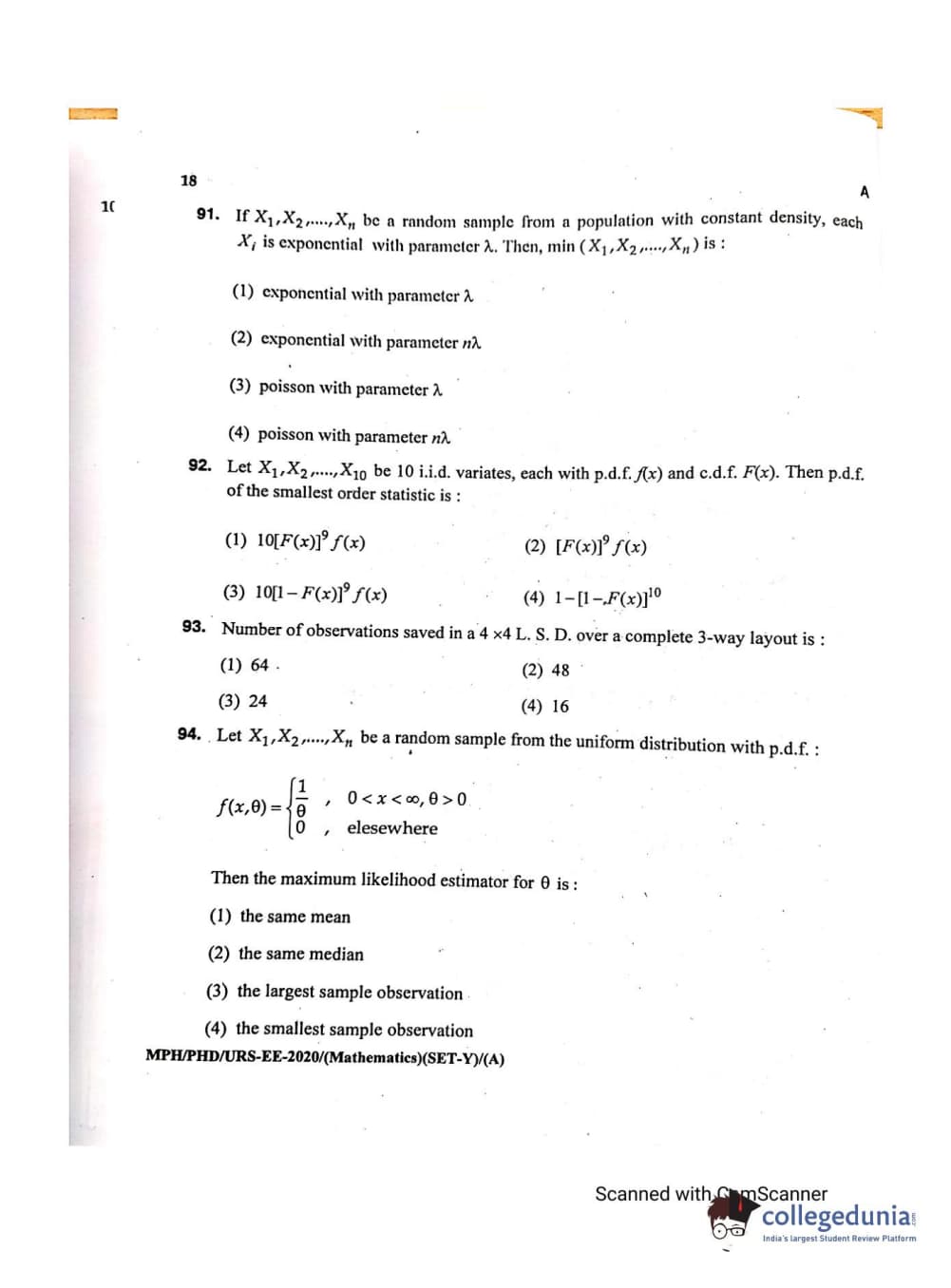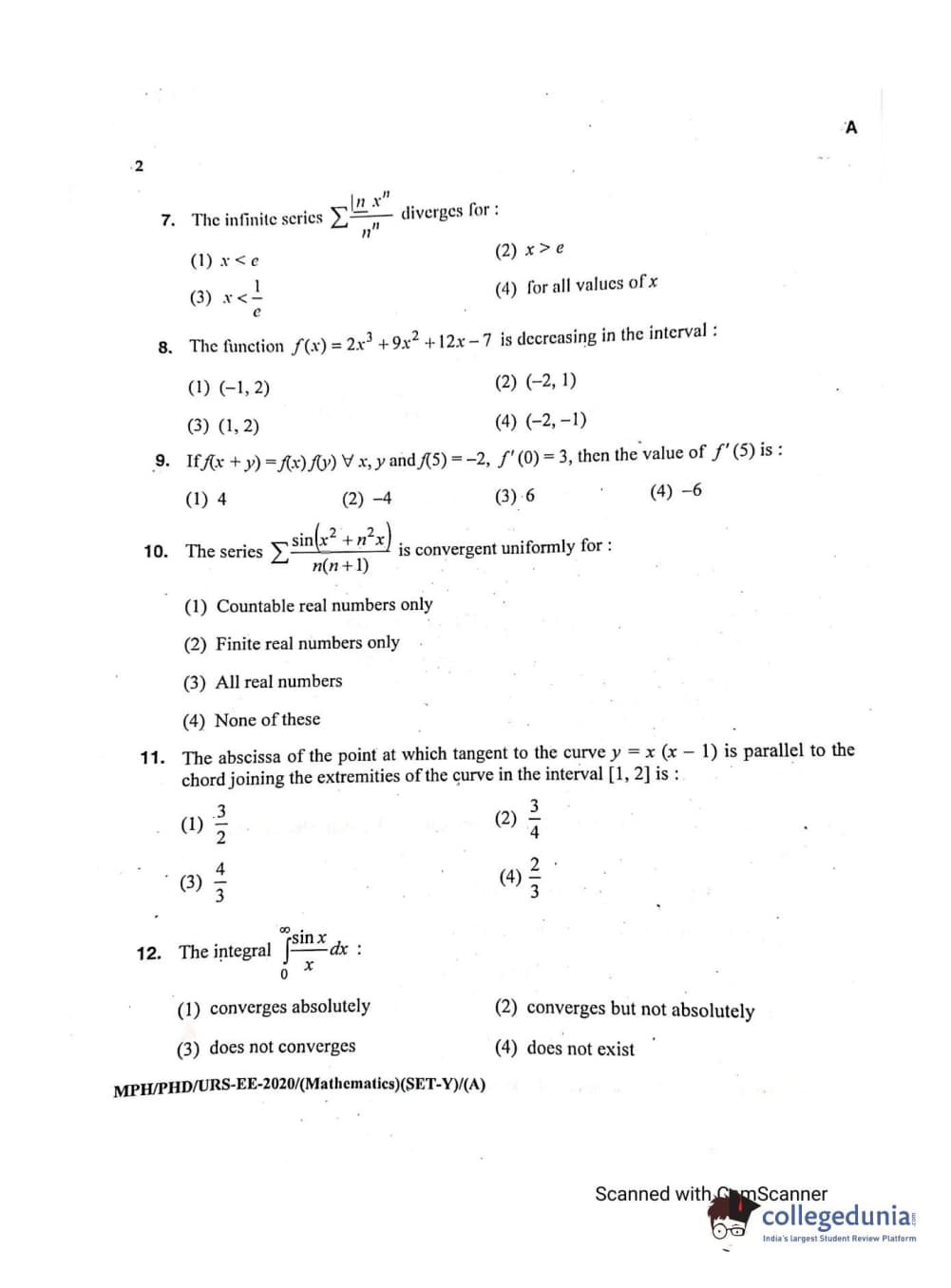 MDUCEE 2020 M.Phil/Ph.D/URS - Mathematics Set A Question Paper with Answer Key PDFs