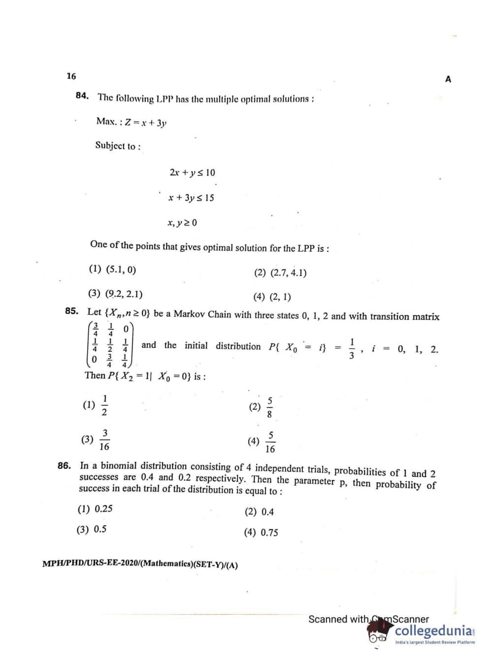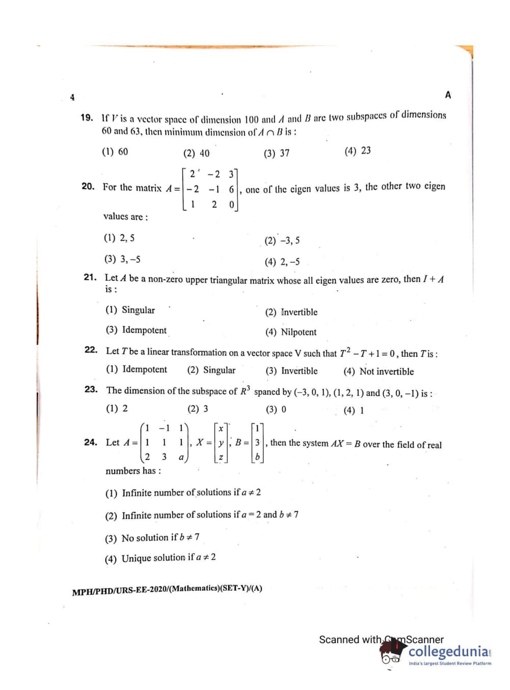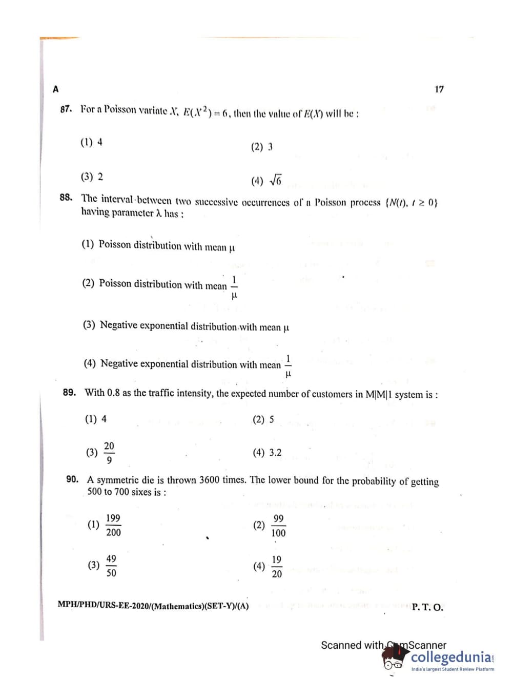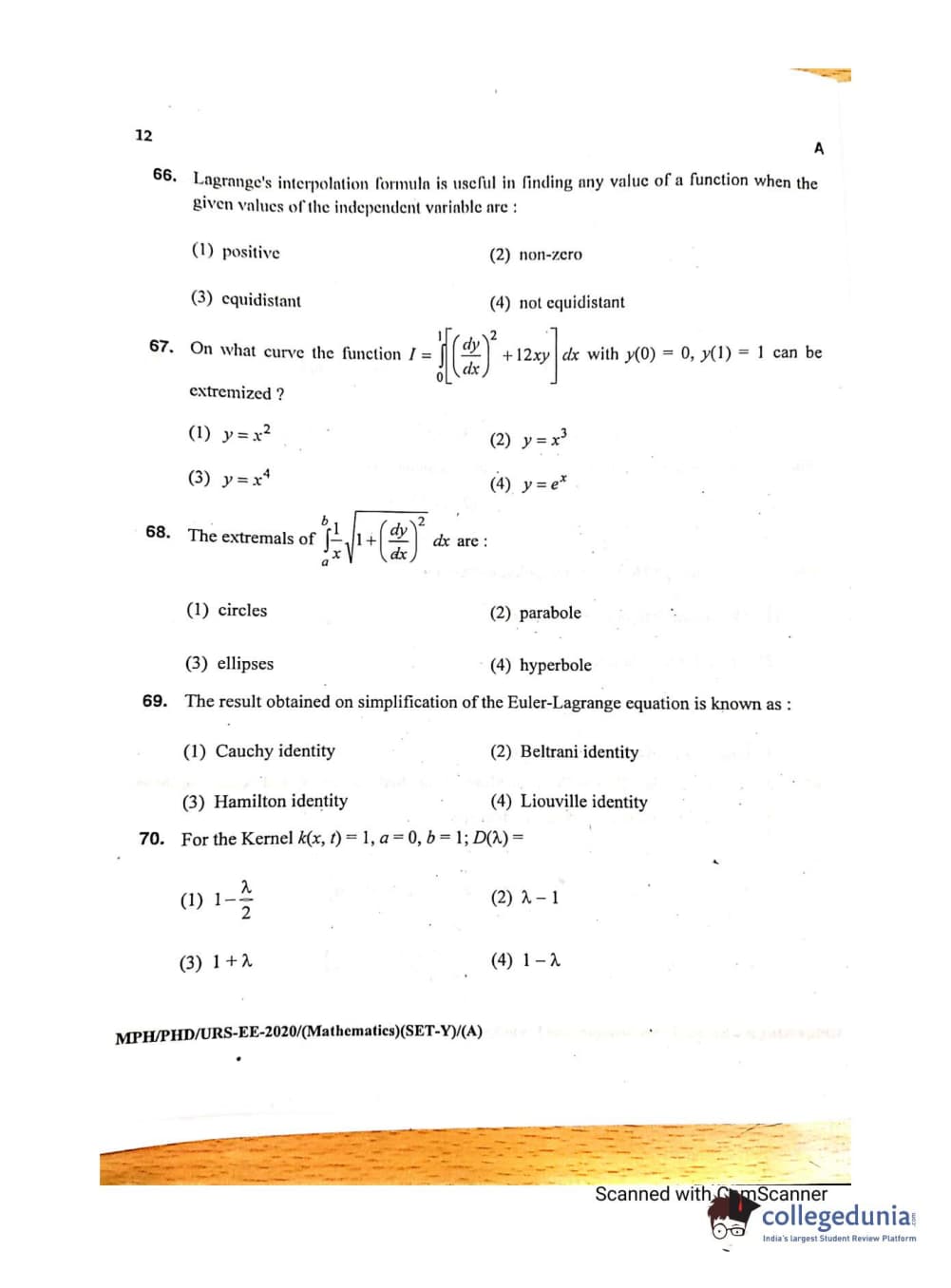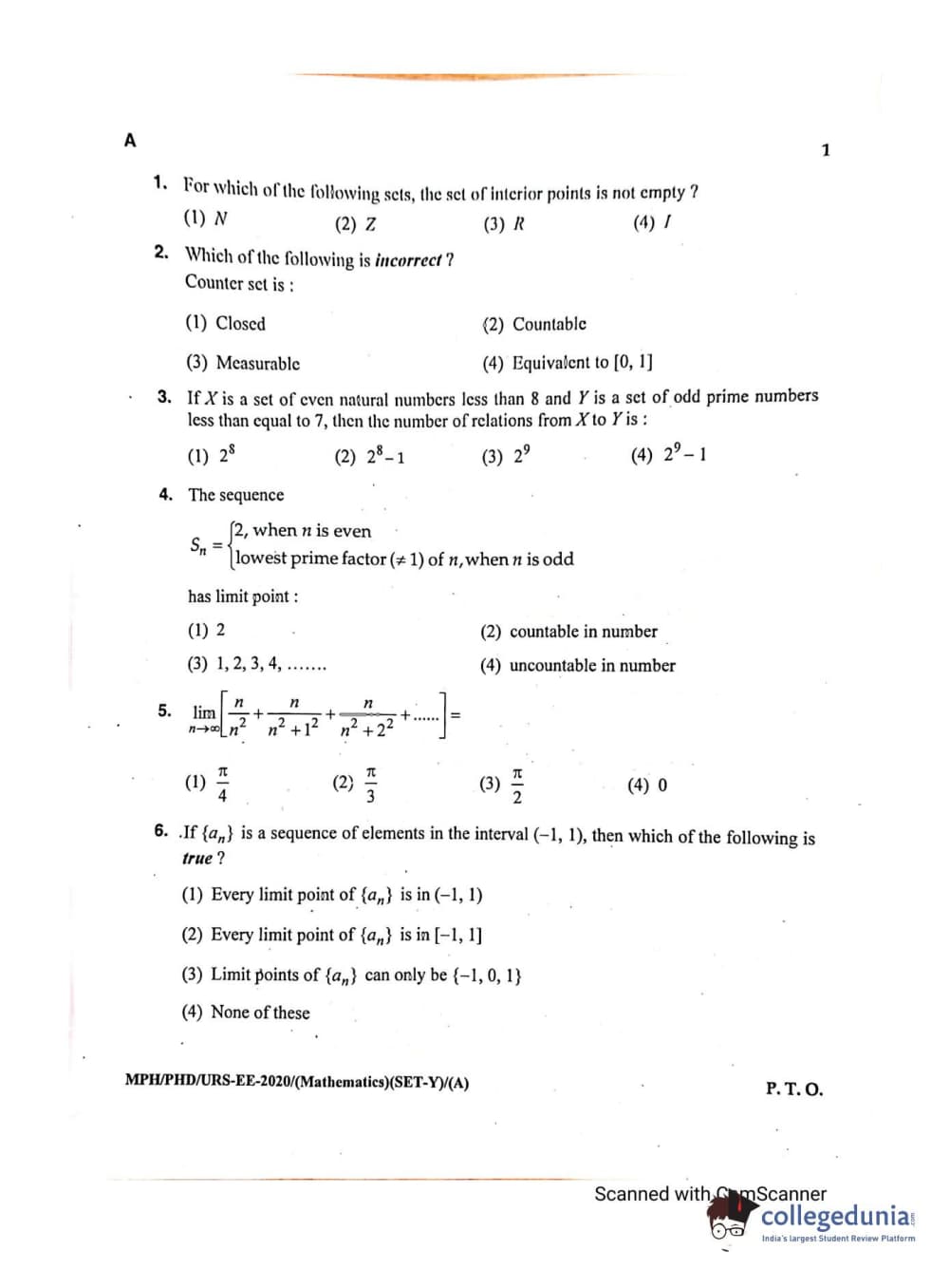 MDUCEE 2020 M.Phil/Ph.D/URS - Mathematics Set A Question Paper with Answer Key PDFs