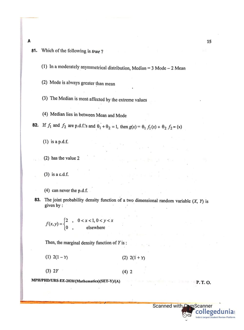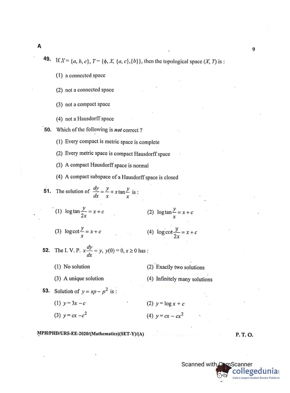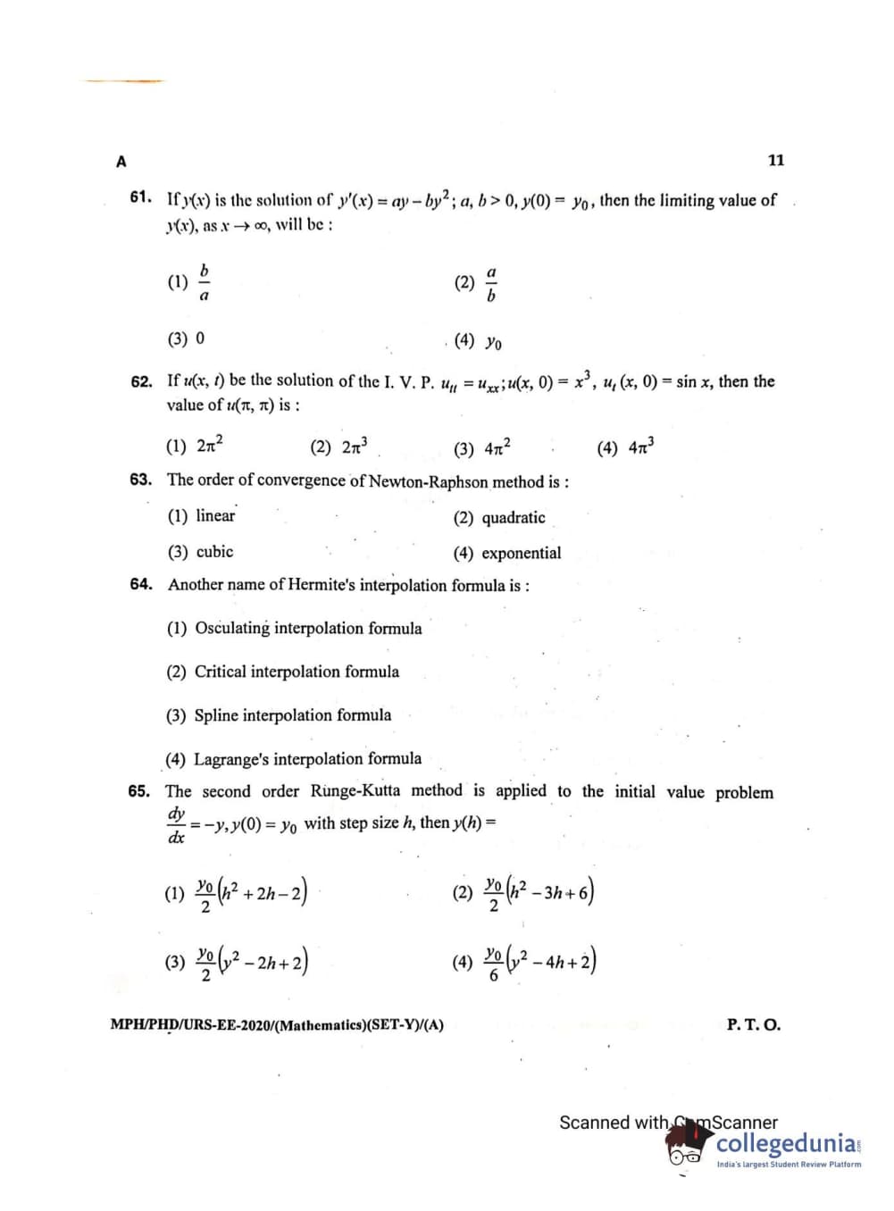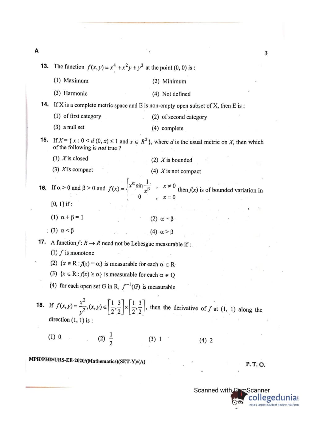 MDUCEE 2020 M.Phil/Ph.D/URS - Mathematics Set A Question Paper with Answer Key PDFs