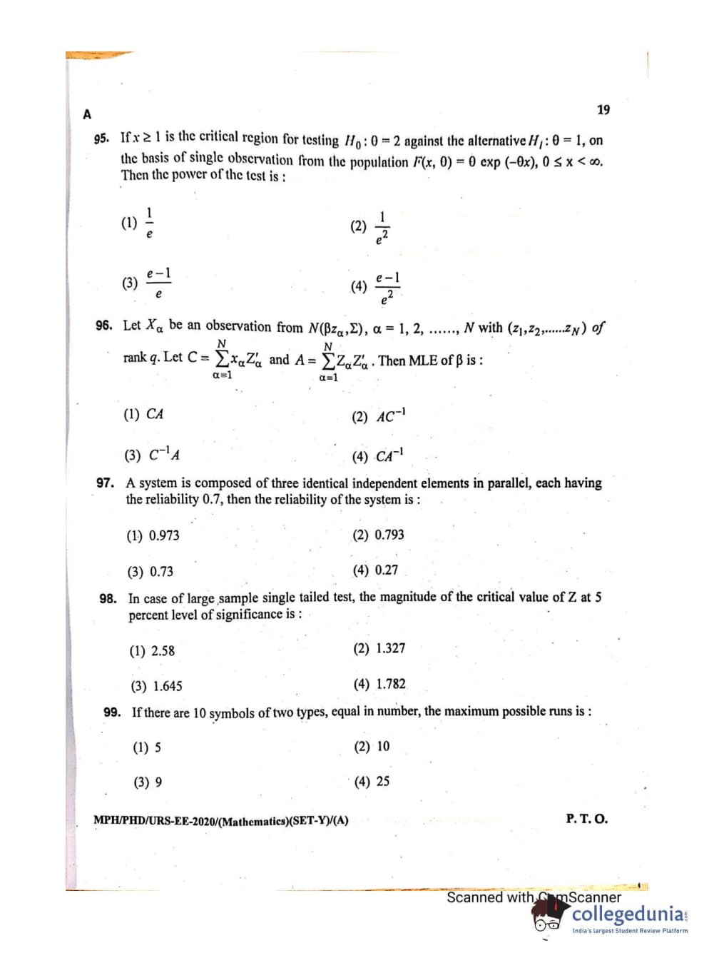 MDUCEE 2020 M.Phil/Ph.D/URS - Mathematics Set A Question paper with answer key pdf is available for download. The exam was successfully organized by Maharishi Dayanand University. The question paper comprised a total of 100 questions.