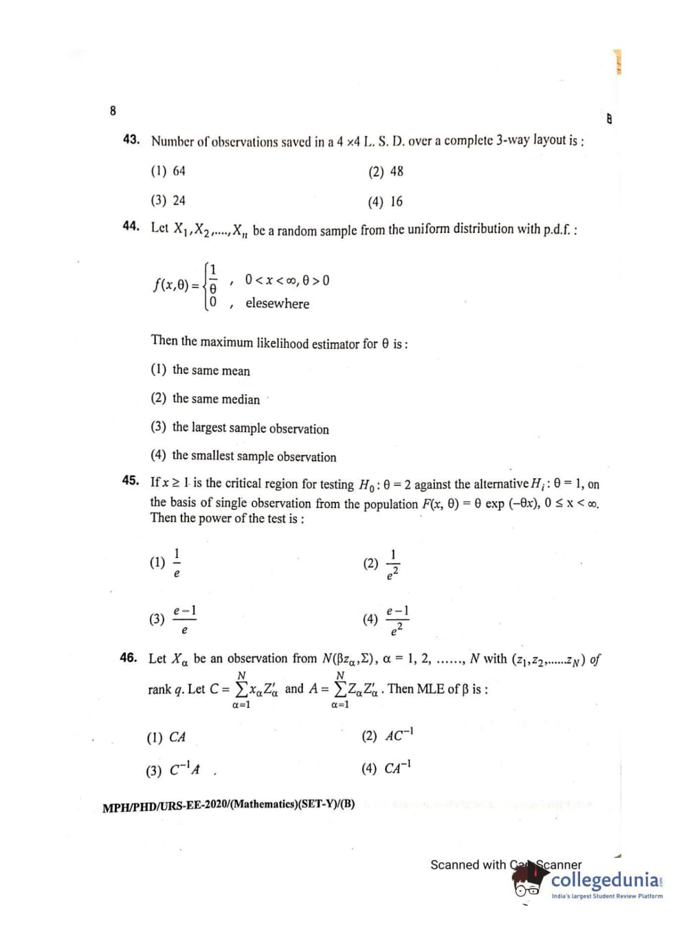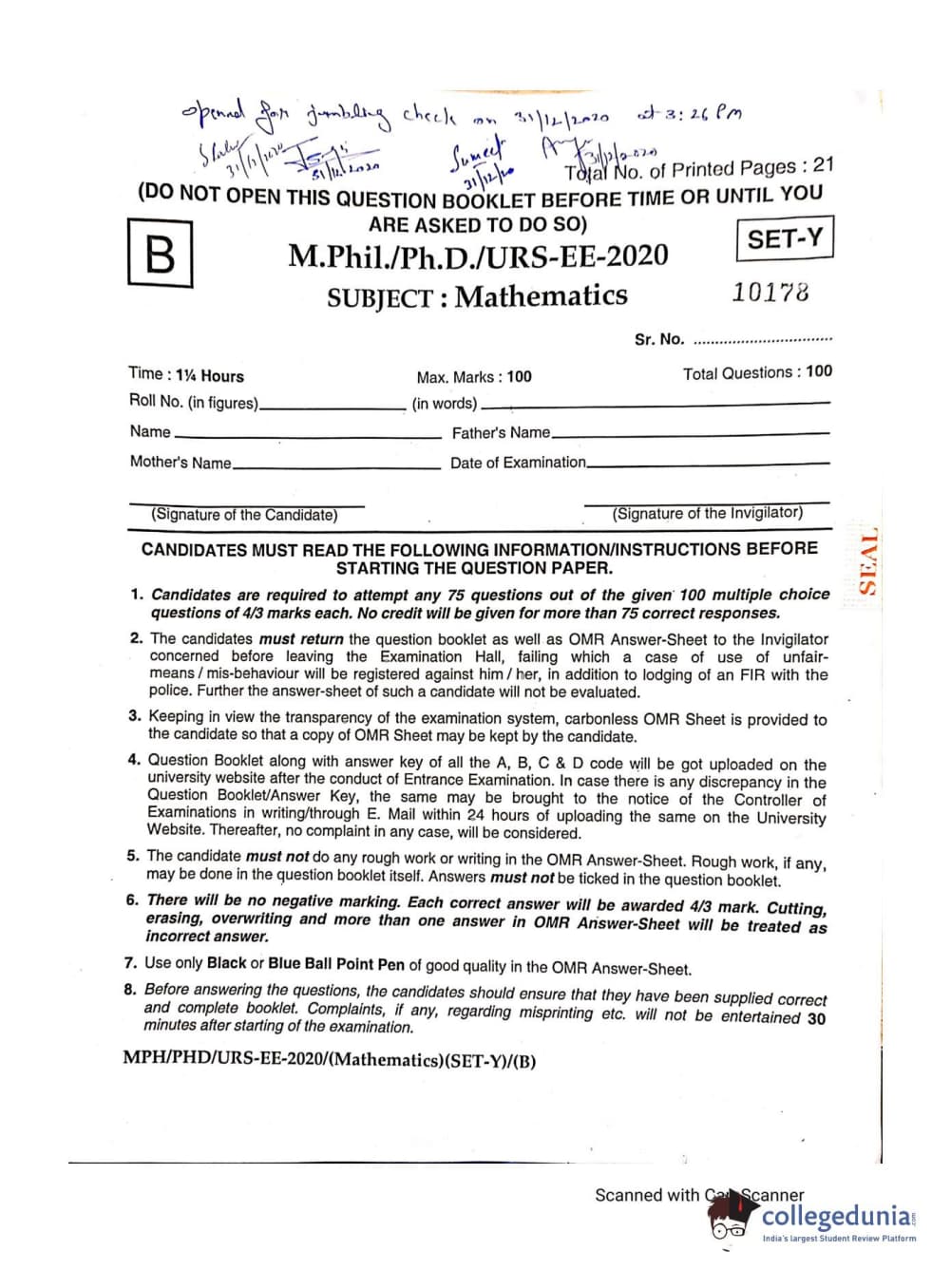 | MDUCEE 2020 M.Phil/Ph.D/URS - Mathematics Set B Question Paper PDF | MDUCEE 2020 M.Phil/Ph.D/URS - Mathematics Set B Answer Key PDF |
