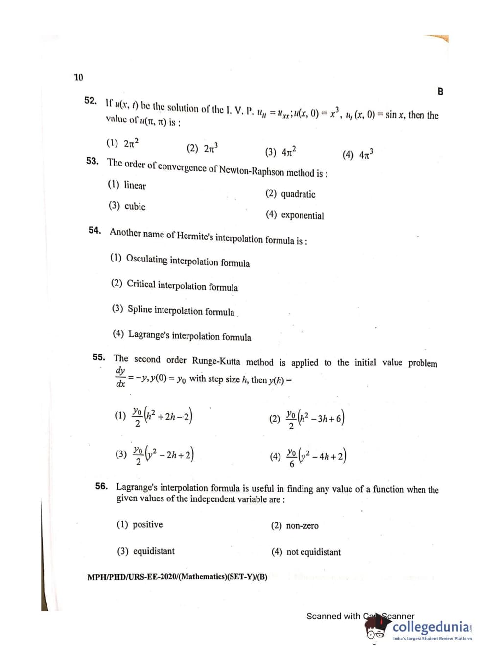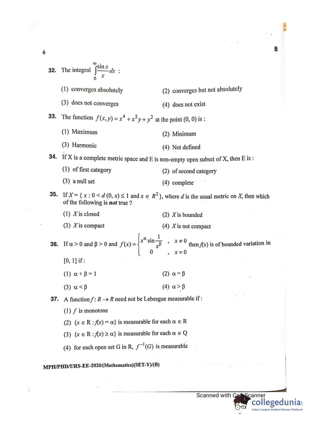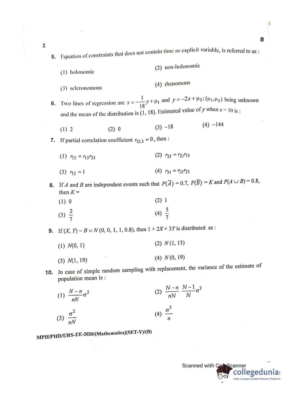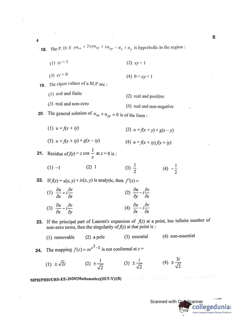 MDUCEE 2020 M.Phil/Ph.D/URS - Mathematics Set B Question Paper with Answer Key PDFs