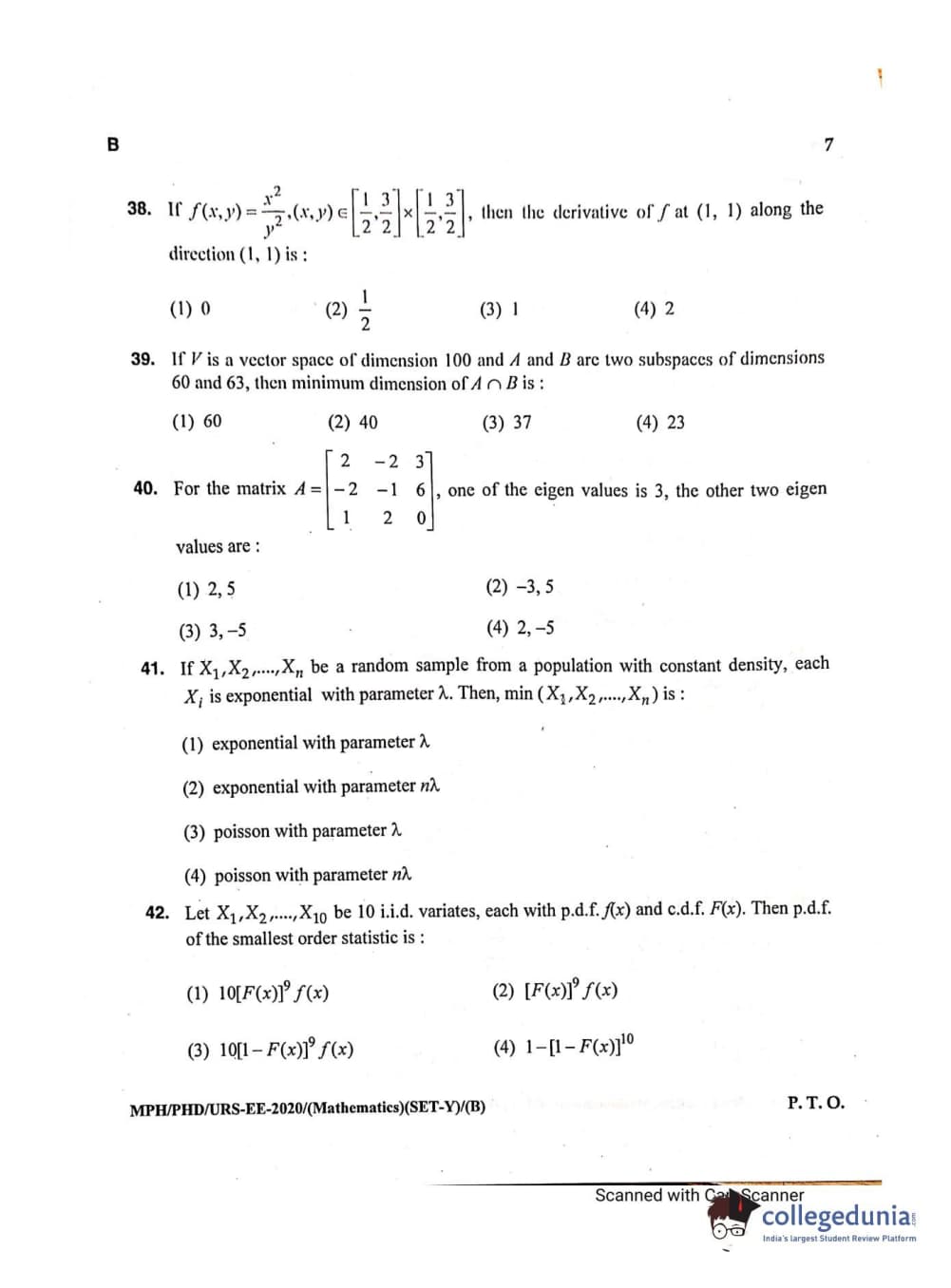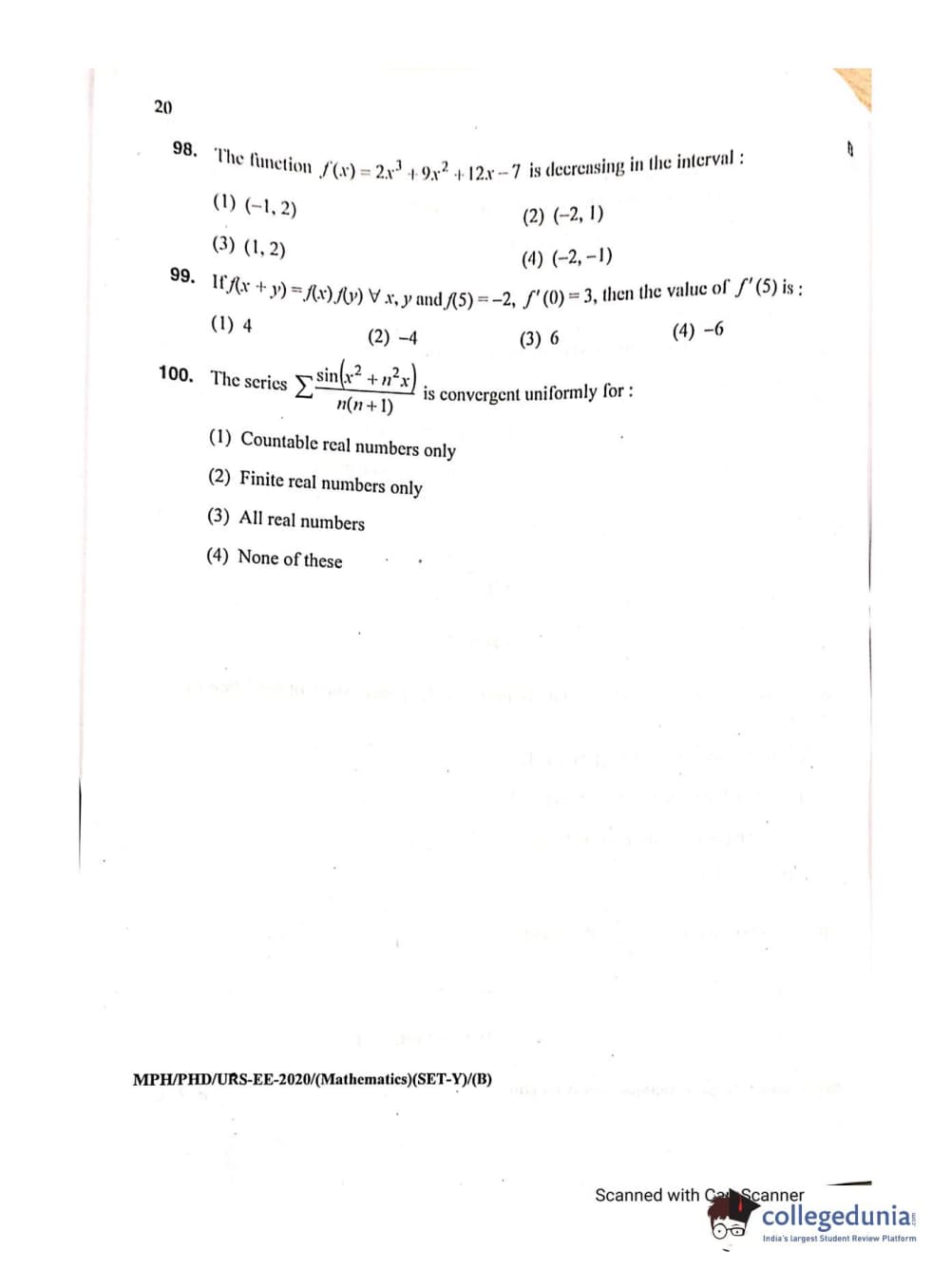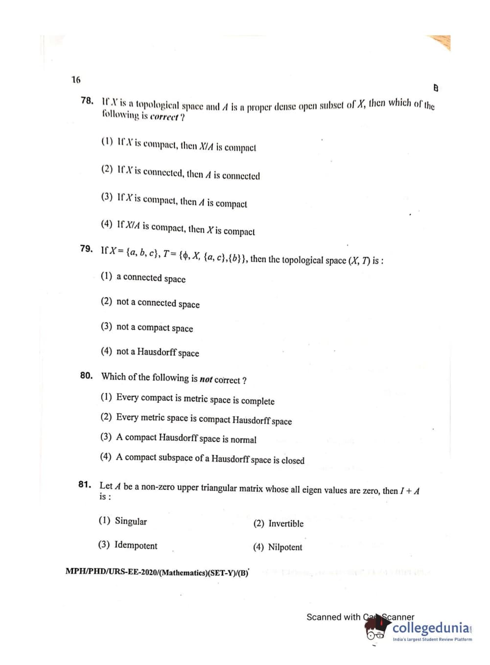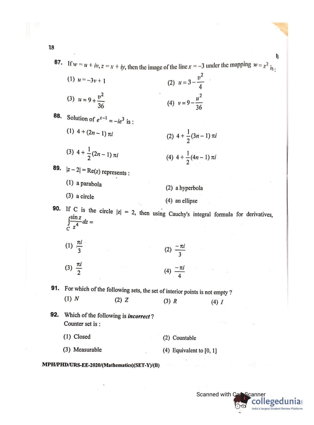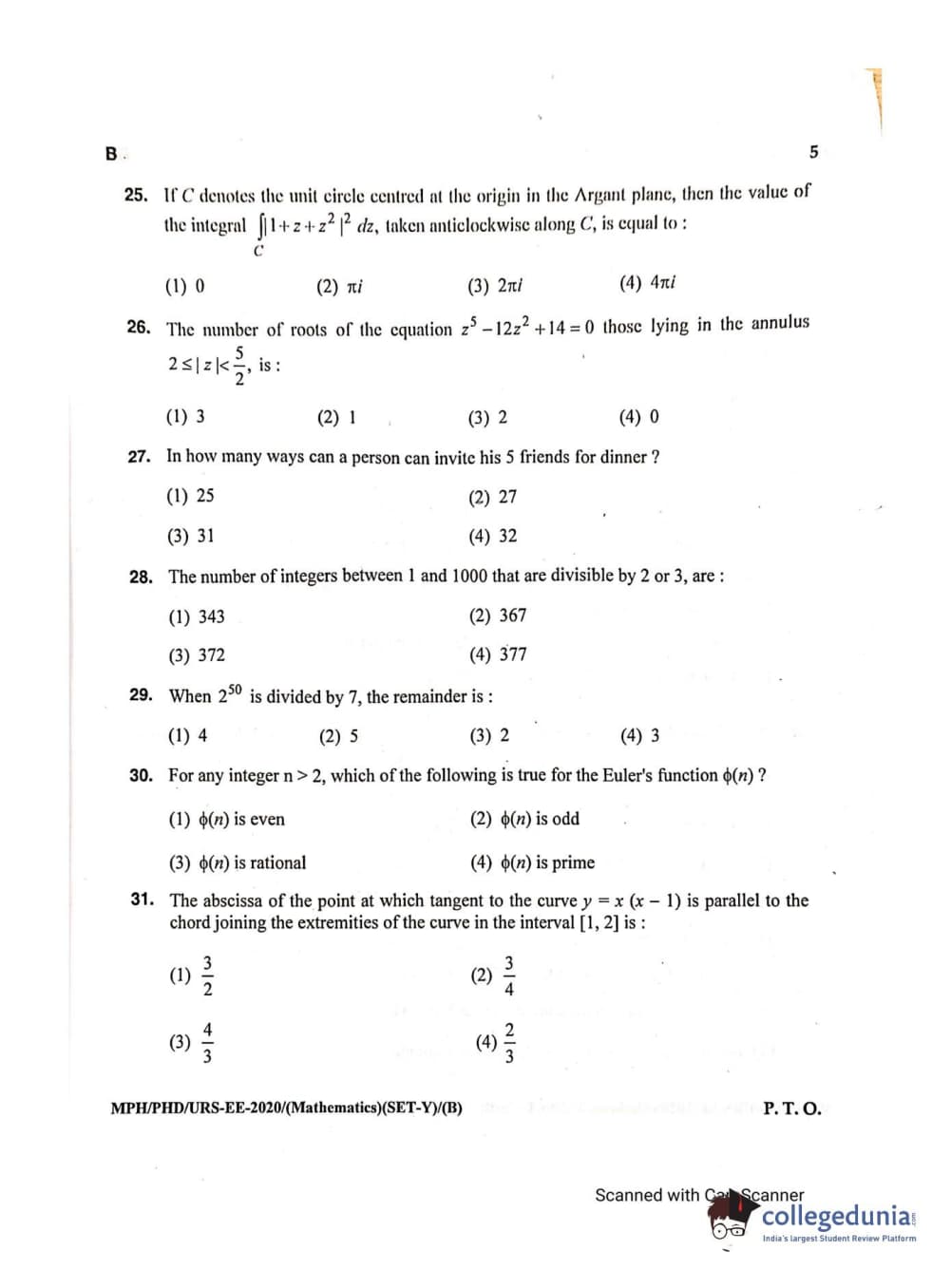 MDUCEE 2020 M.Phil/Ph.D/URS - Mathematics Set B Question Paper with Answer Key PDFs