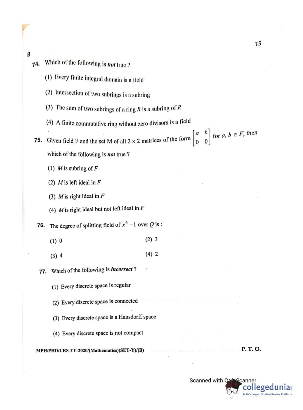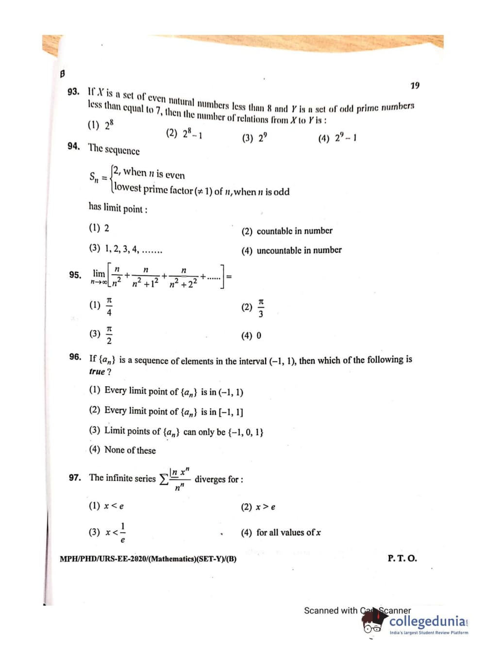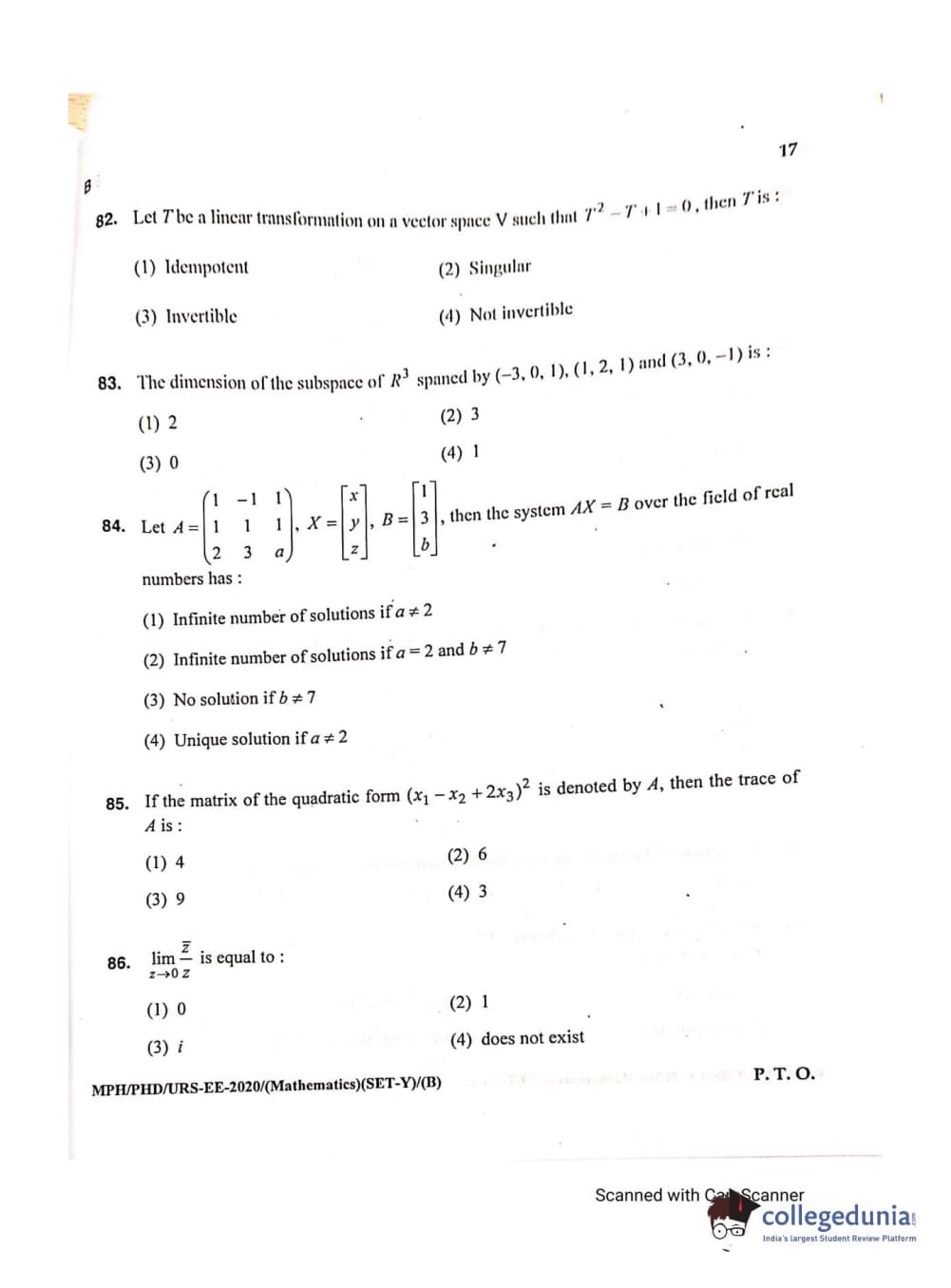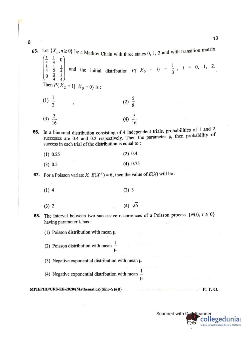 MDUCEE 2020 M.Phil/Ph.D/URS - Mathematics Set B Question Paper with Answer Key PDFs