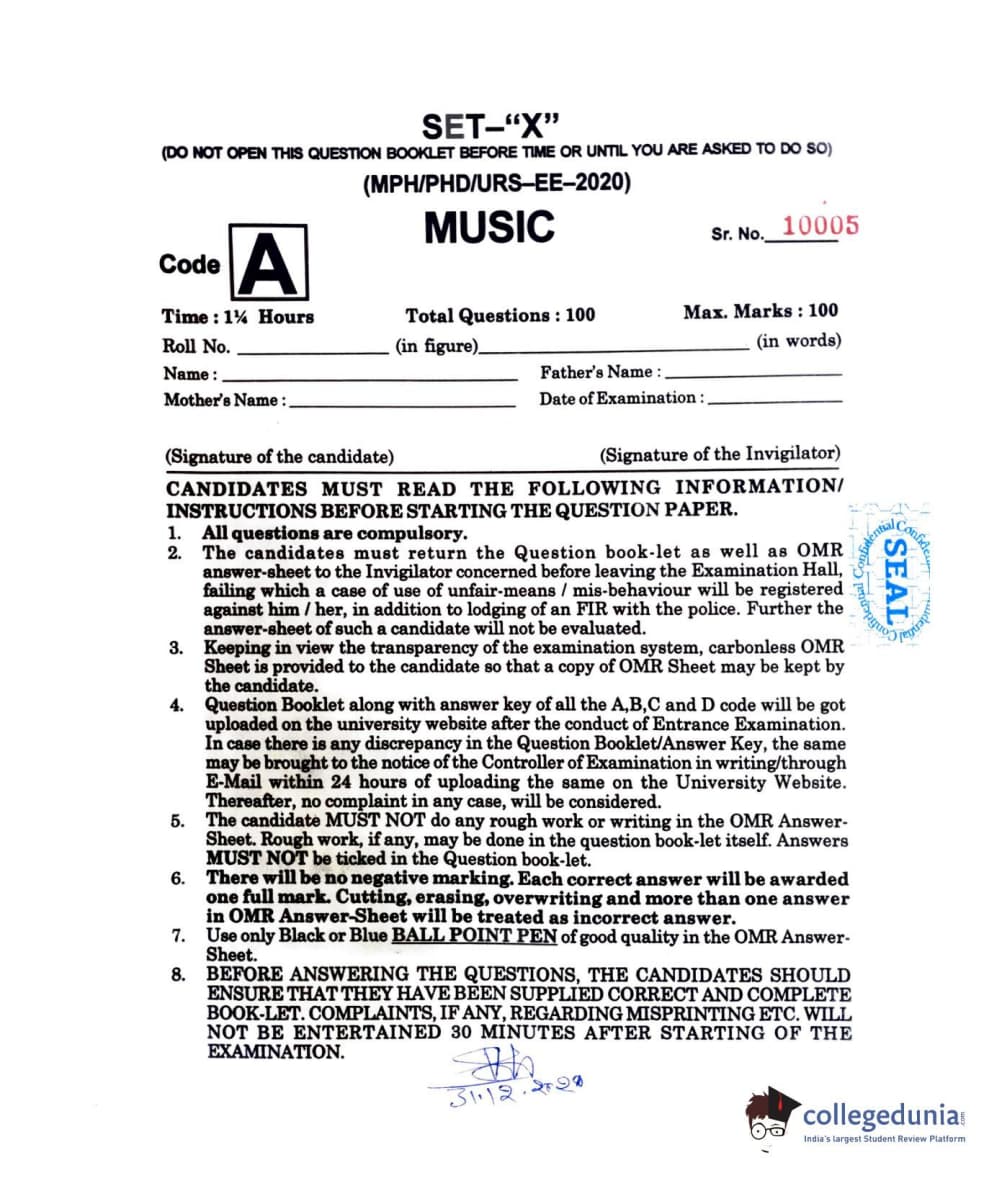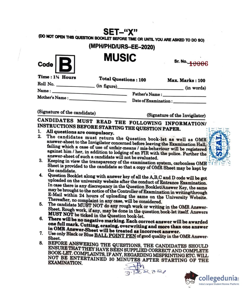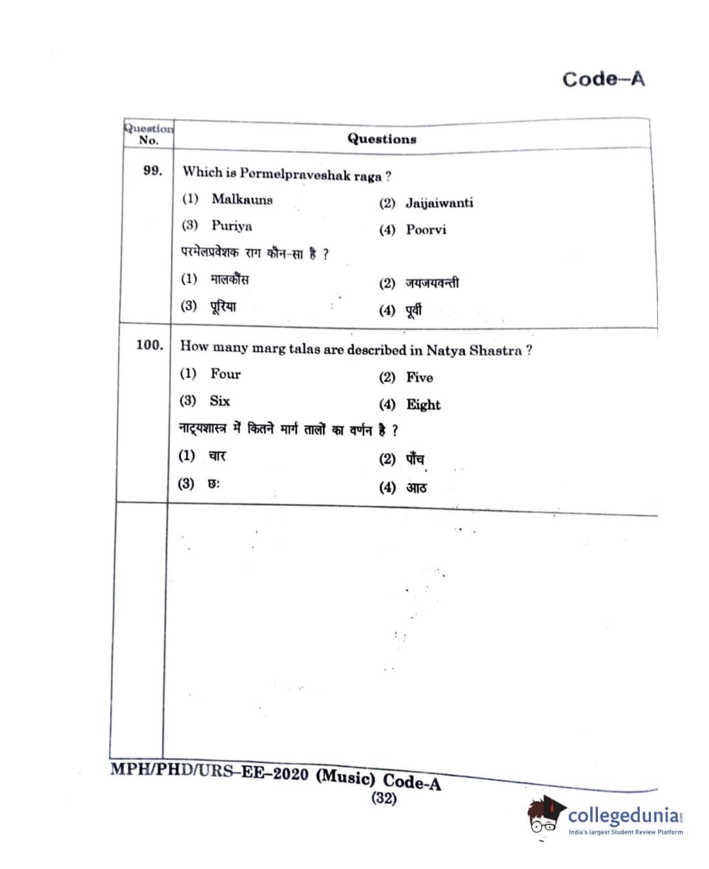 MDUCEE 2020 M.Phil/Ph.D/URS - Music Question paper with answer key pdf is available for download. The exam was successfully organized by Maharishi Dayanand University. The question paper comprised a total of 100 questions.