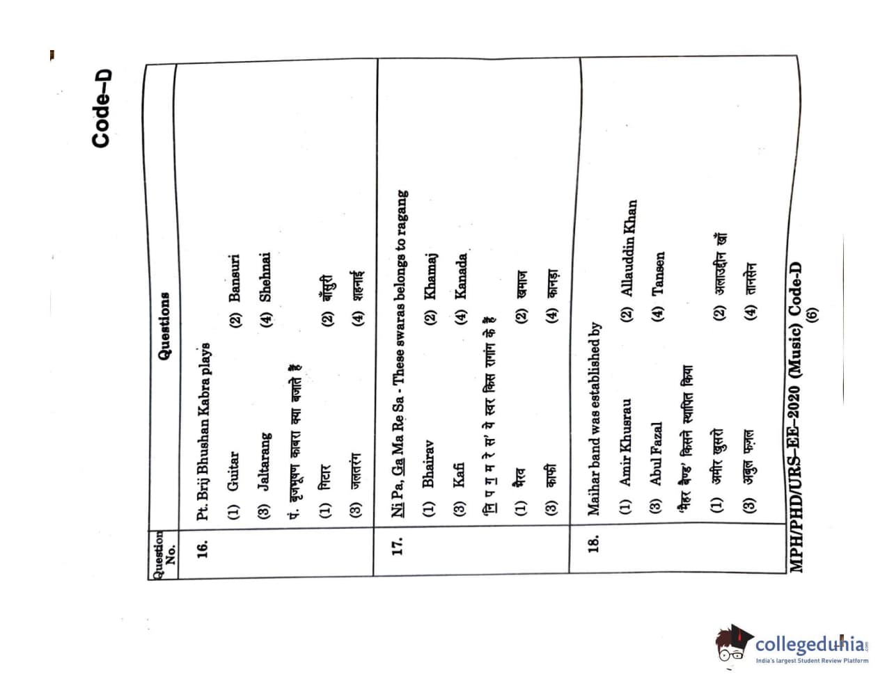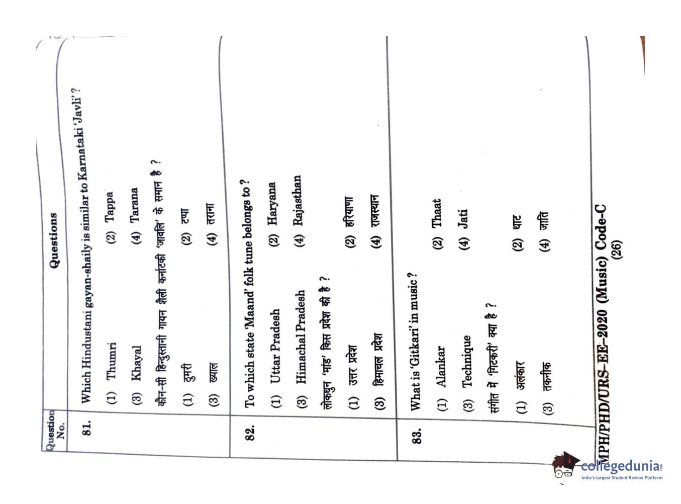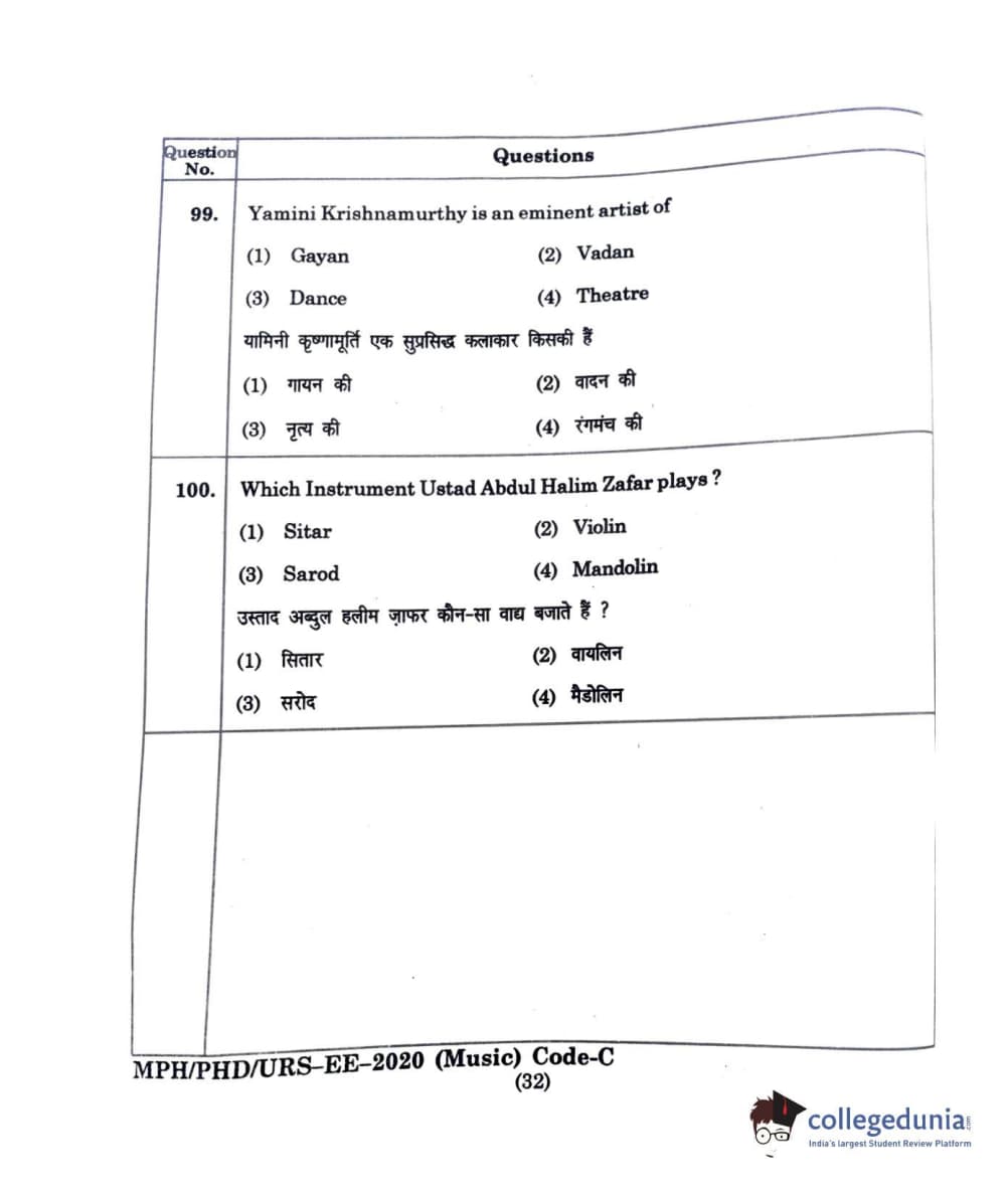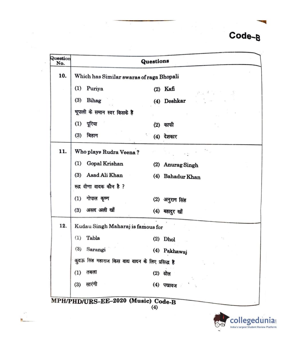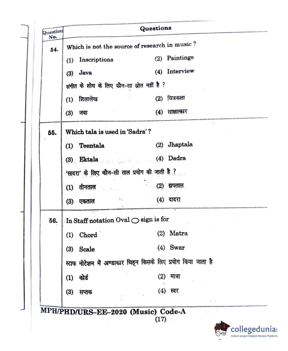 | MDUCEE 2020 M.Phil/Ph.D/URS - Music Question Paper PDF | MDUCEE 2020 M.Phil/Ph.D/URS - Music Answer Key PDF |