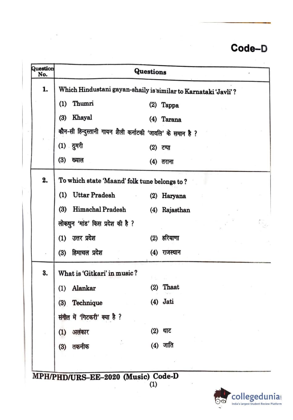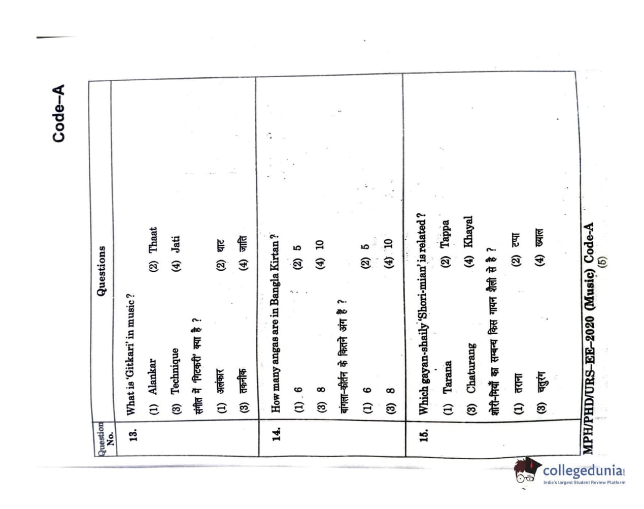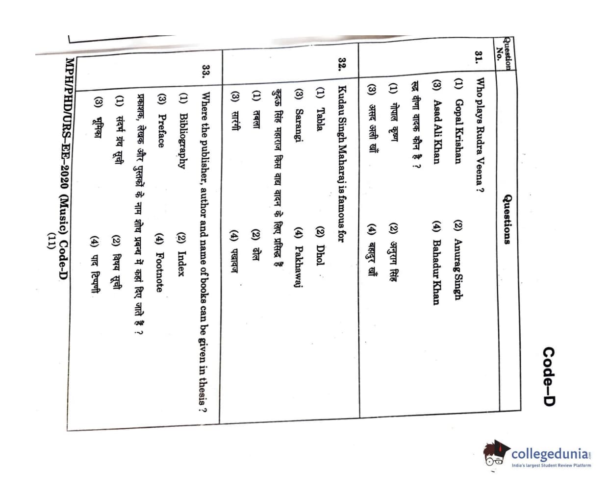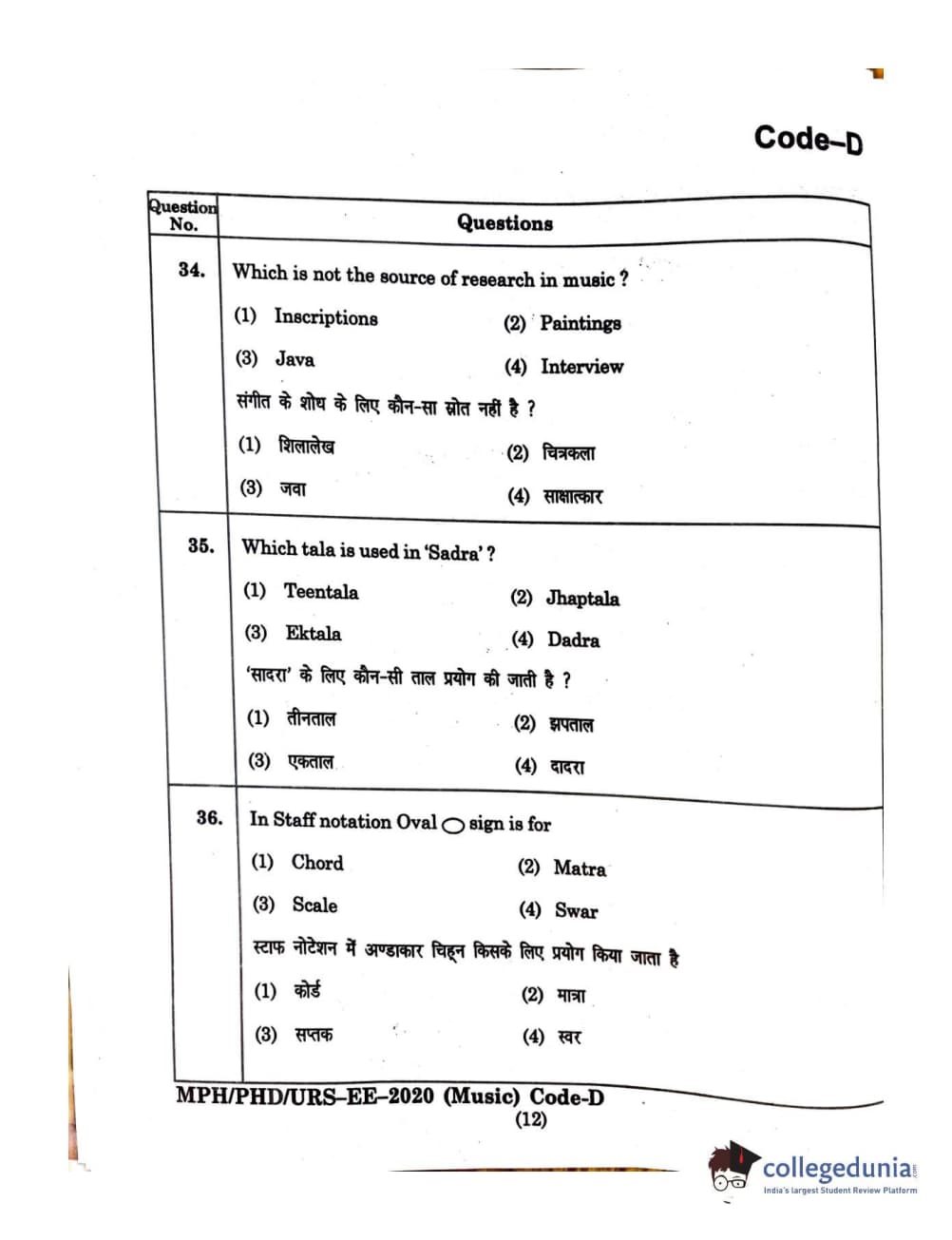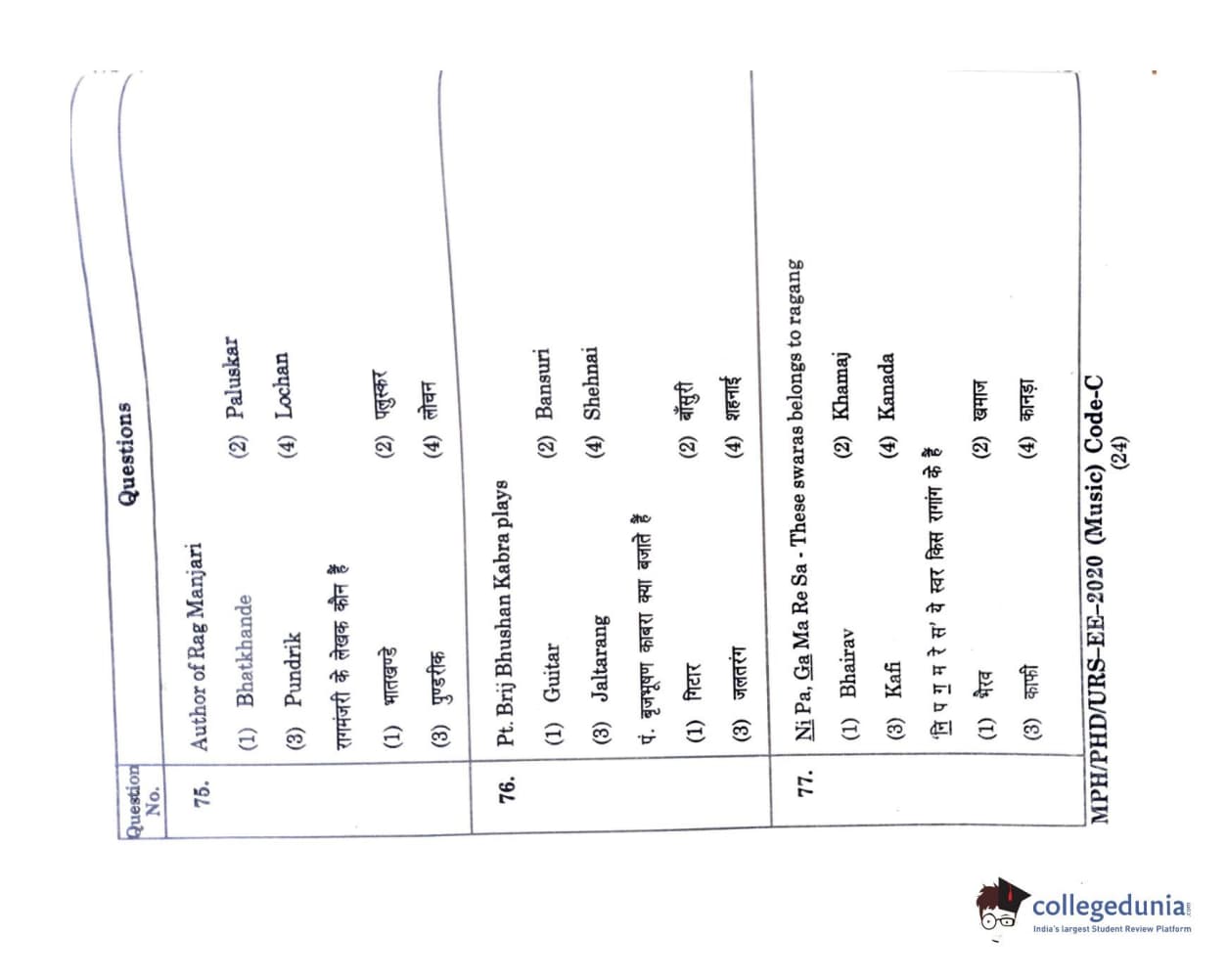 | MDUCEE 2020 M.Phil/Ph.D/URS - Music Question Paper PDF | MDUCEE 2020 M.Phil/Ph.D/URS - Music Answer Key PDF |