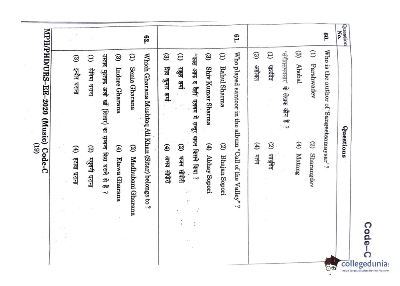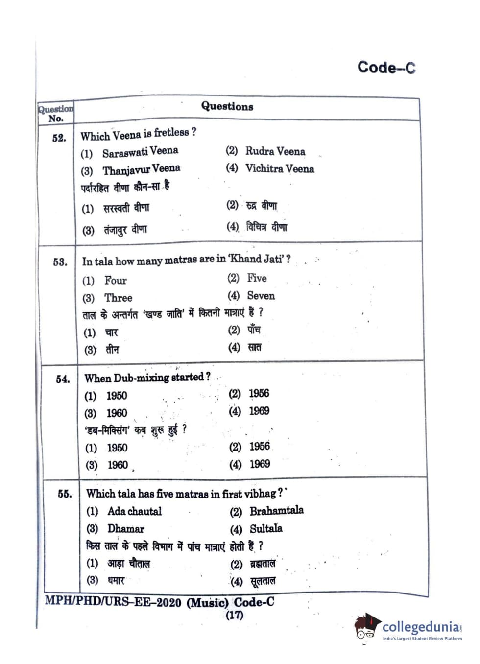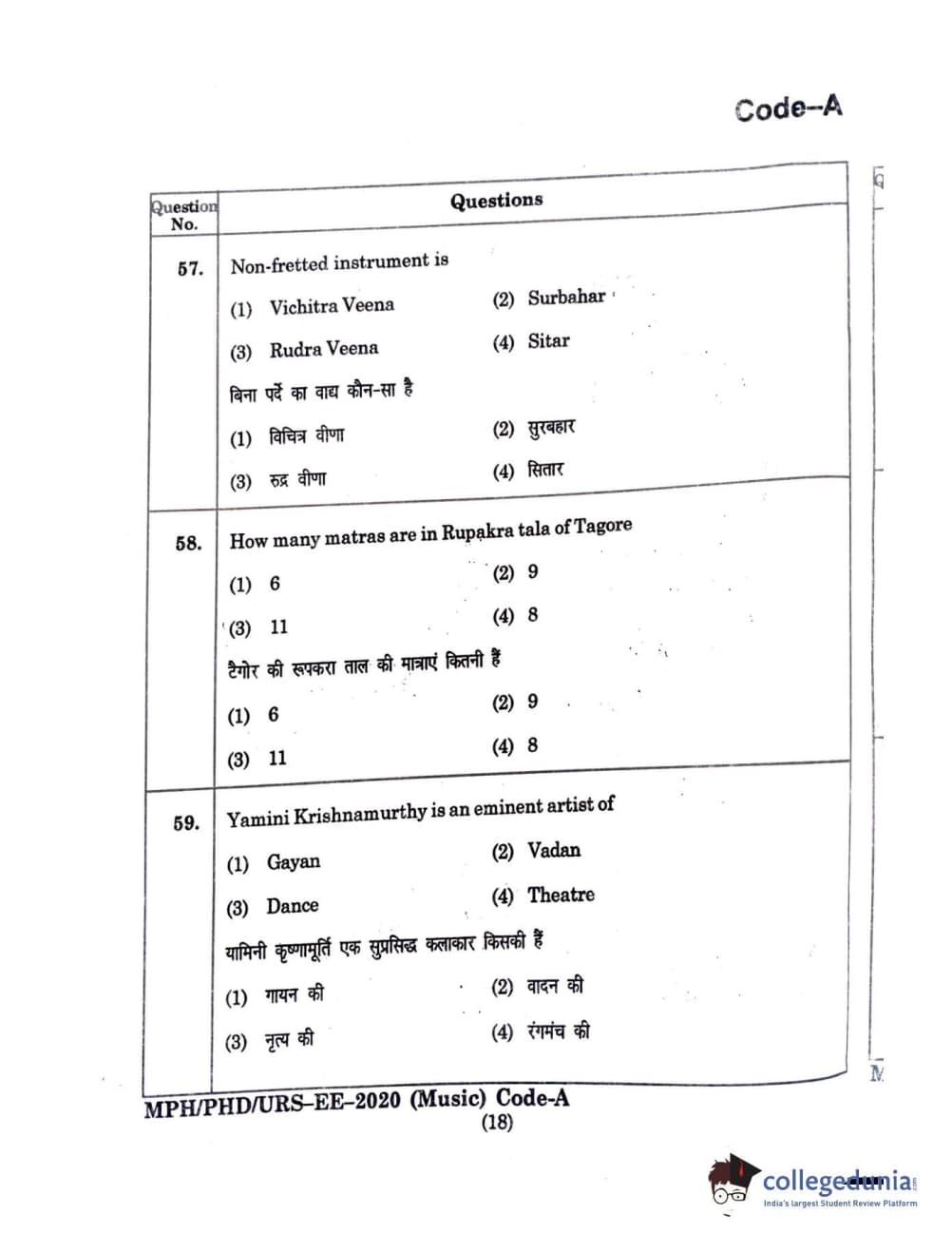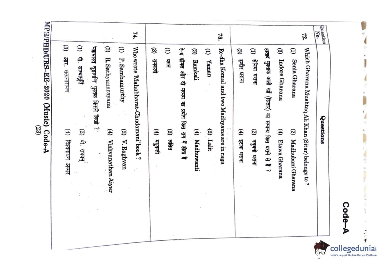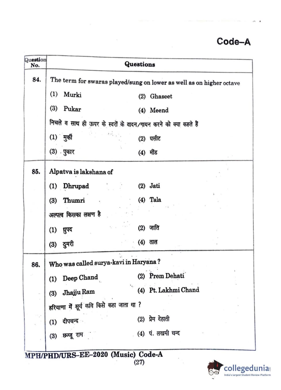 | MDUCEE 2020 M.Phil/Ph.D/URS - Music Question Paper PDF | MDUCEE 2020 M.Phil/Ph.D/URS - Music Answer Key PDF |