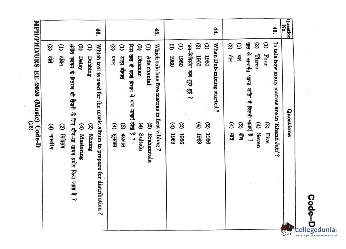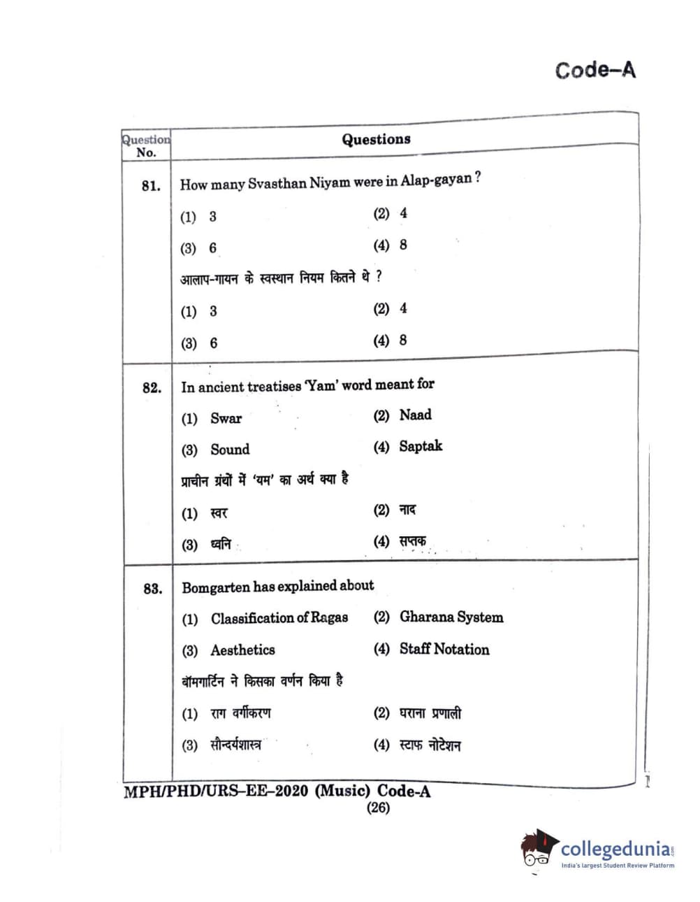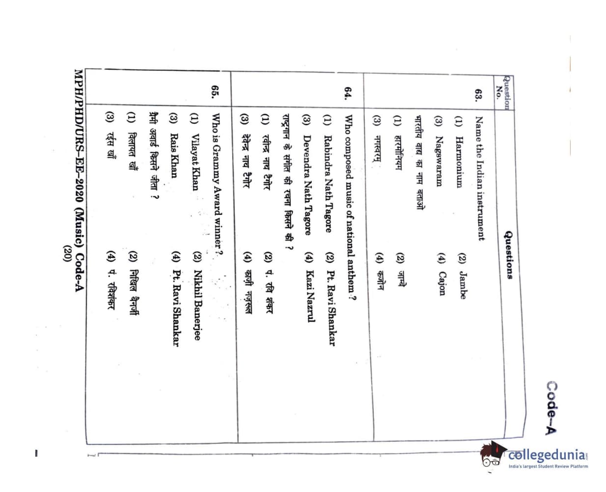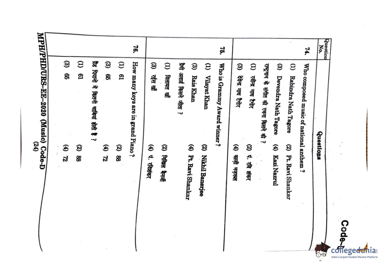 | MDUCEE 2020 M.Phil/Ph.D/URS - Music Question Paper PDF | MDUCEE 2020 M.Phil/Ph.D/URS - Music Answer Key PDF |