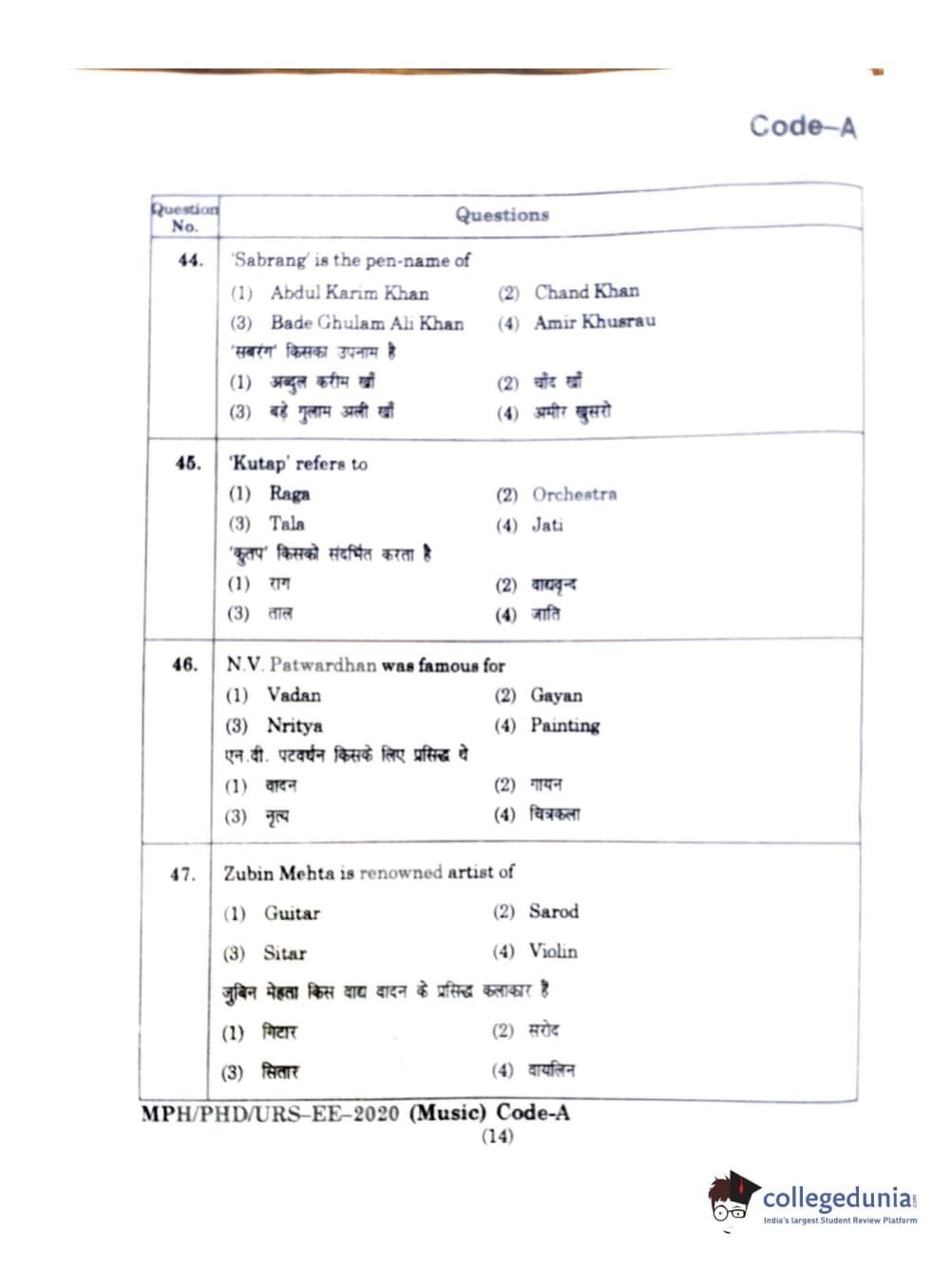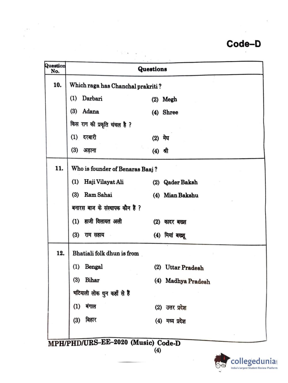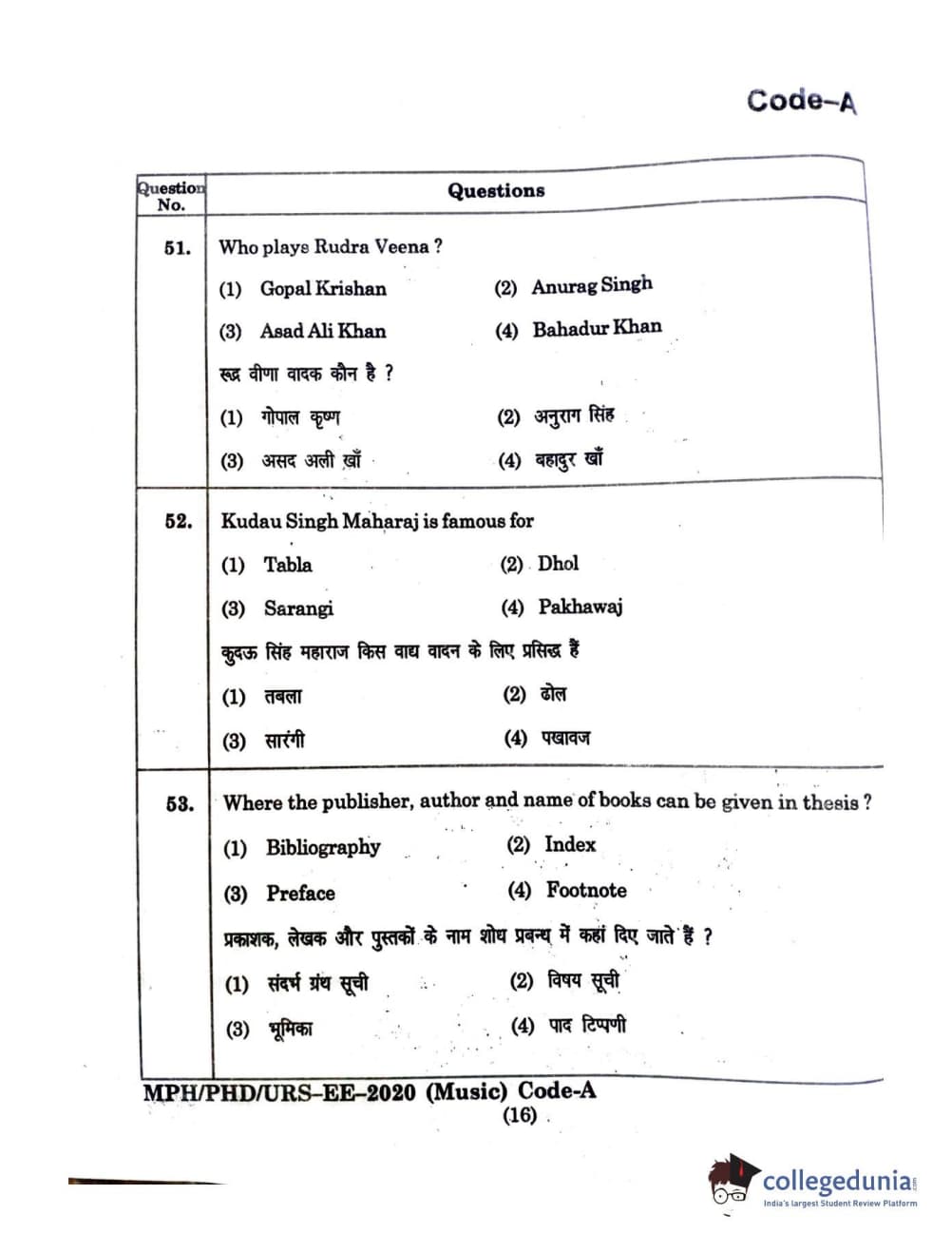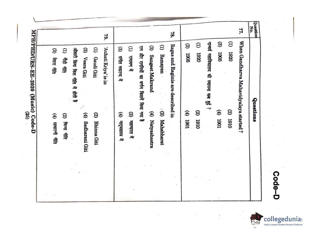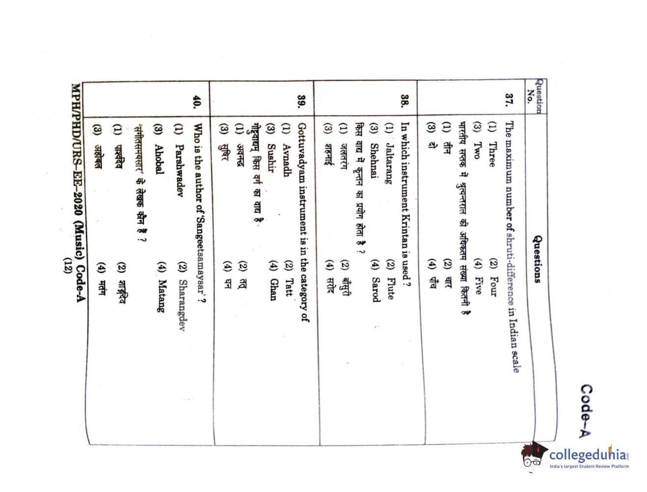 | MDUCEE 2020 M.Phil/Ph.D/URS - Music Question Paper PDF | MDUCEE 2020 M.Phil/Ph.D/URS - Music Answer Key PDF |