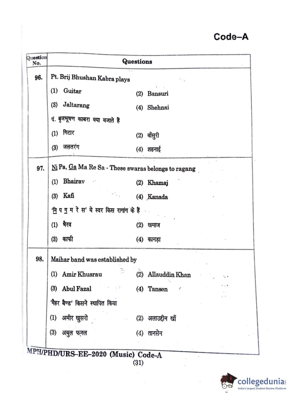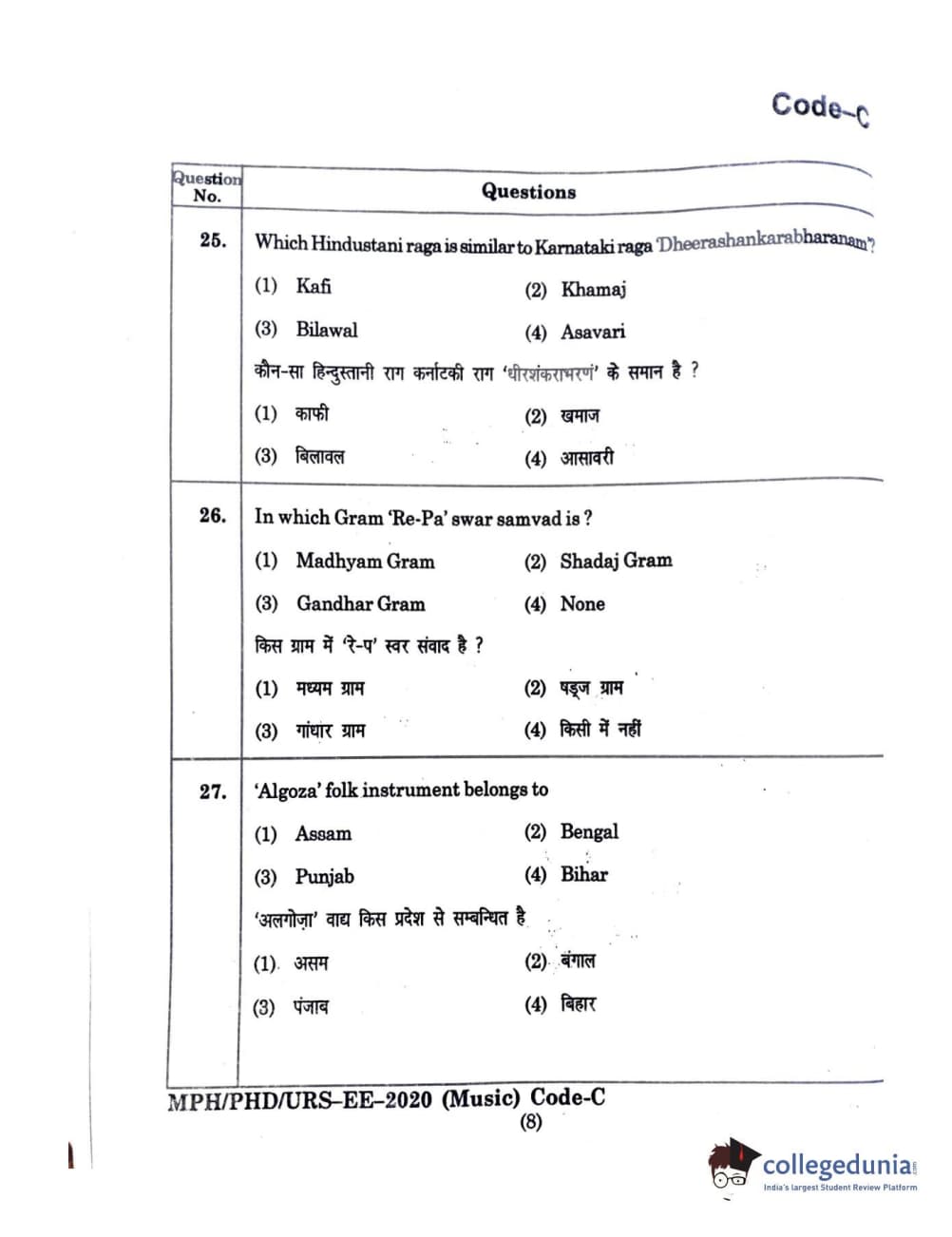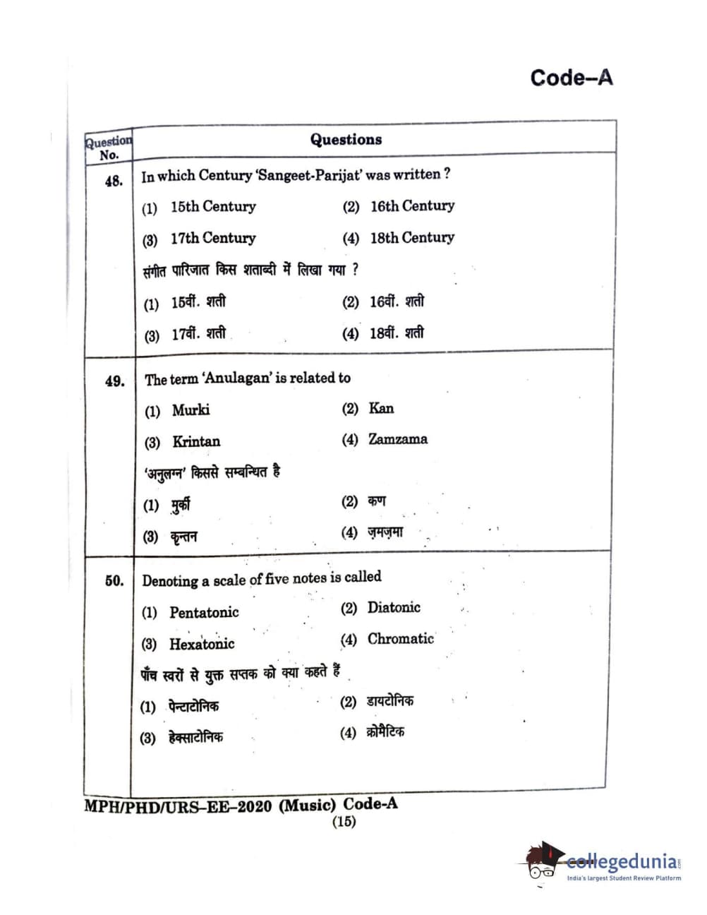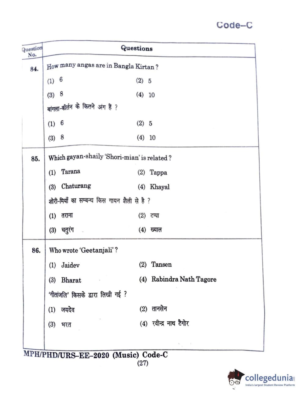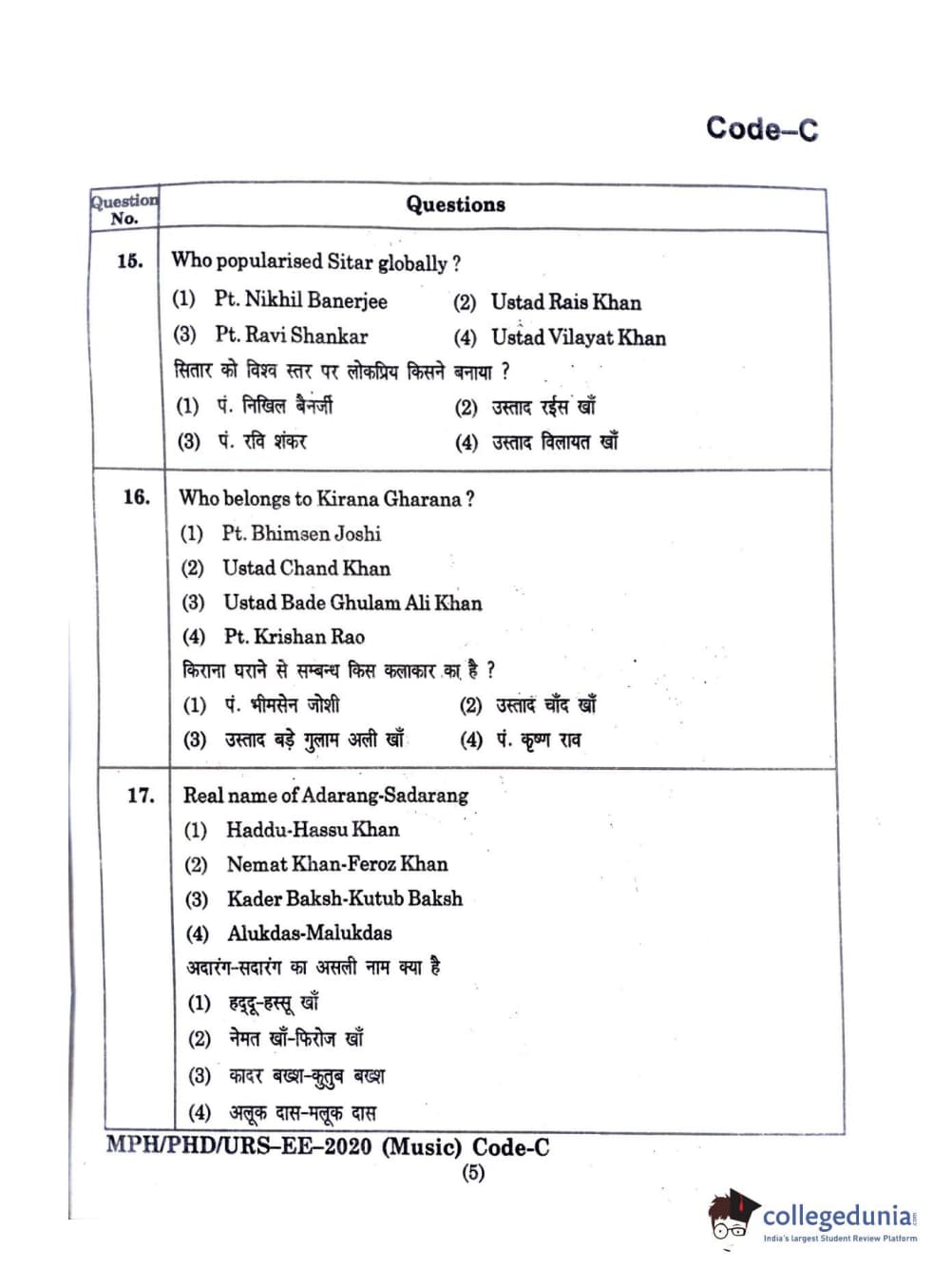 | MDUCEE 2020 M.Phil/Ph.D/URS - Music Question Paper PDF | MDUCEE 2020 M.Phil/Ph.D/URS - Music Answer Key PDF |