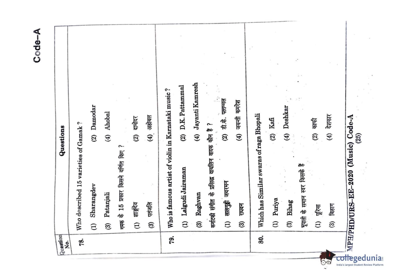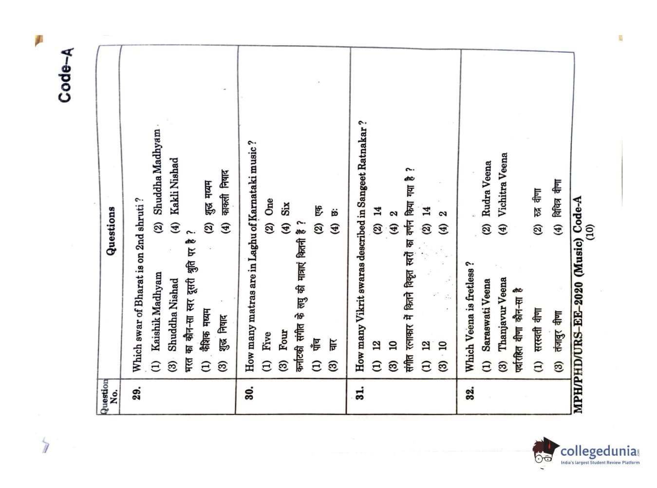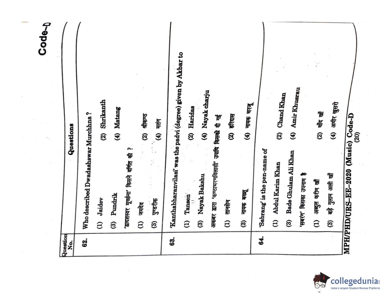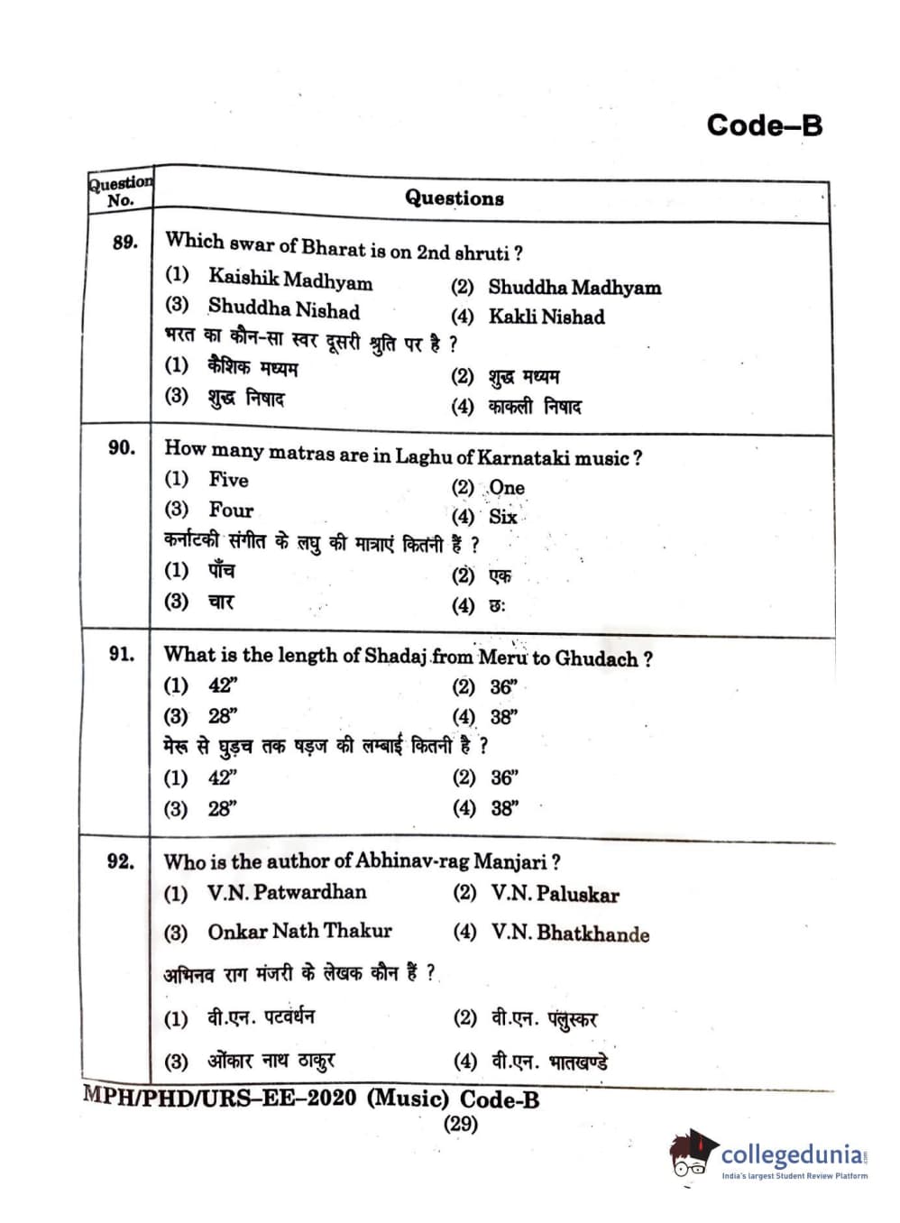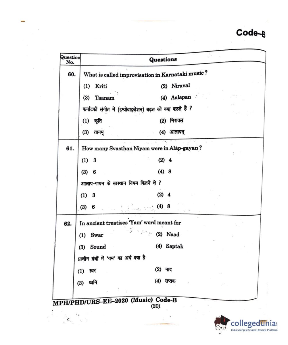 MDUCEE 2020 M.Phil/Ph.D/URS - Music Question Paper with Answer Key PDFs