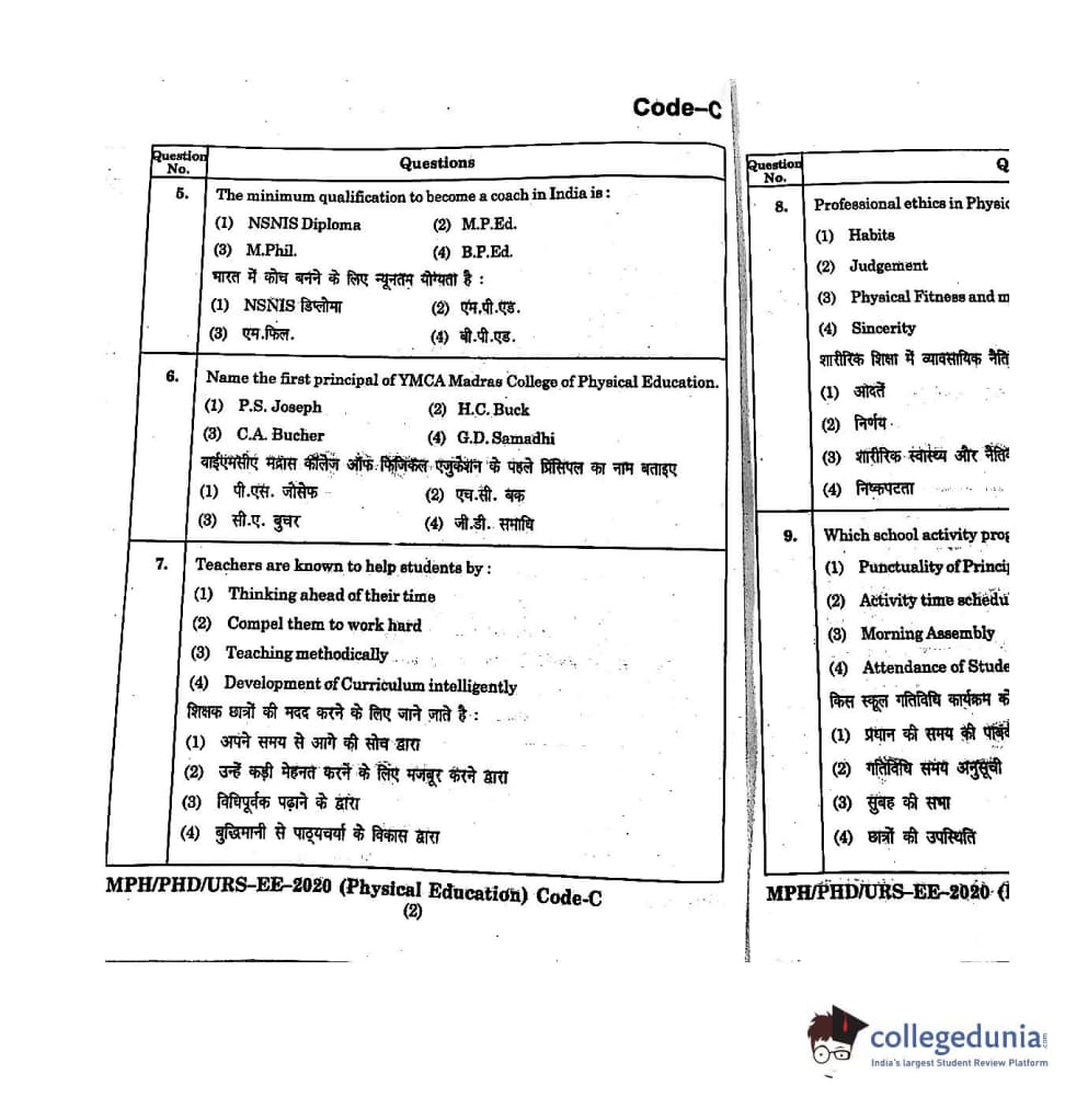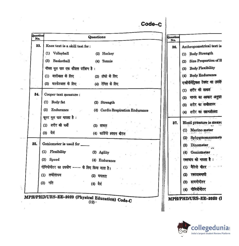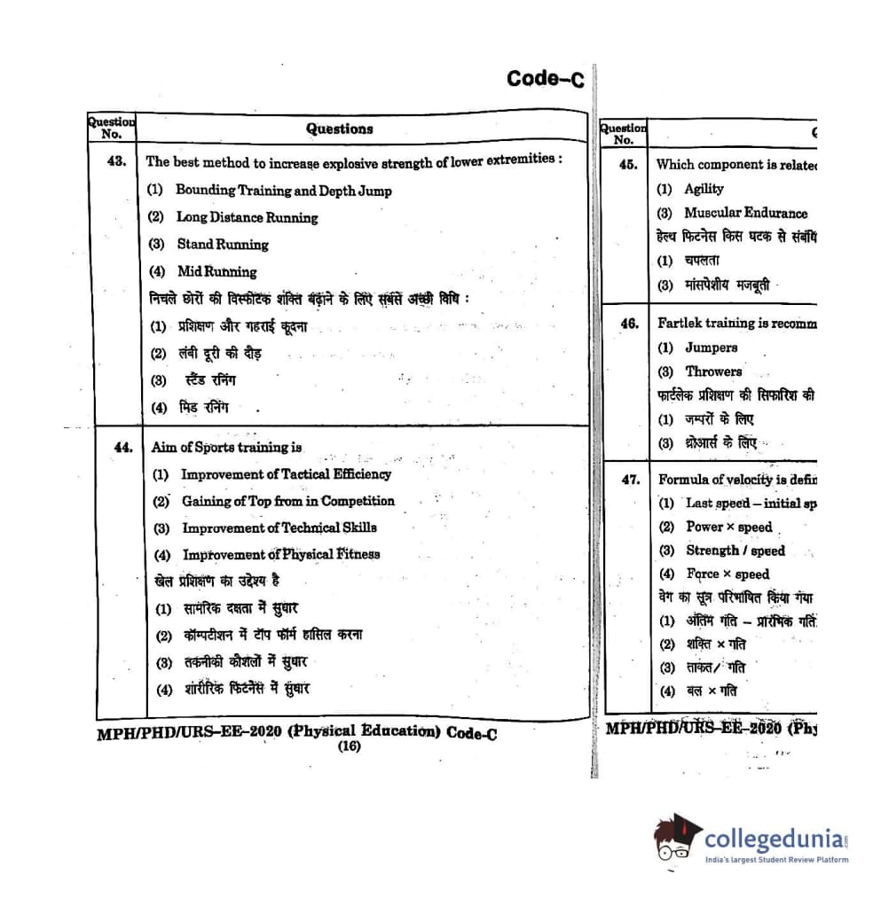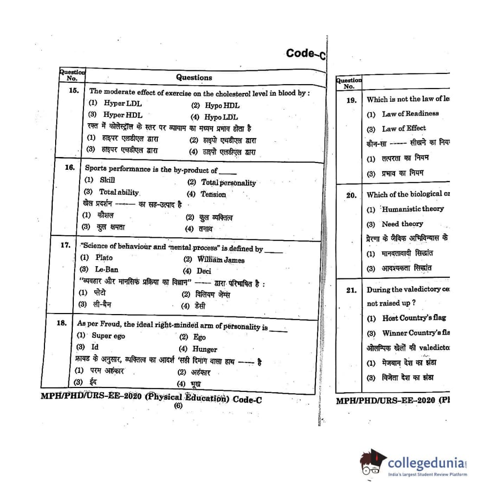 | MDUCEE 2020 M.Phil/Ph.D/URS - Physical Education Set C Question Paper PDF | MDUCEE 2020 M.Phil/Ph.D/URS - Physical Education Set C Answer Key PDF |