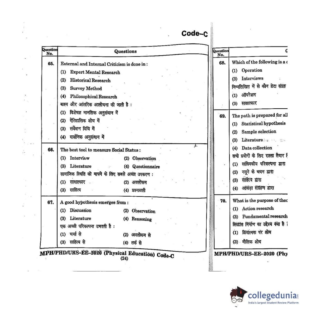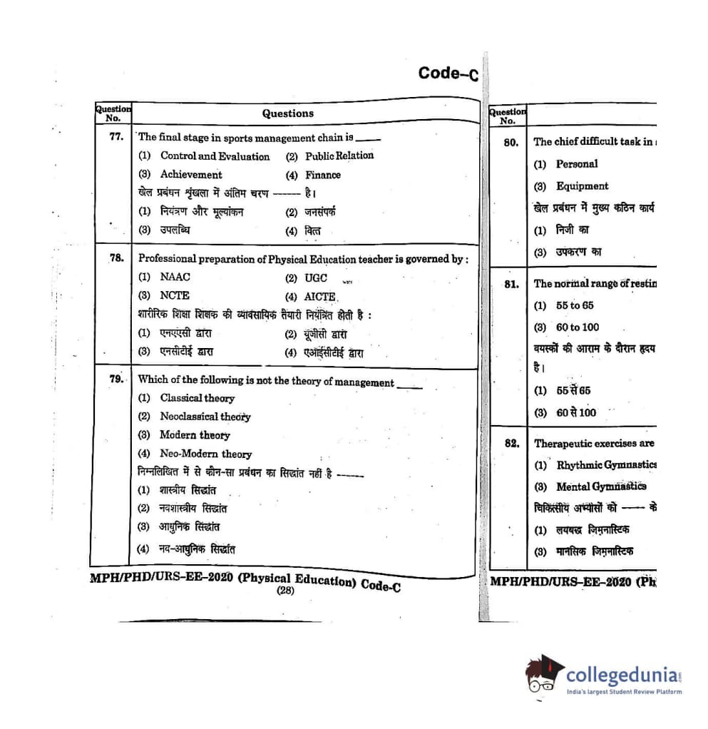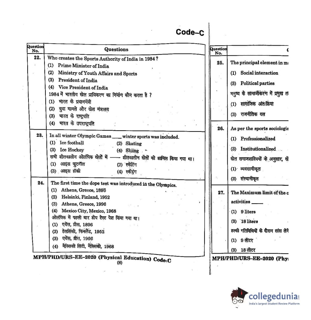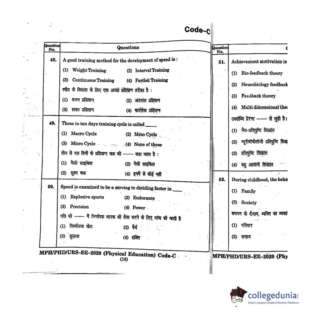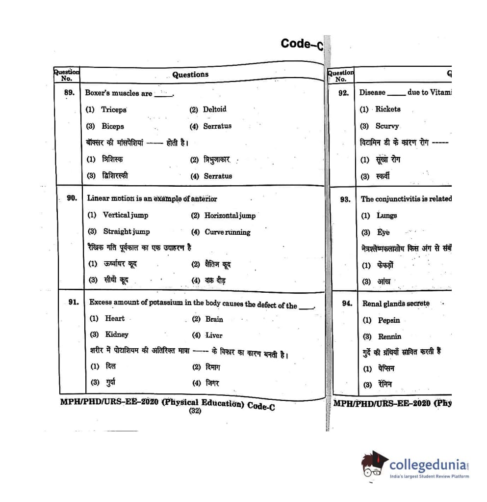 | MDUCEE 2020 M.Phil/Ph.D/URS - Physical Education Set C Question Paper PDF | MDUCEE 2020 M.Phil/Ph.D/URS - Physical Education Set C Answer Key PDF |