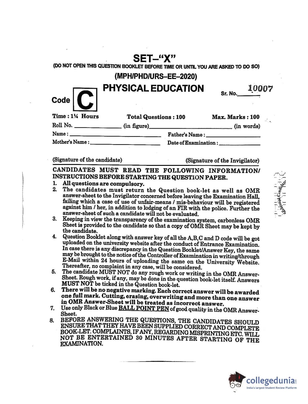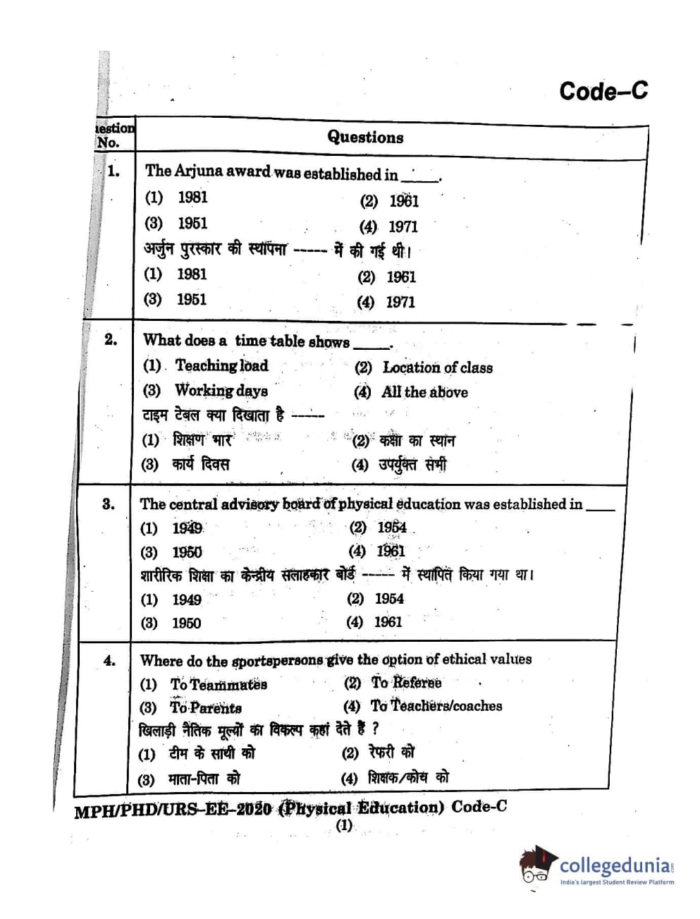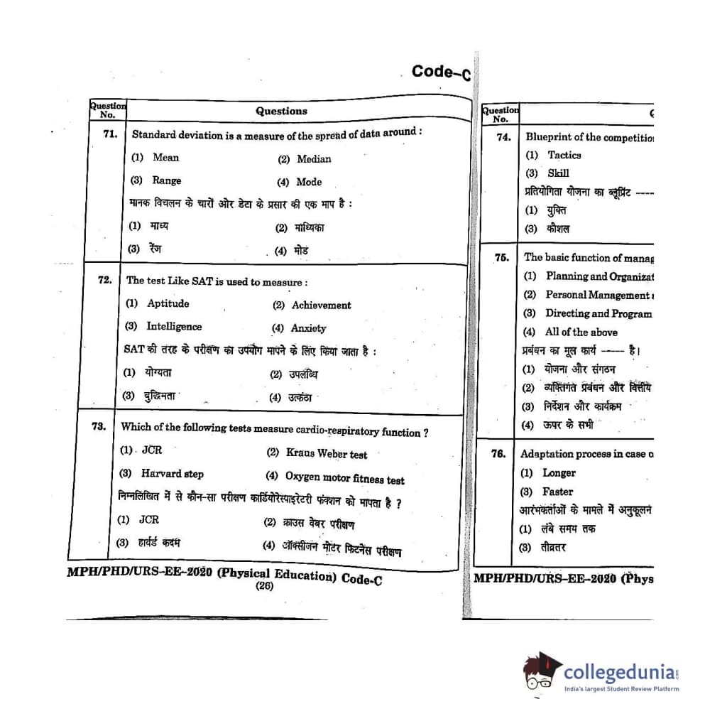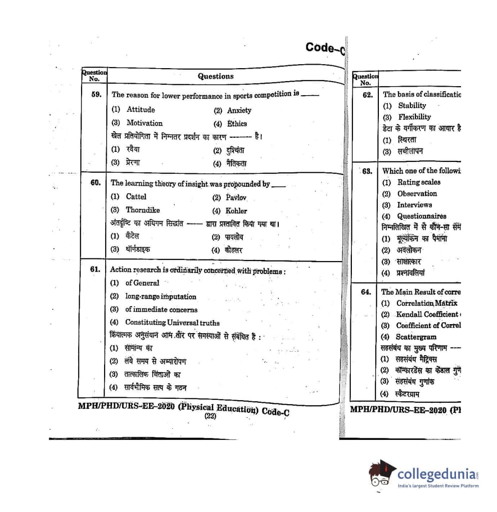 | MDUCEE 2020 M.Phil/Ph.D/URS - Physical Education Set C Question Paper PDF | MDUCEE 2020 M.Phil/Ph.D/URS - Physical Education Set C Answer Key PDF |
