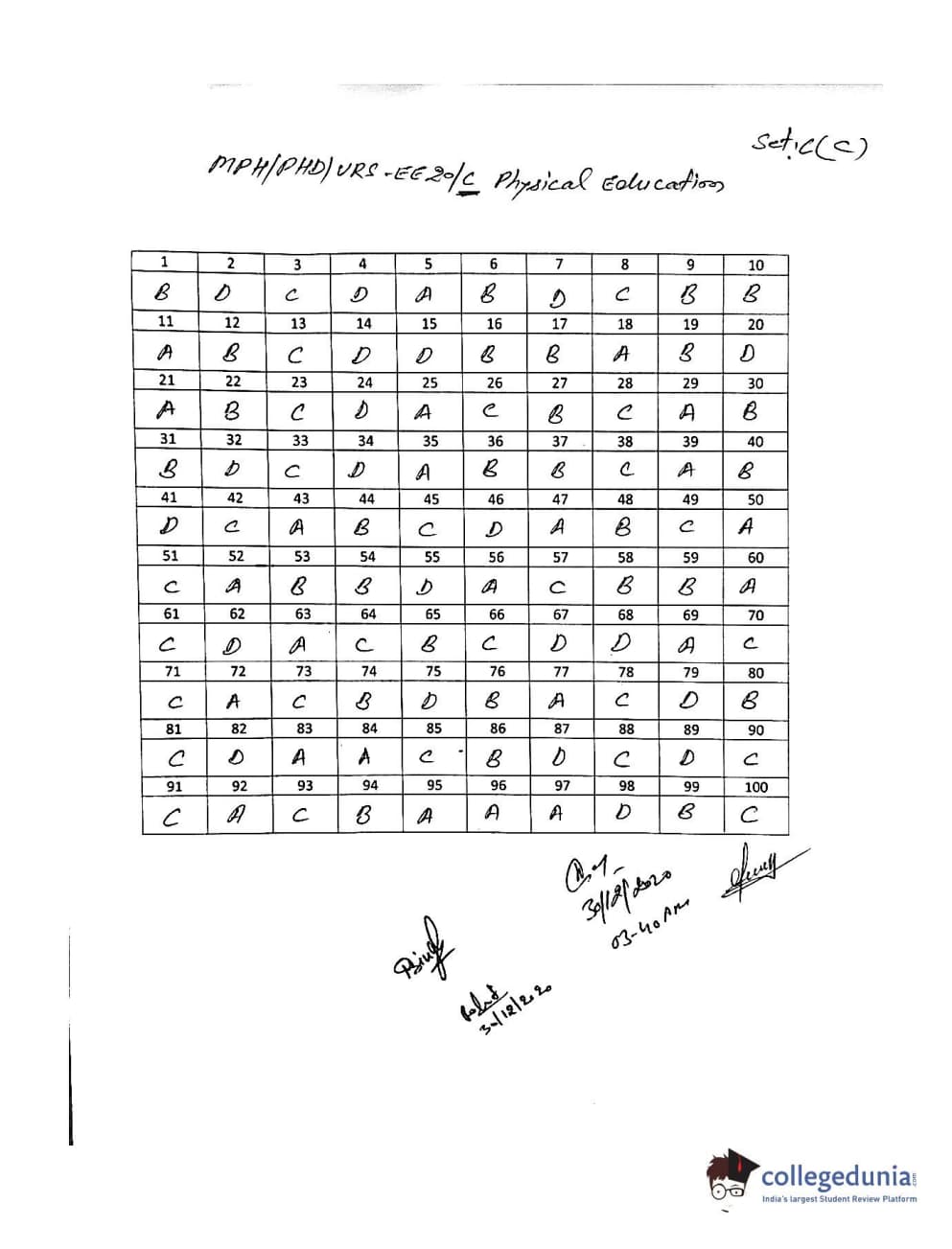 MDUCEE 2020 M.Phil/Ph.D/URS - Physical Education Set C Question Paper with Answer Key PDFs