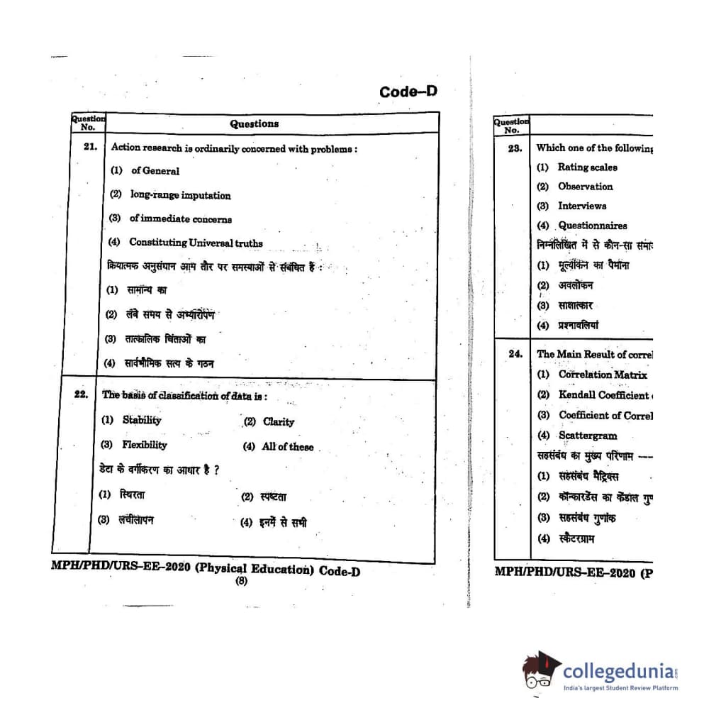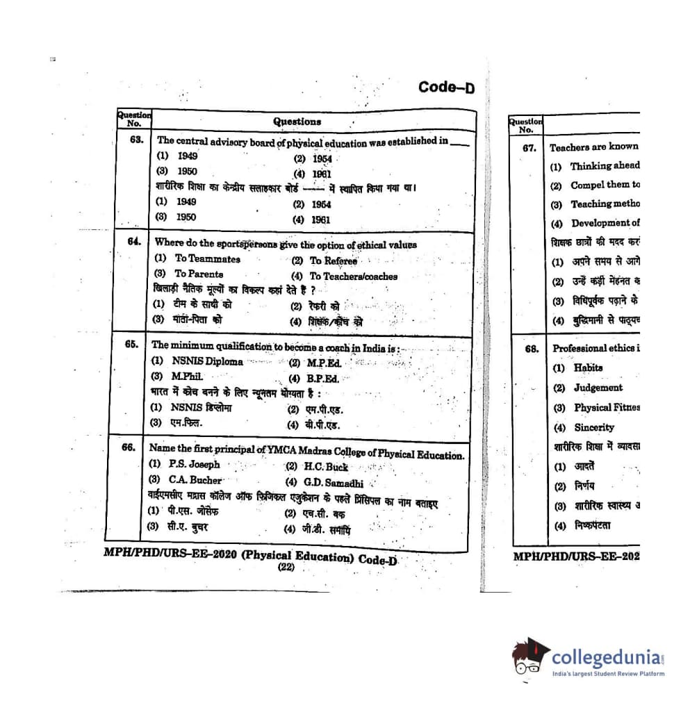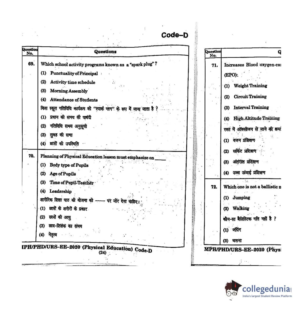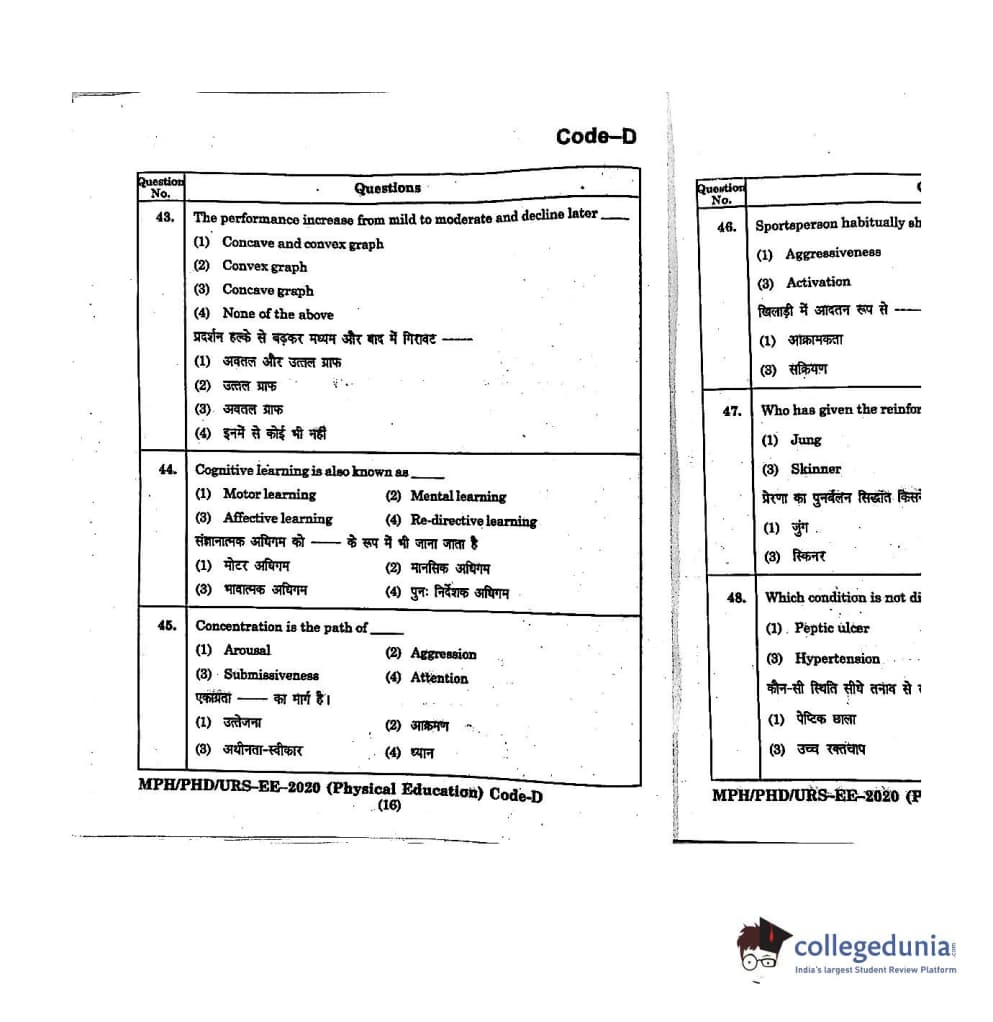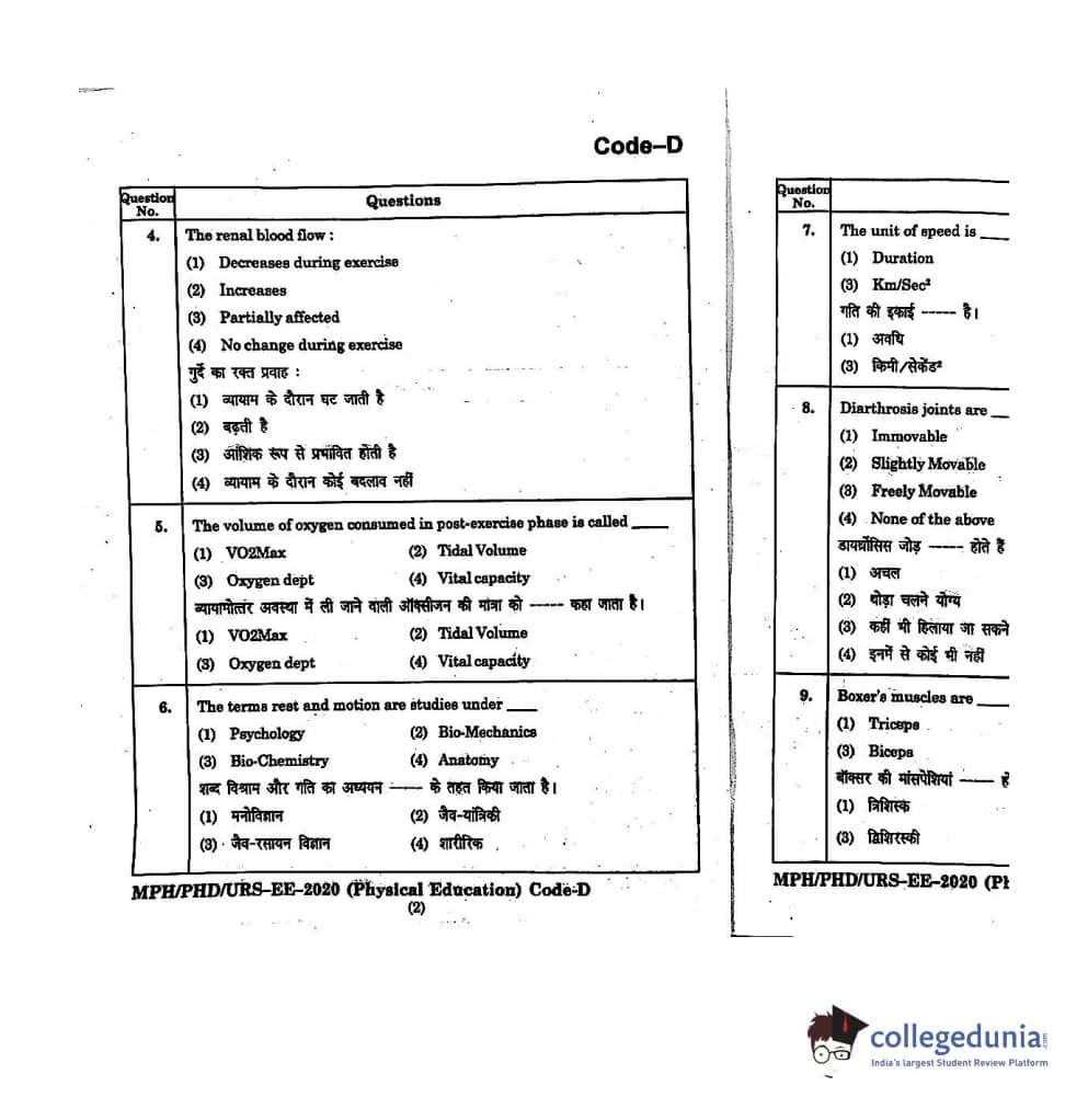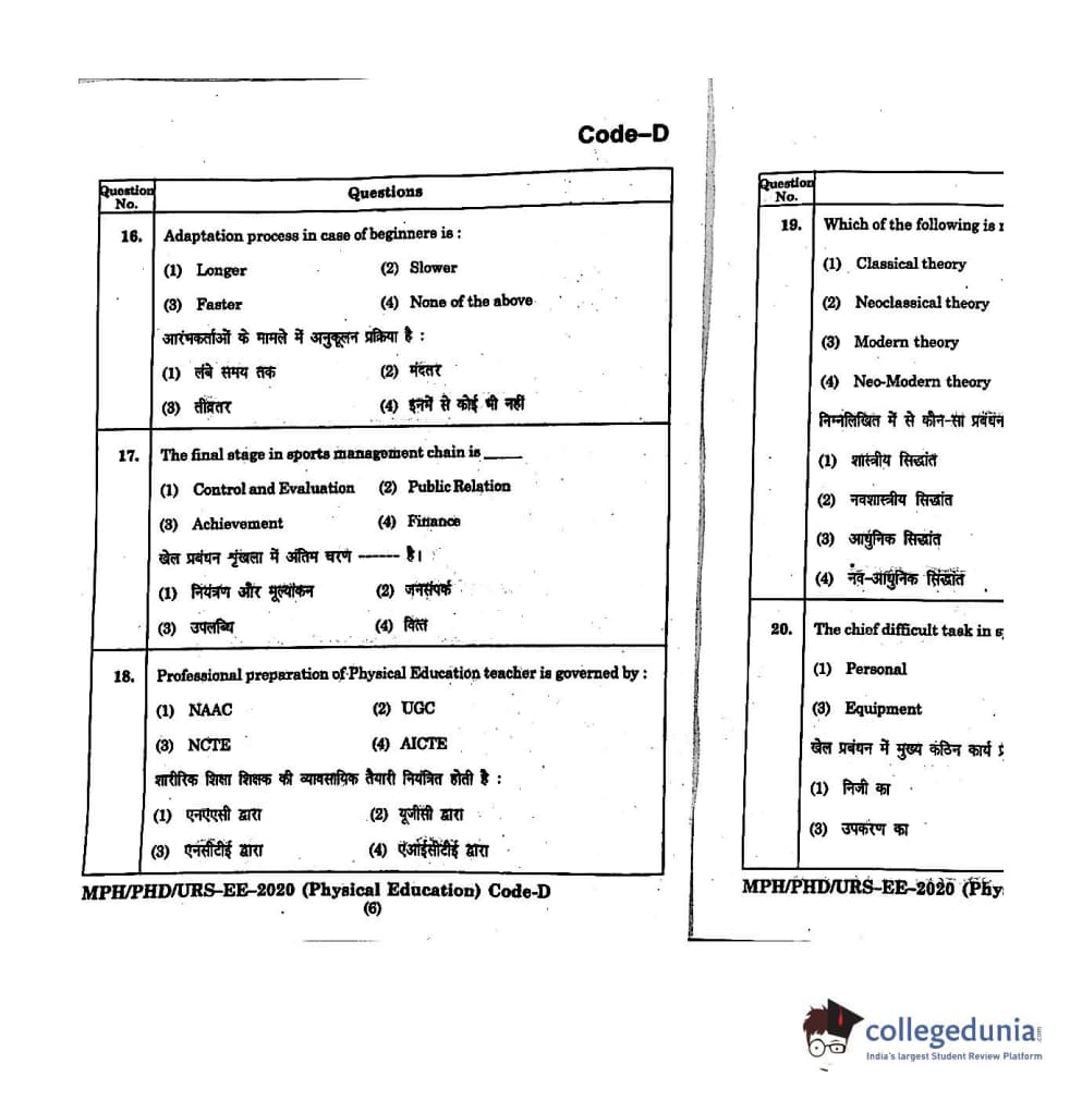 | MDUCEE 2020 M.Phil/Ph.D/URS - Physical Education Set D Question Paper PDF | MDUCEE 2020 M.Phil/Ph.D/URS - Physical Education Set D Answer Key PDF |