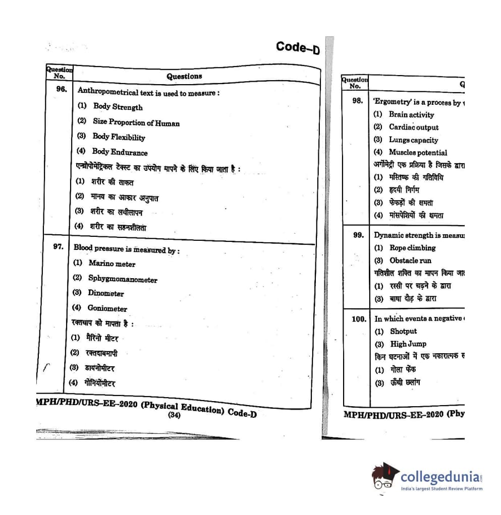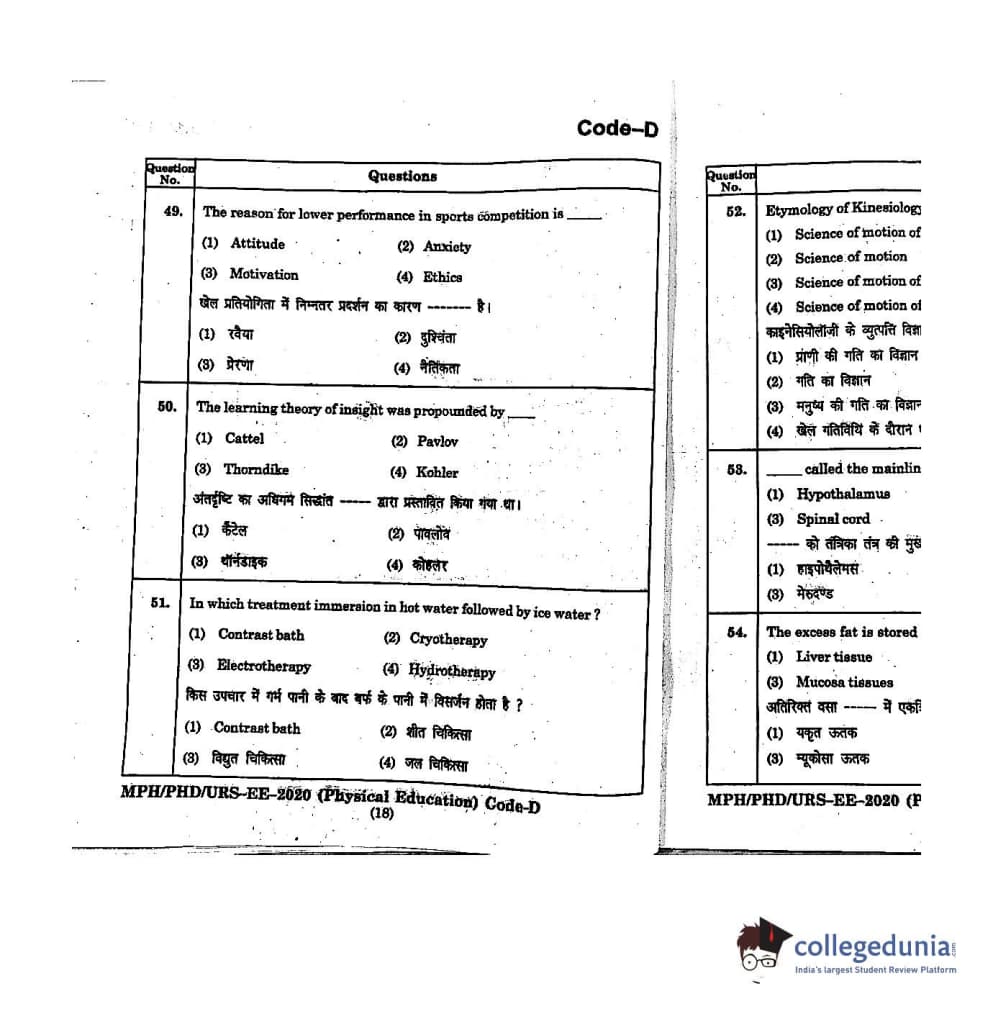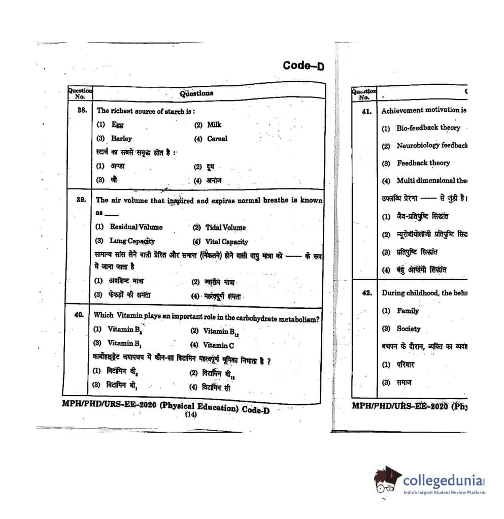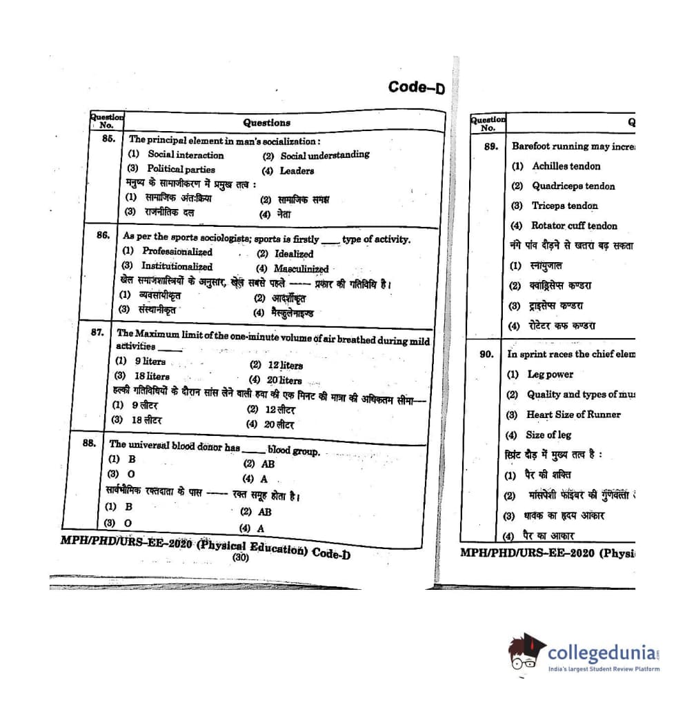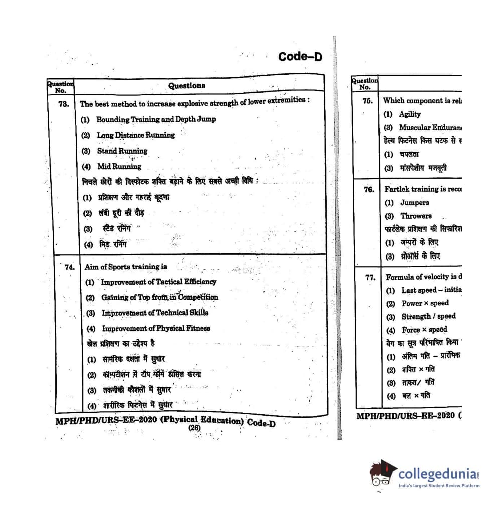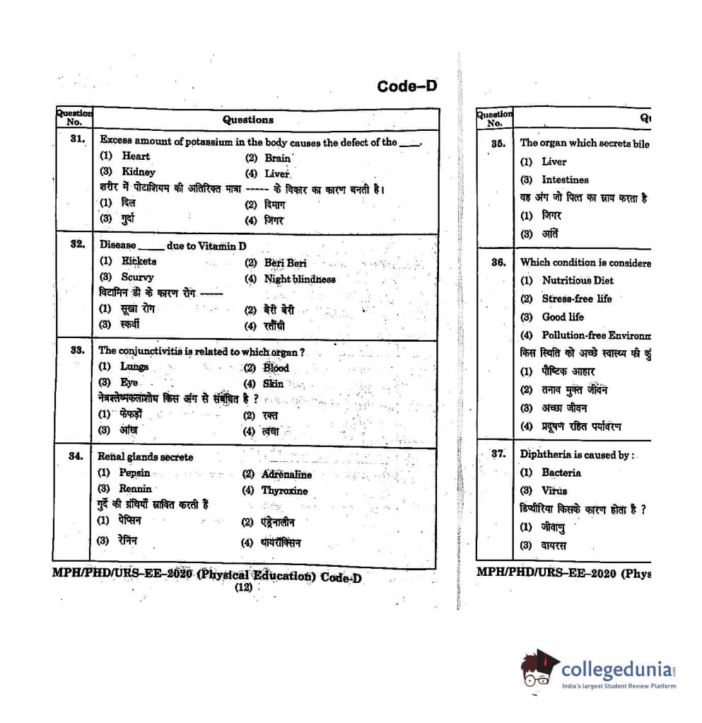 | MDUCEE 2020 M.Phil/Ph.D/URS - Physical Education Set D Question Paper PDF | MDUCEE 2020 M.Phil/Ph.D/URS - Physical Education Set D Answer Key PDF |