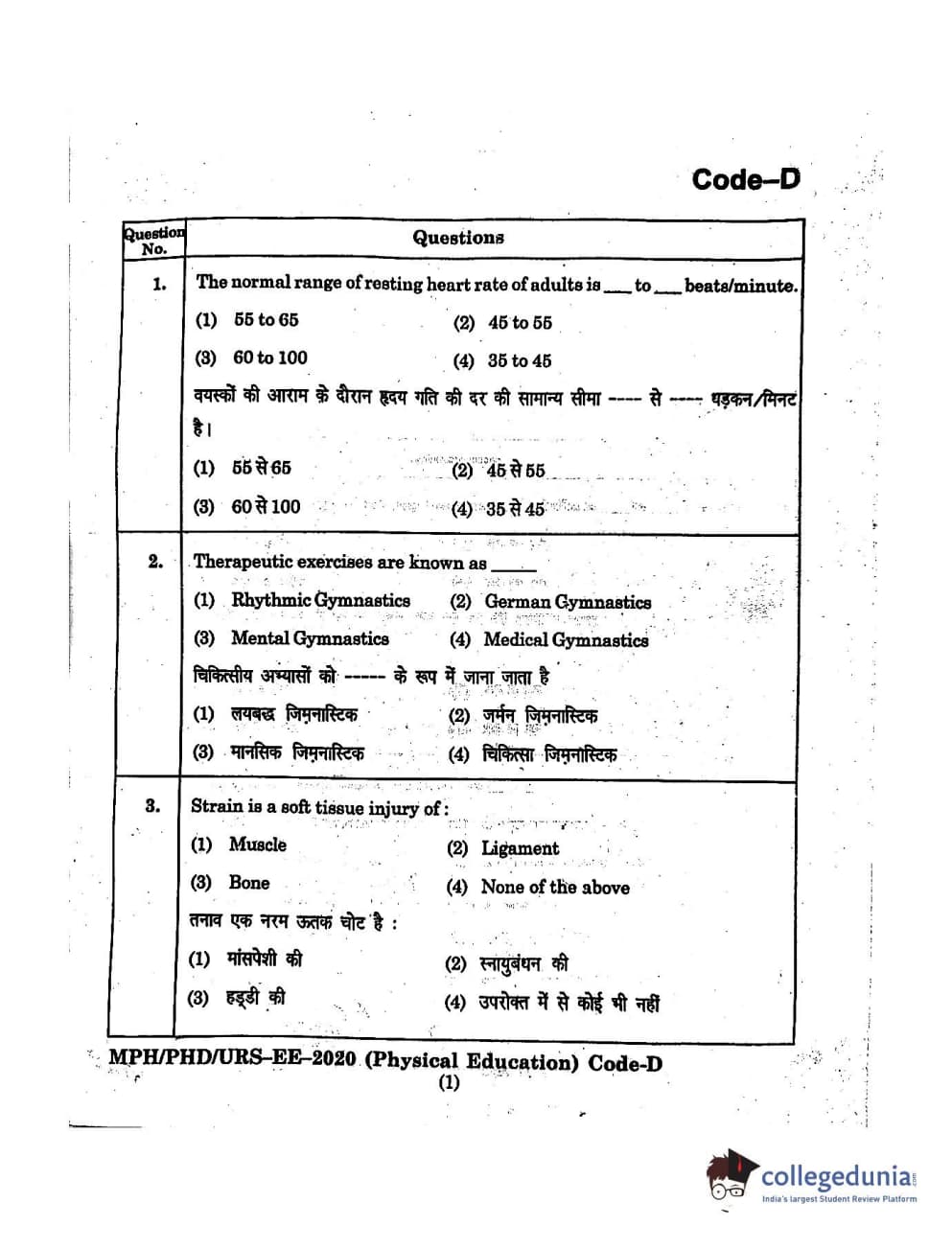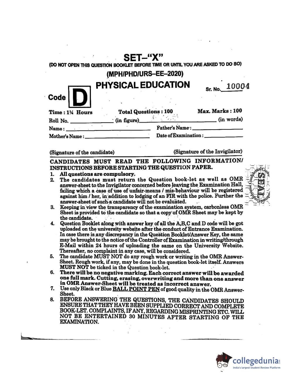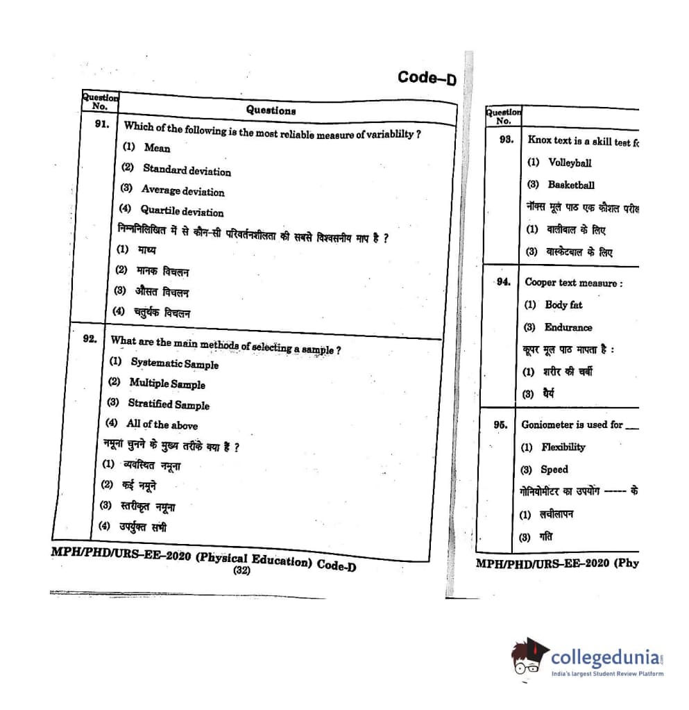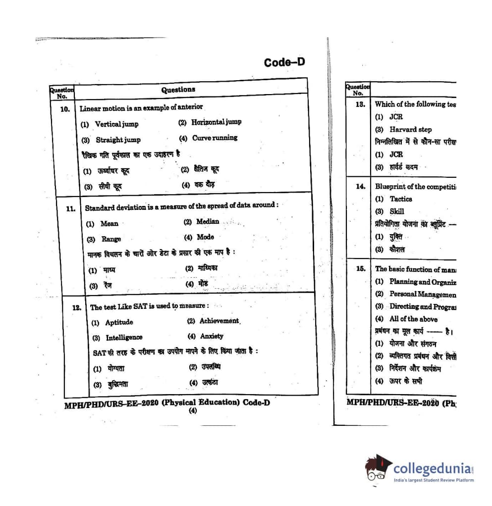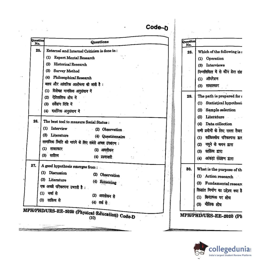 | MDUCEE 2020 M.Phil/Ph.D/URS - Physical Education Set D Question Paper PDF | MDUCEE 2020 M.Phil/Ph.D/URS - Physical Education Set D Answer Key PDF |