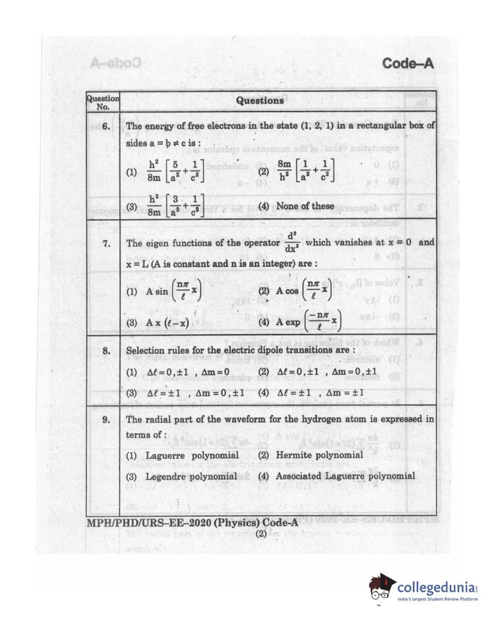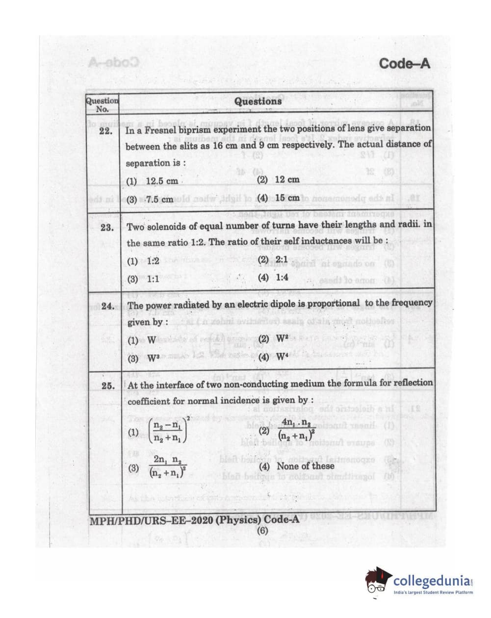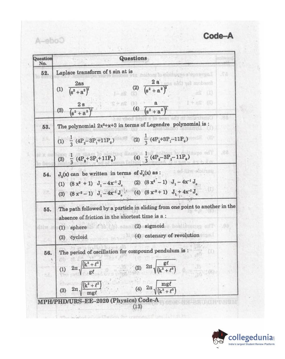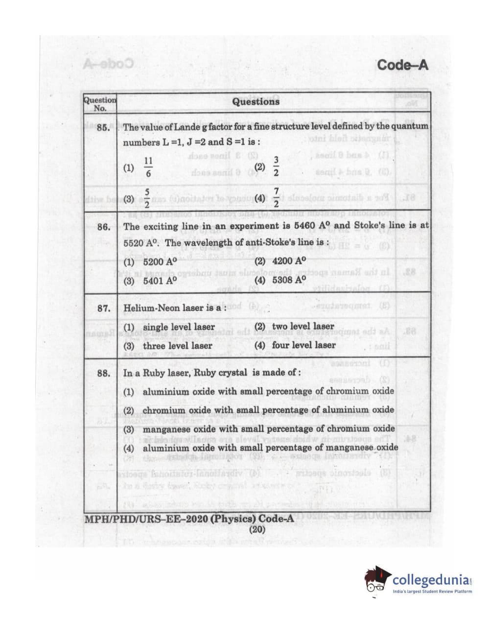 MDUCEE 2020 M.Phil/Ph.D/URS – Physics Set A Question Paper with Answer Key PDFs