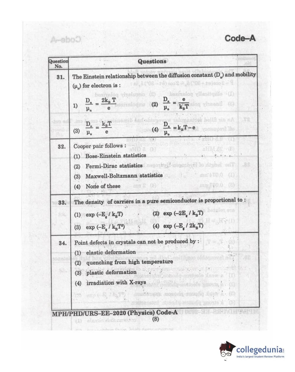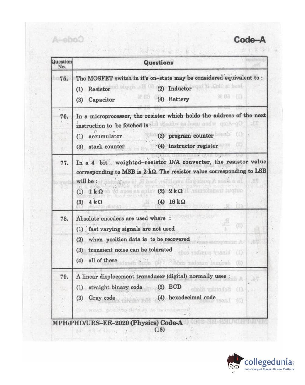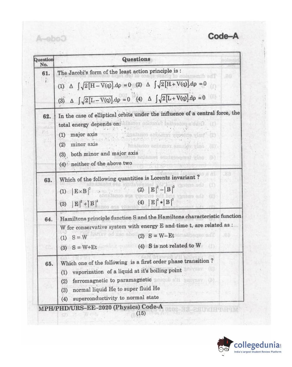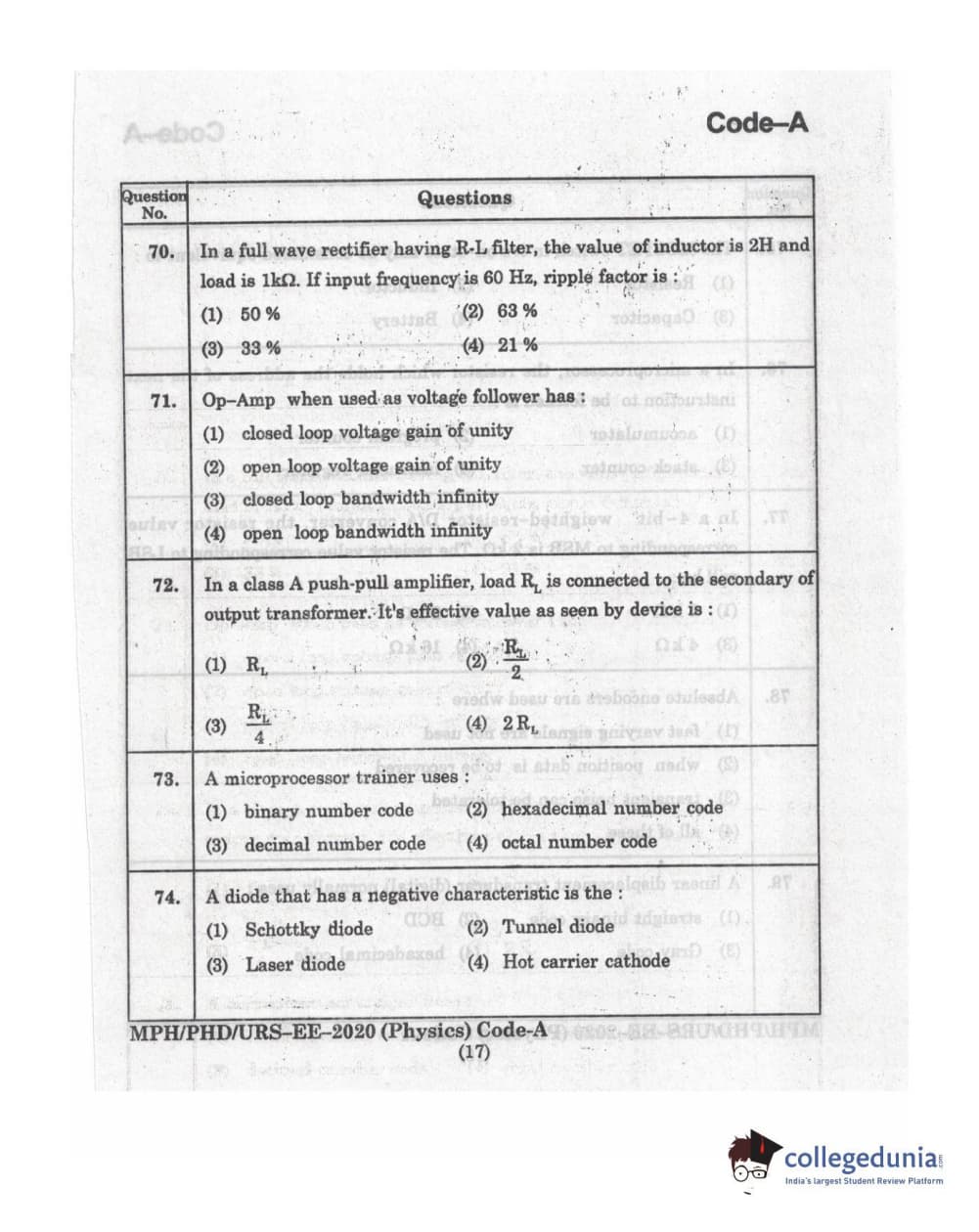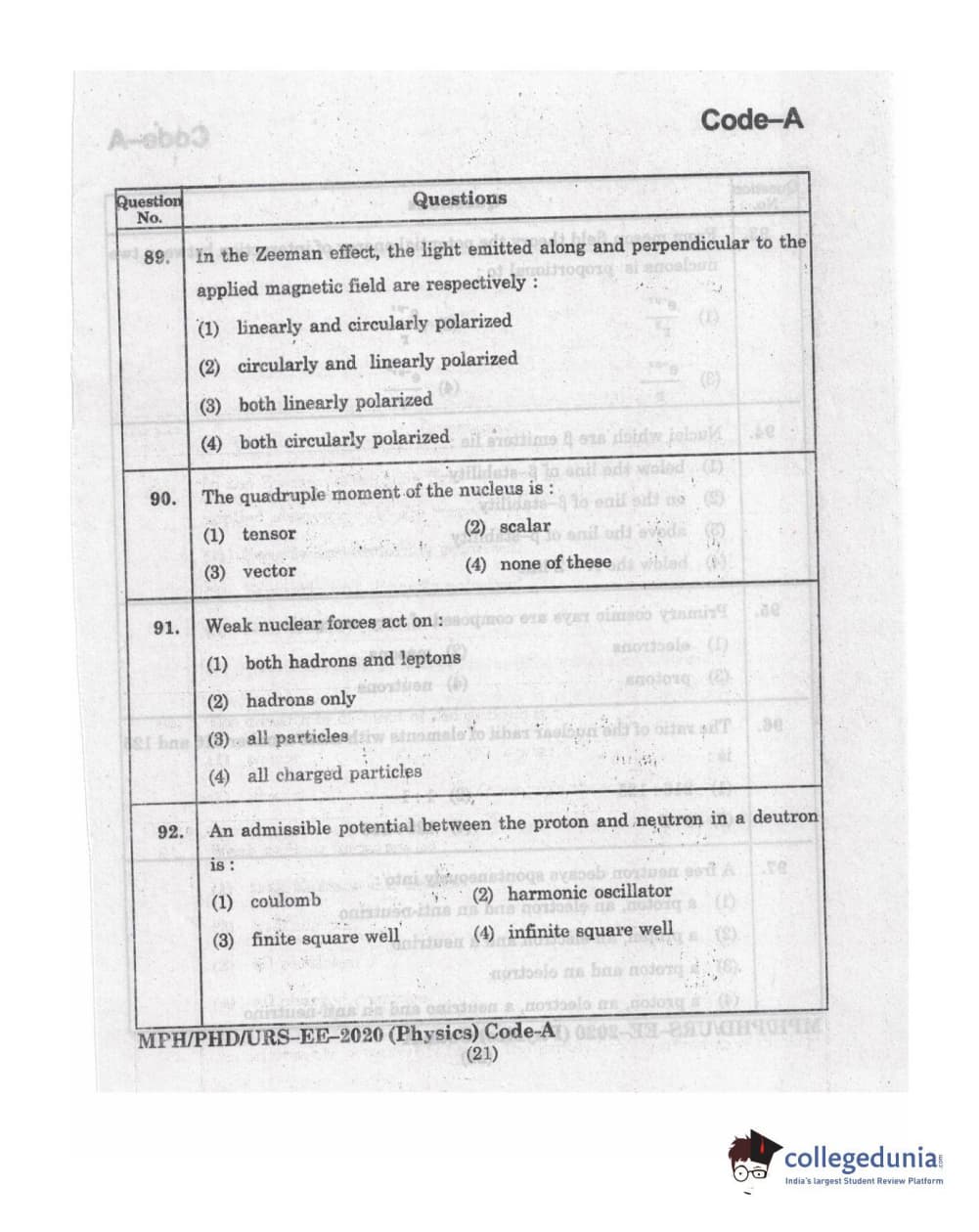 MDUCEE 2020 M.Phil/Ph.D/URS – Physics Set A Question Paper with Answer Key PDFs