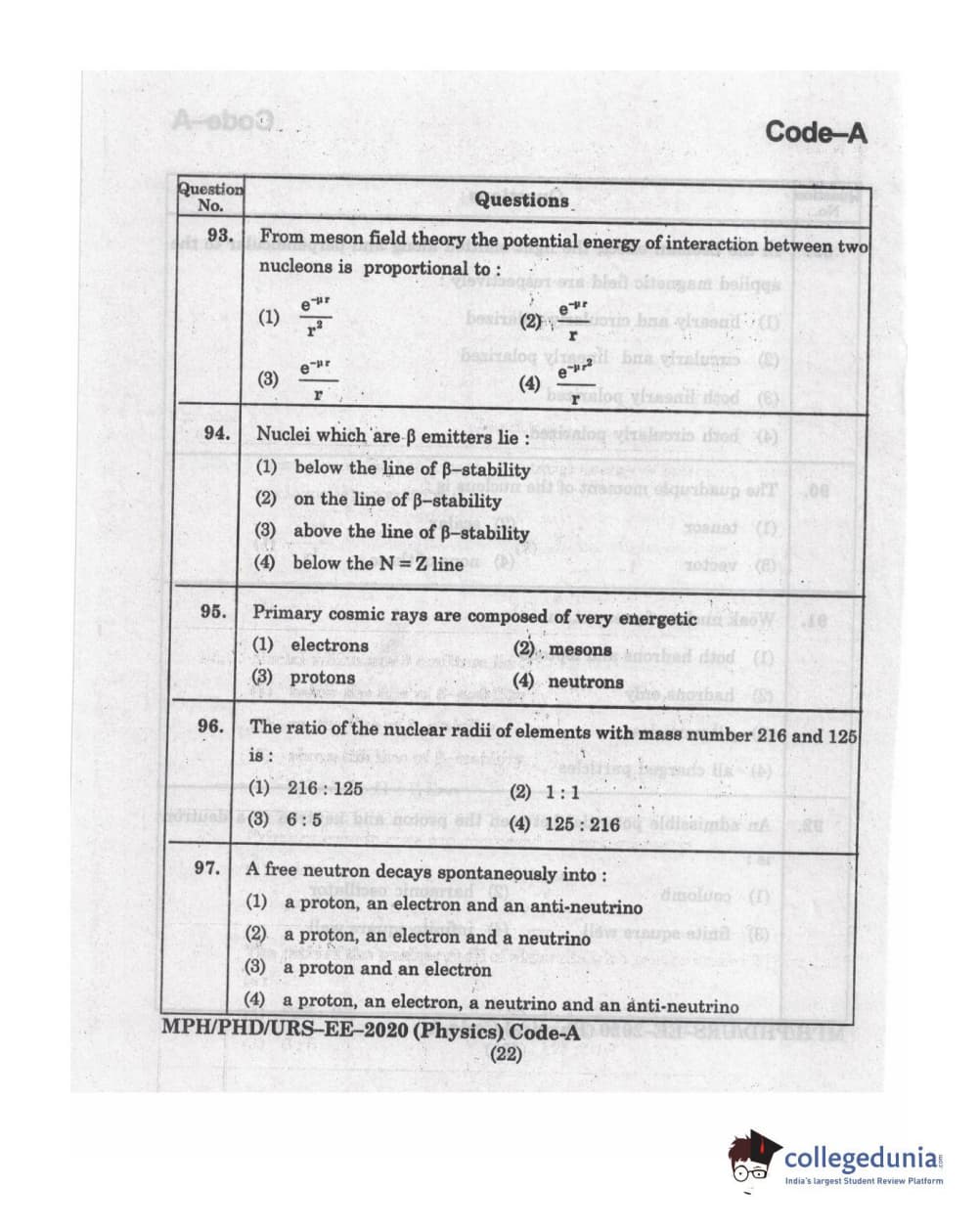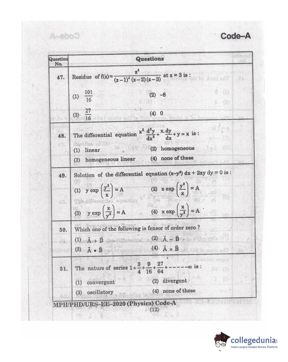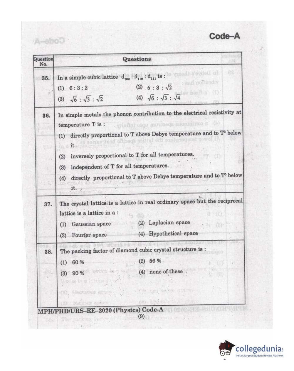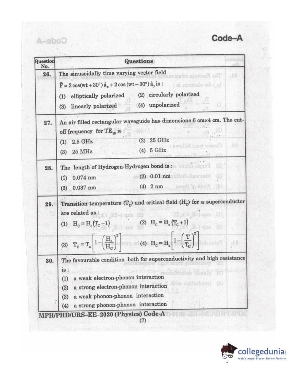 MDUCEE 2020 M.Phil/Ph.D/URS – Physics Set A Question Paper with Answer Key PDFs