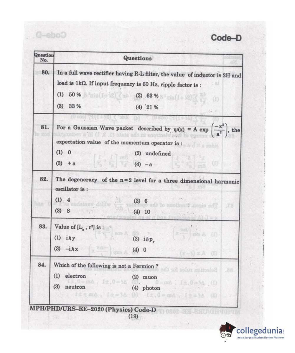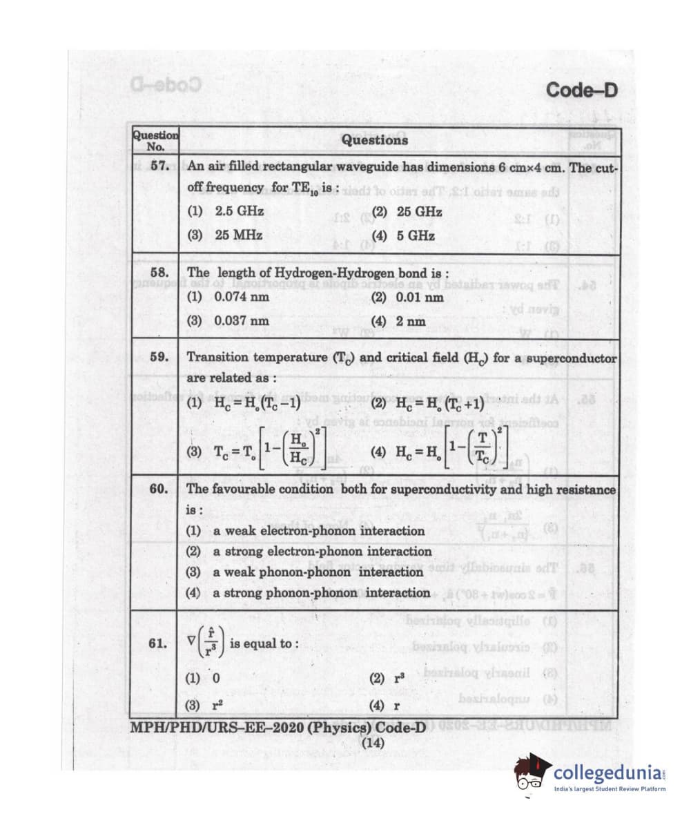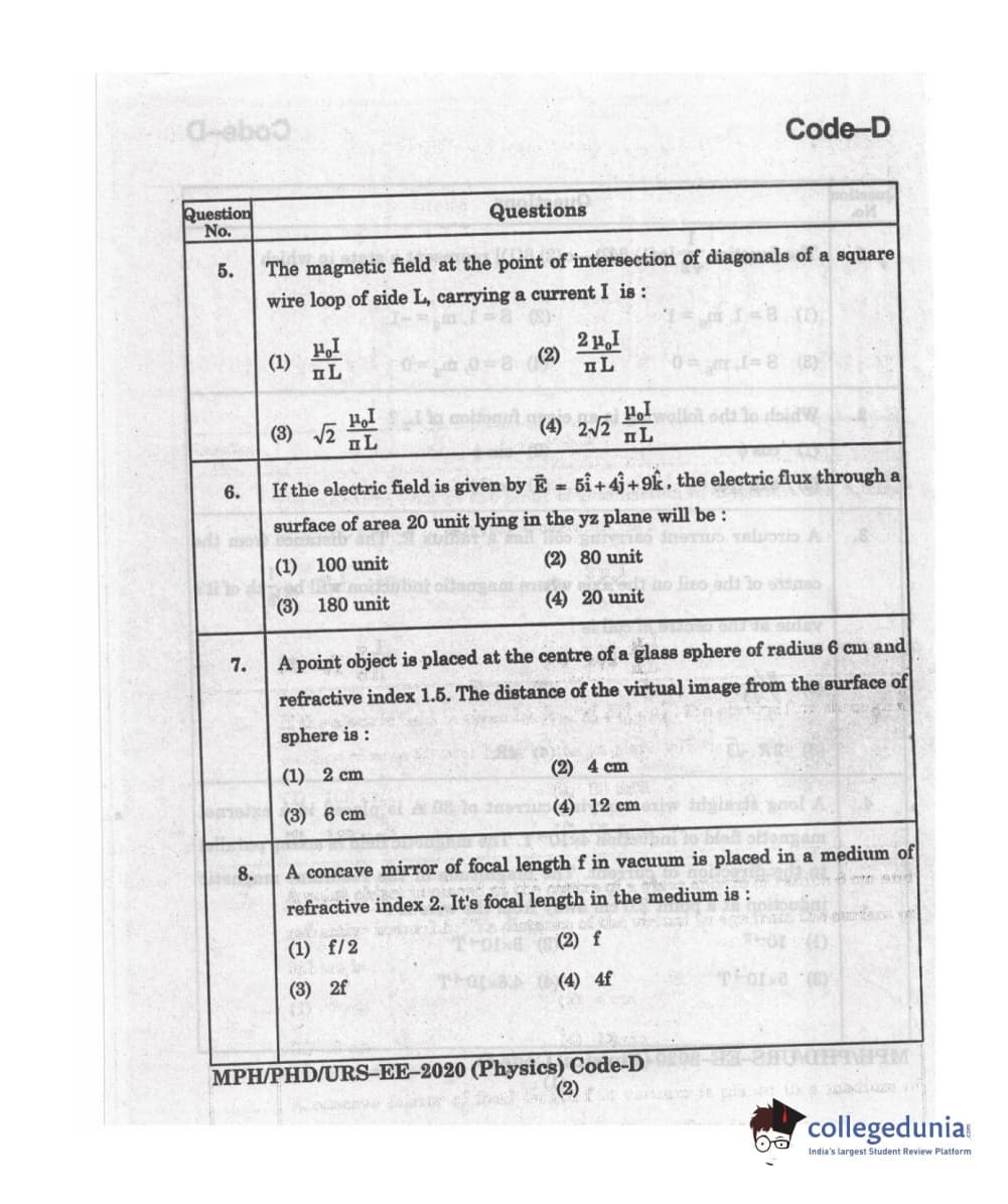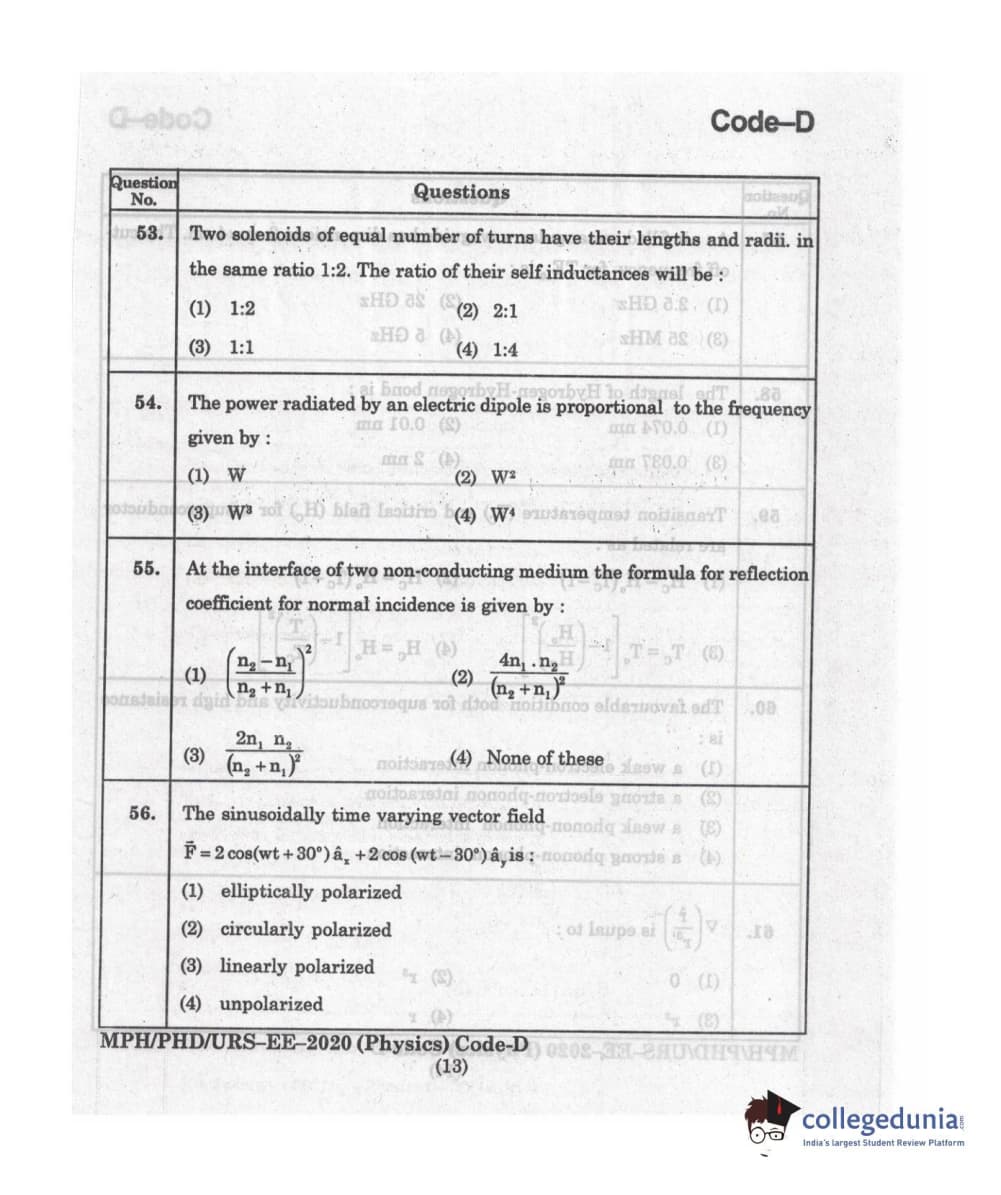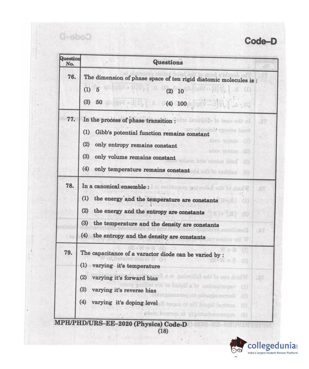 MDUCEE 2020 M.Phil/Ph.D/URS – Physics Set D Question Paper with Answer Key PDFs