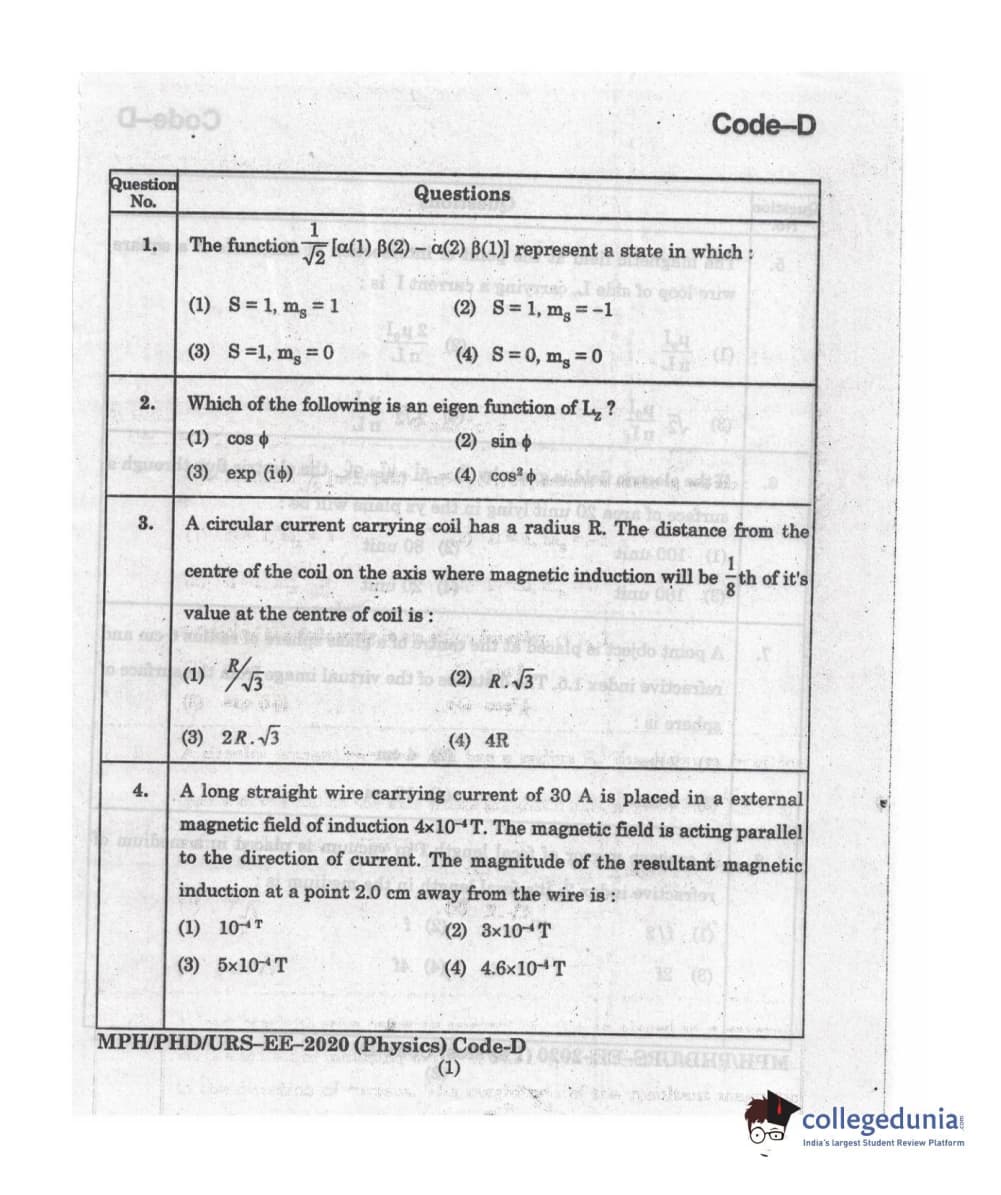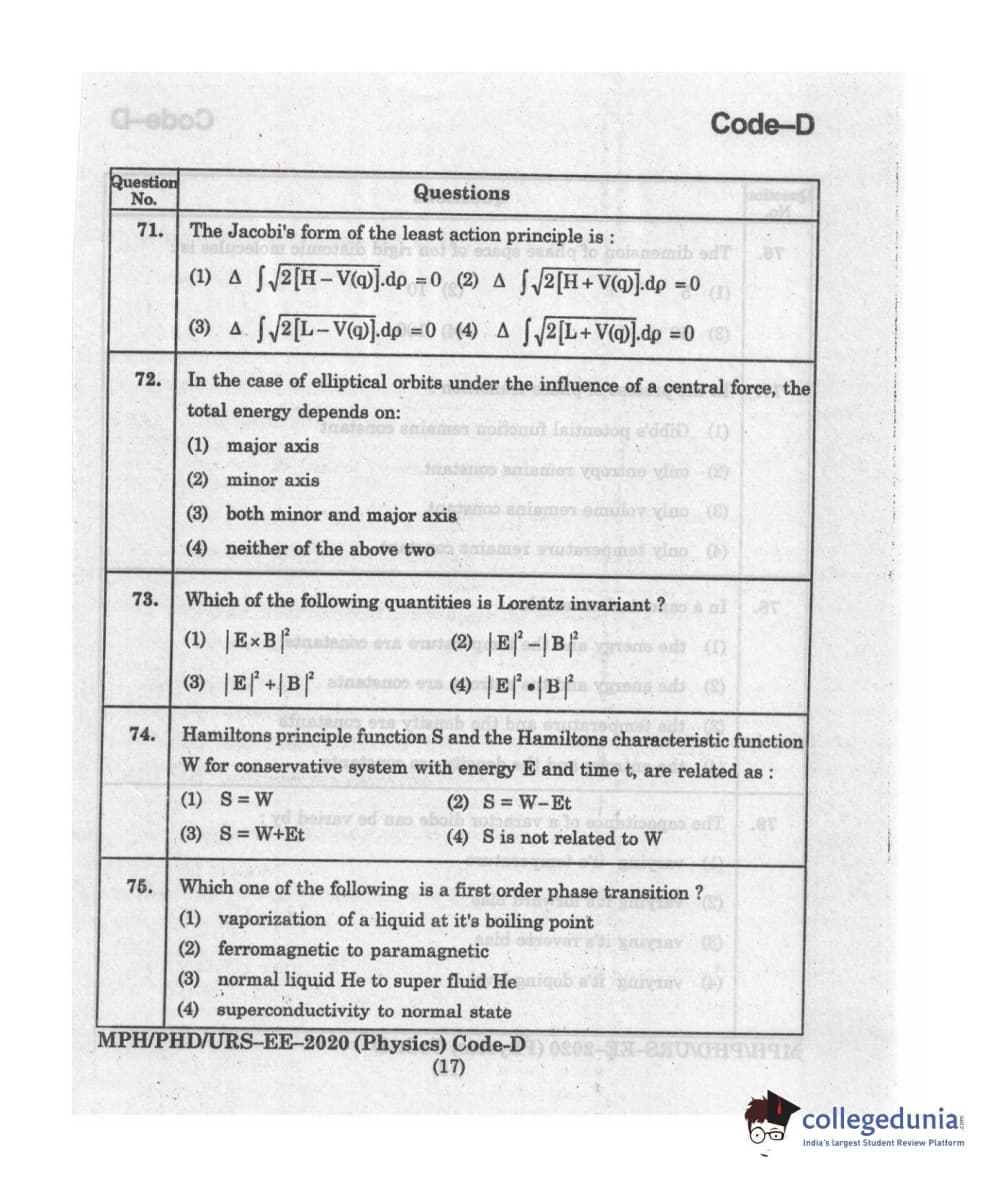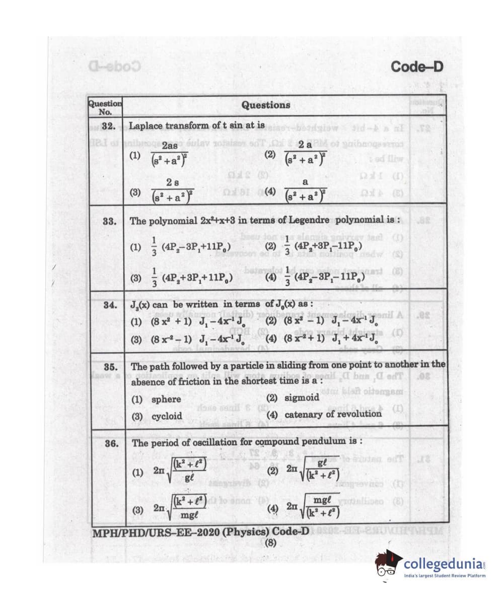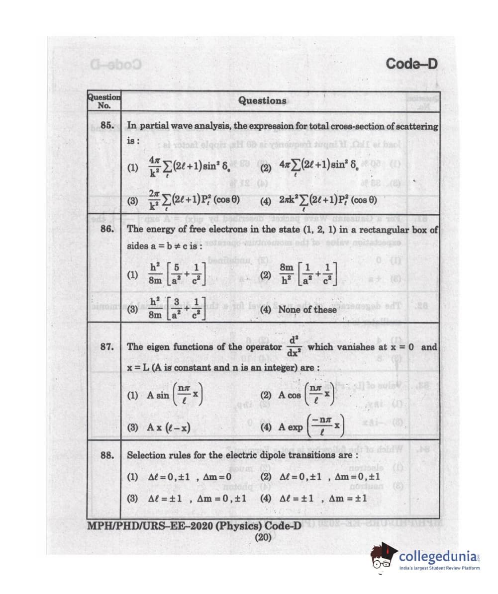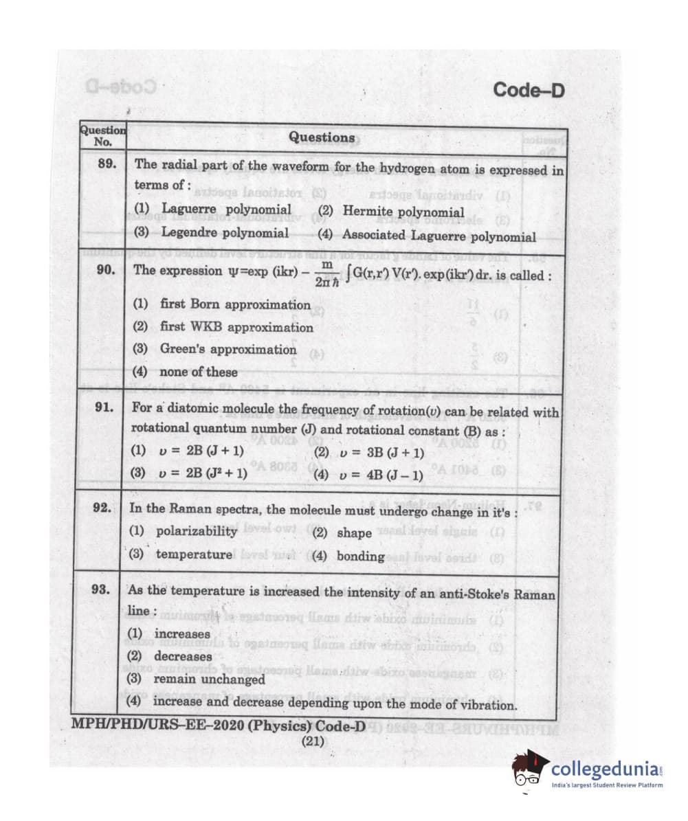 MDUCEE 2020 M.Phil/Ph.D/URS – Physics Set D Question Paper with Answer Key PDFs