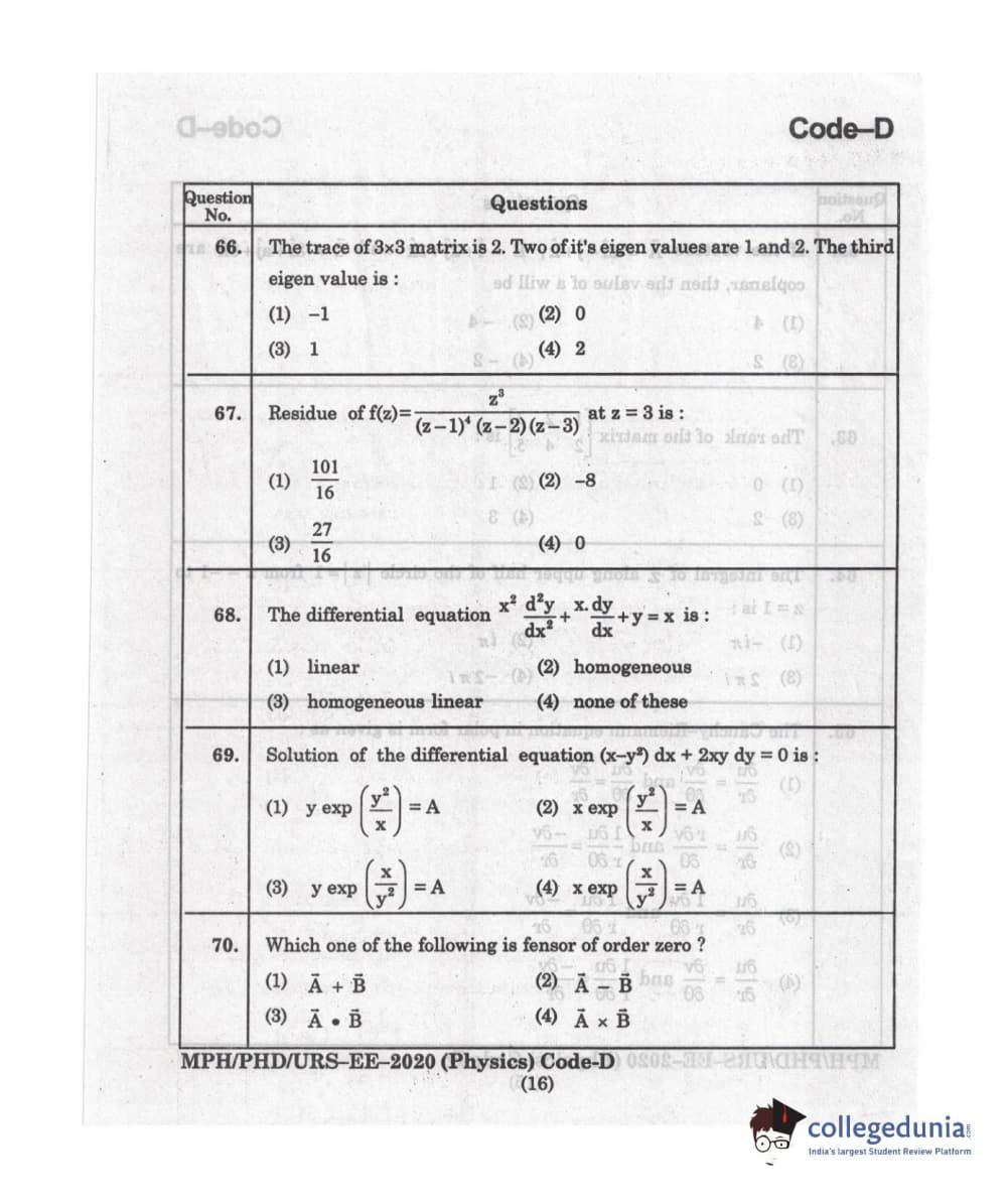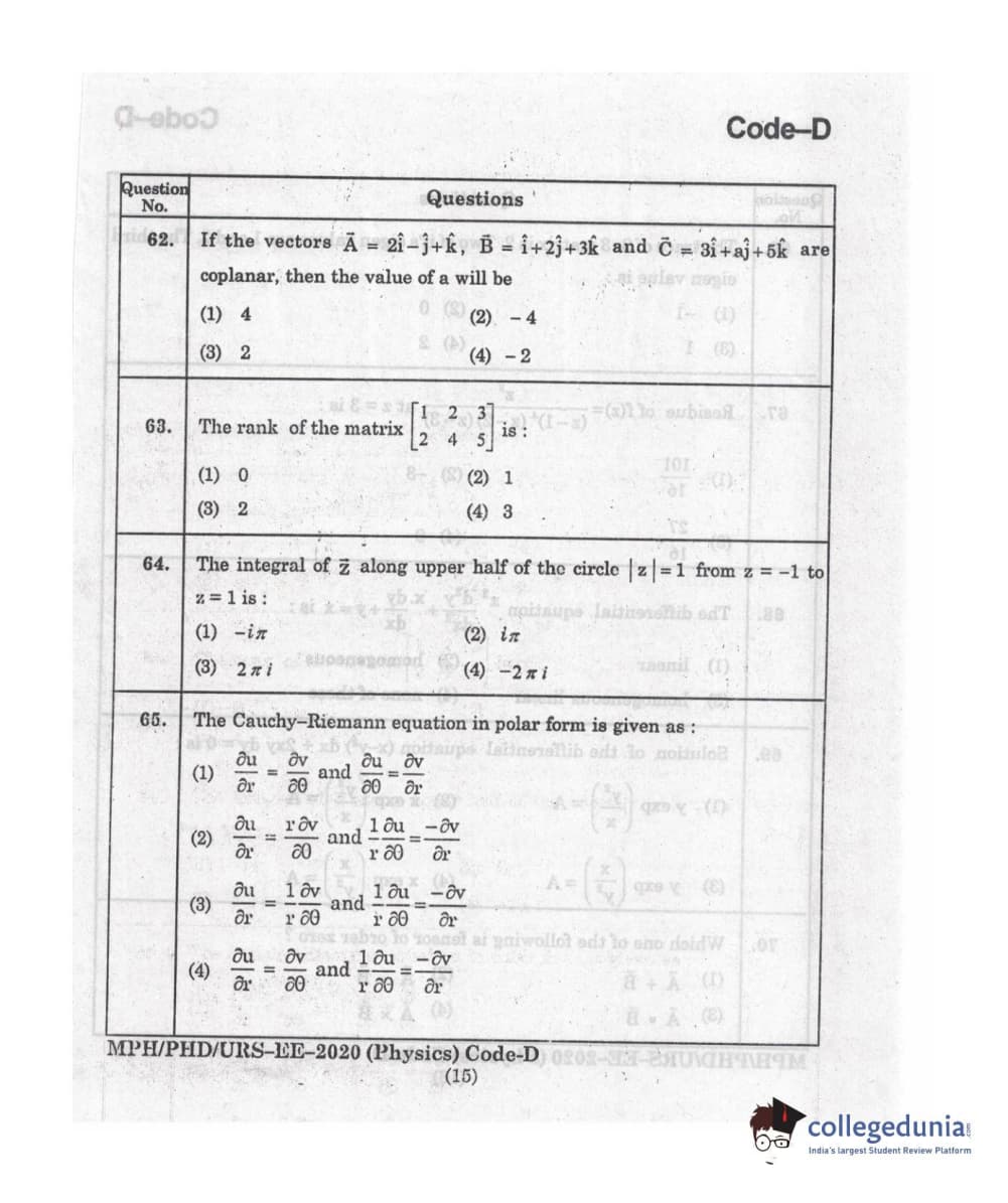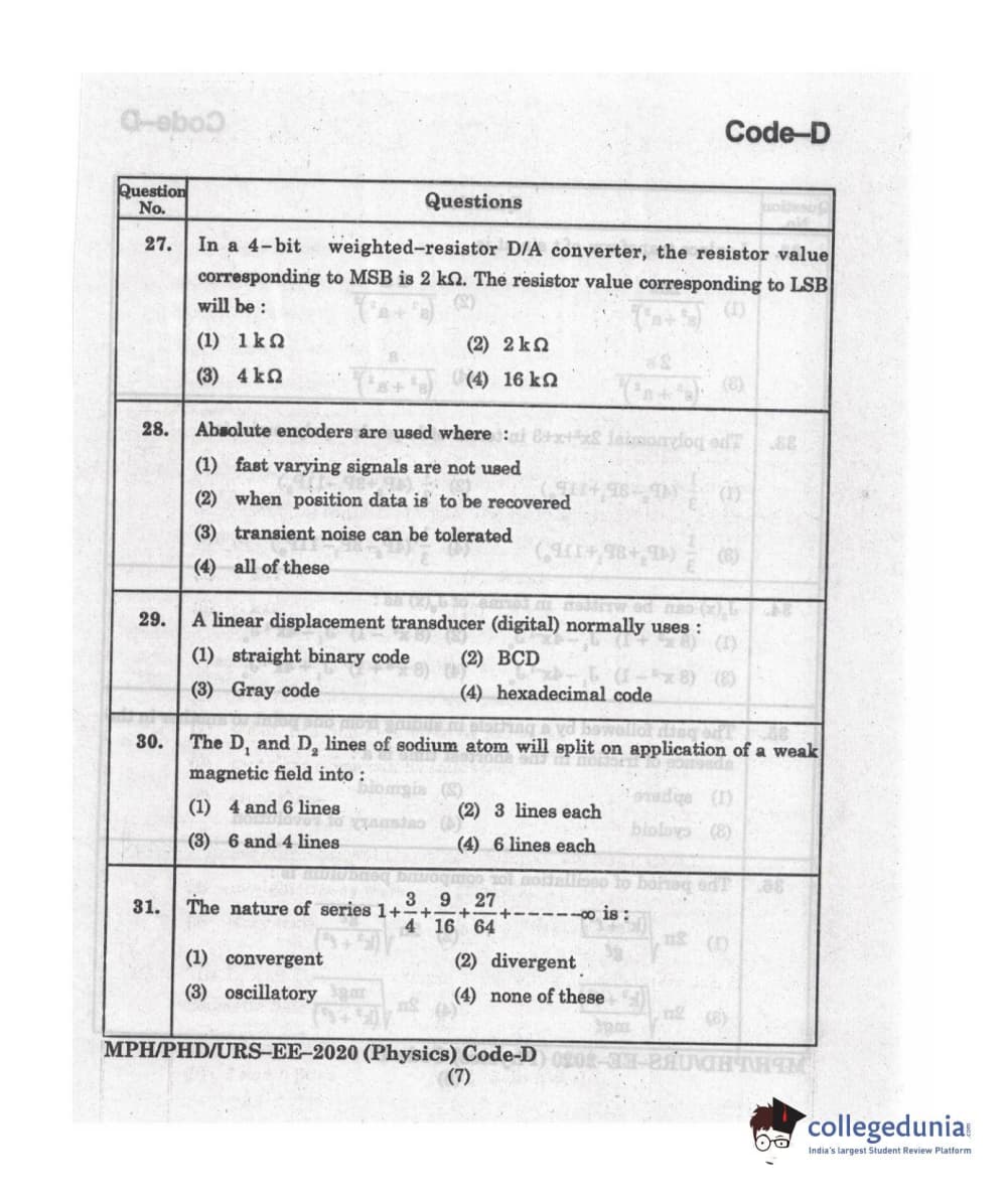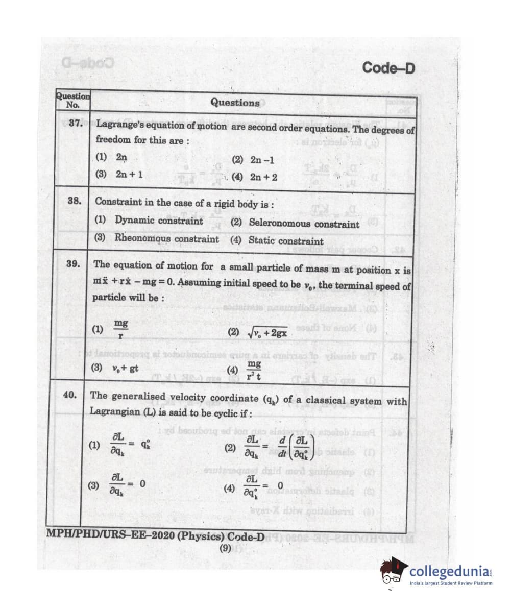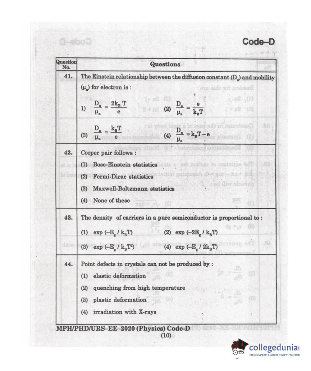 MDUCEE 2020 M.Phil/Ph.D/URS – Physics Set D Question Paper with Answer Key PDFs