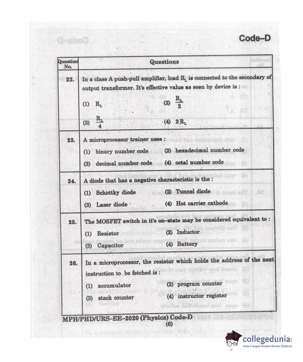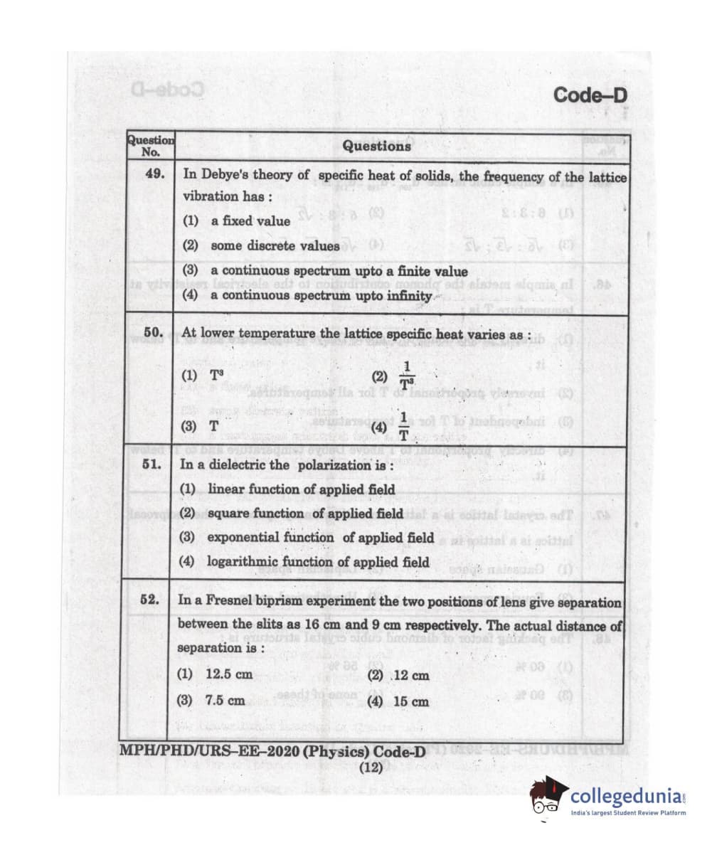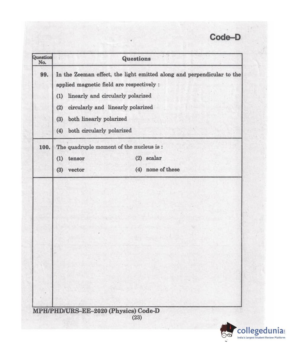 | MDUCEE 2020 M.Phil/Ph.D/URS – Physics Set D Question Paper PDF | MDUCEE 2020 M.Phil/Ph.D/URS – Physics Set D Answer Key PDF |