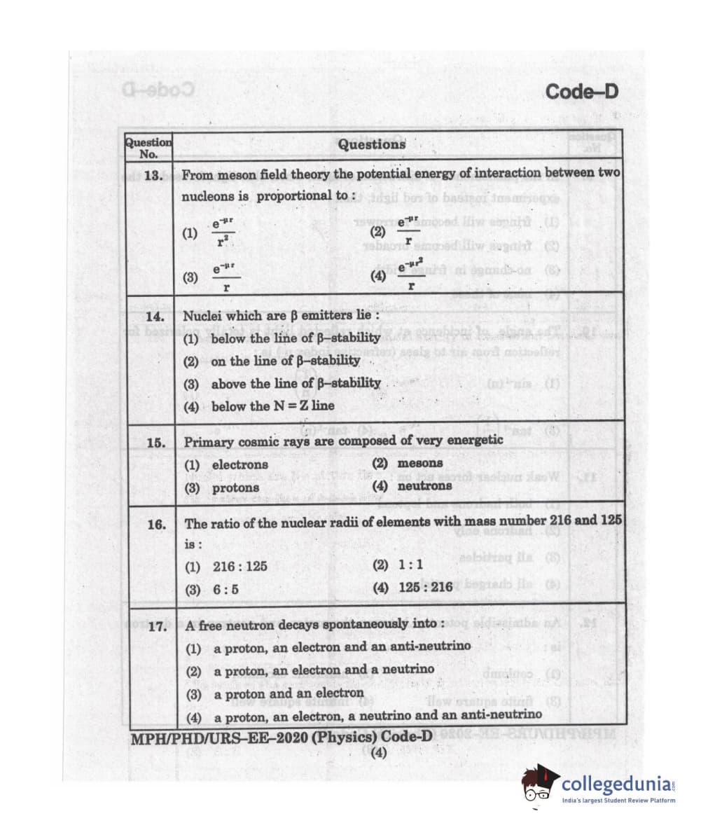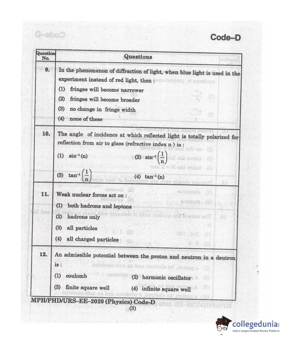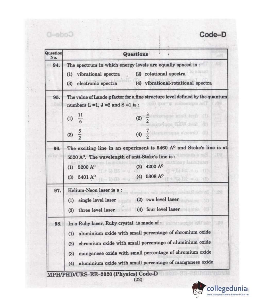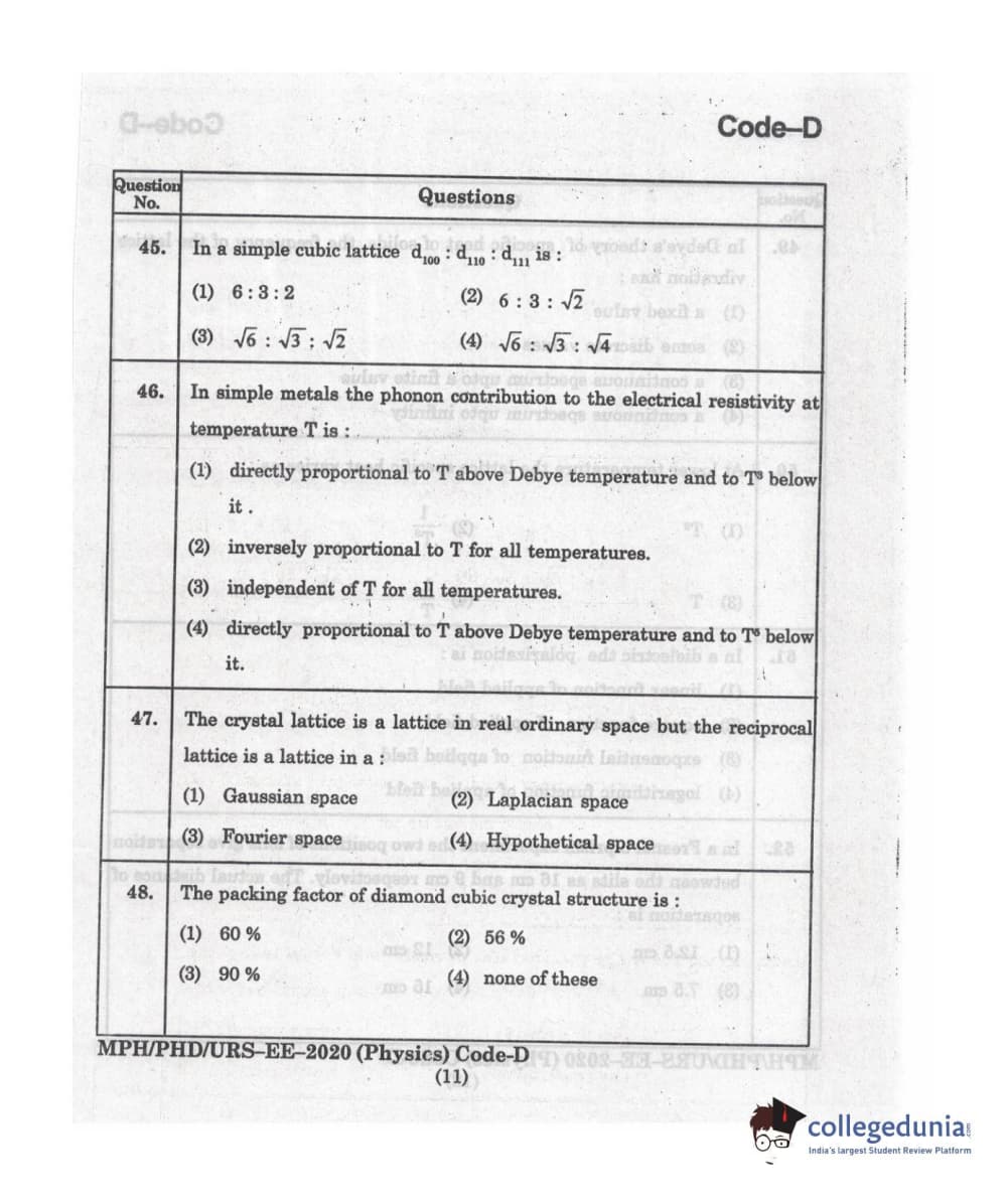 | MDUCEE 2020 M.Phil/Ph.D/URS – Physics Set D Question Paper PDF | MDUCEE 2020 M.Phil/Ph.D/URS – Physics Set D Answer Key PDF |
