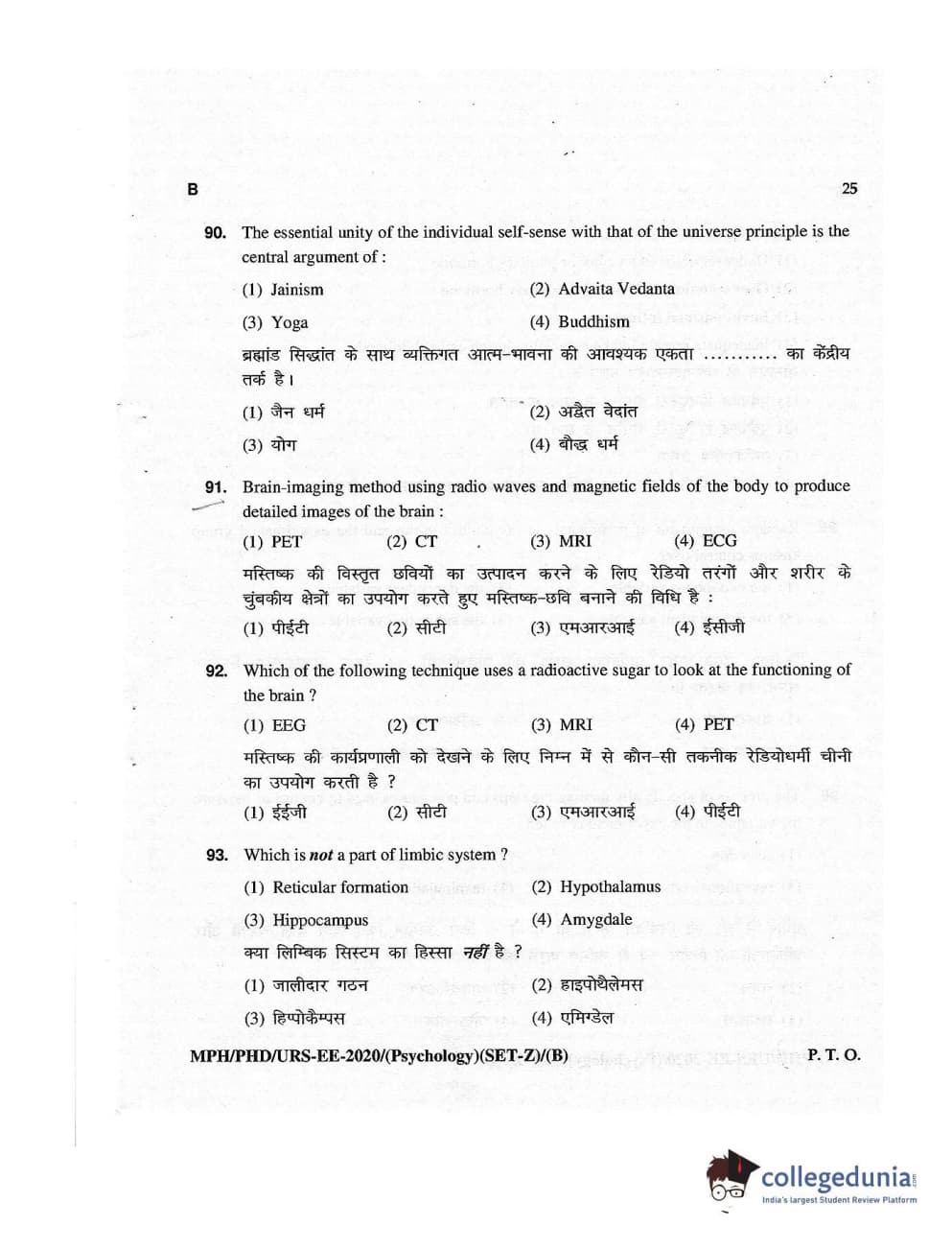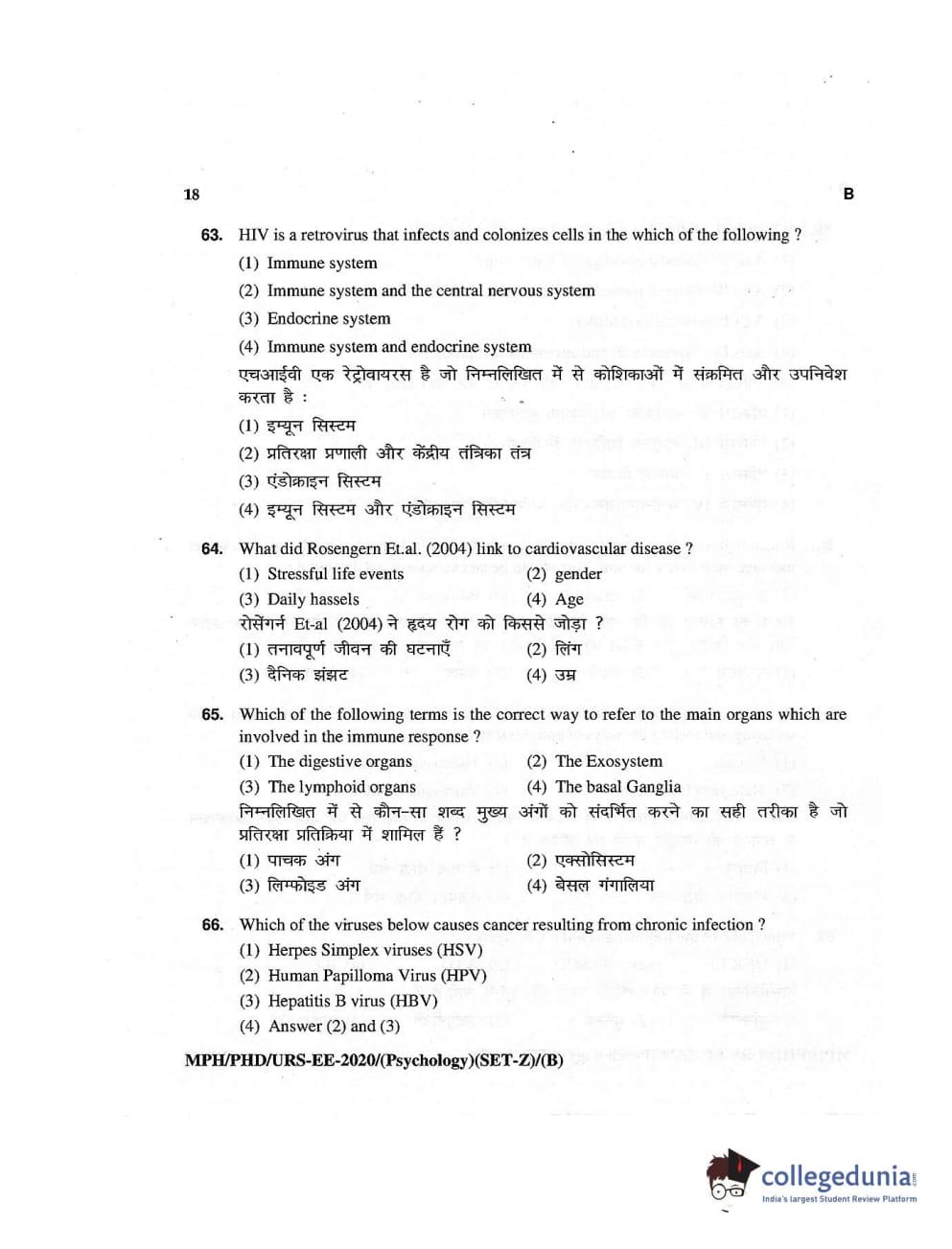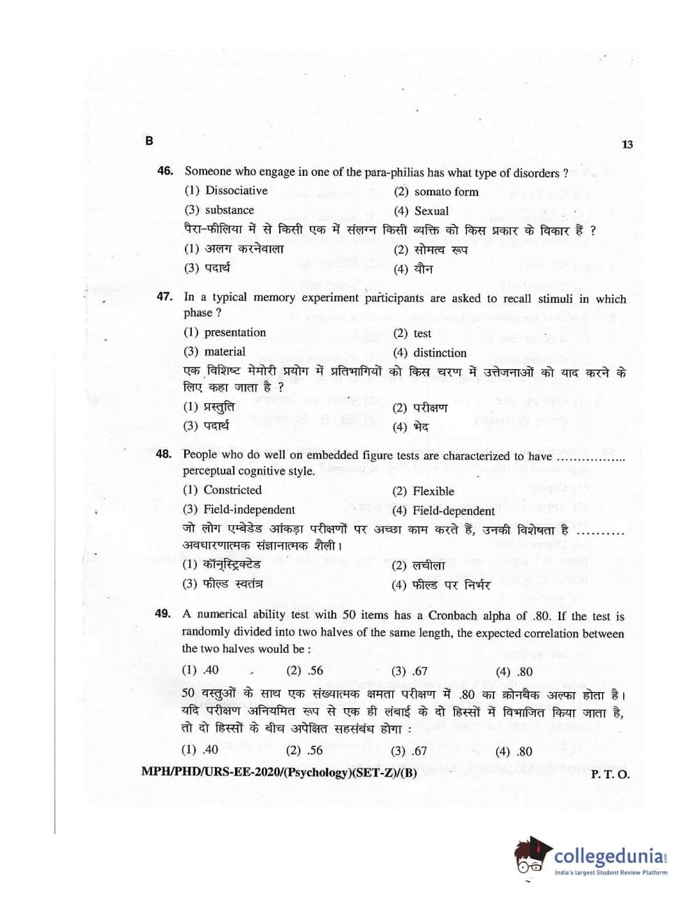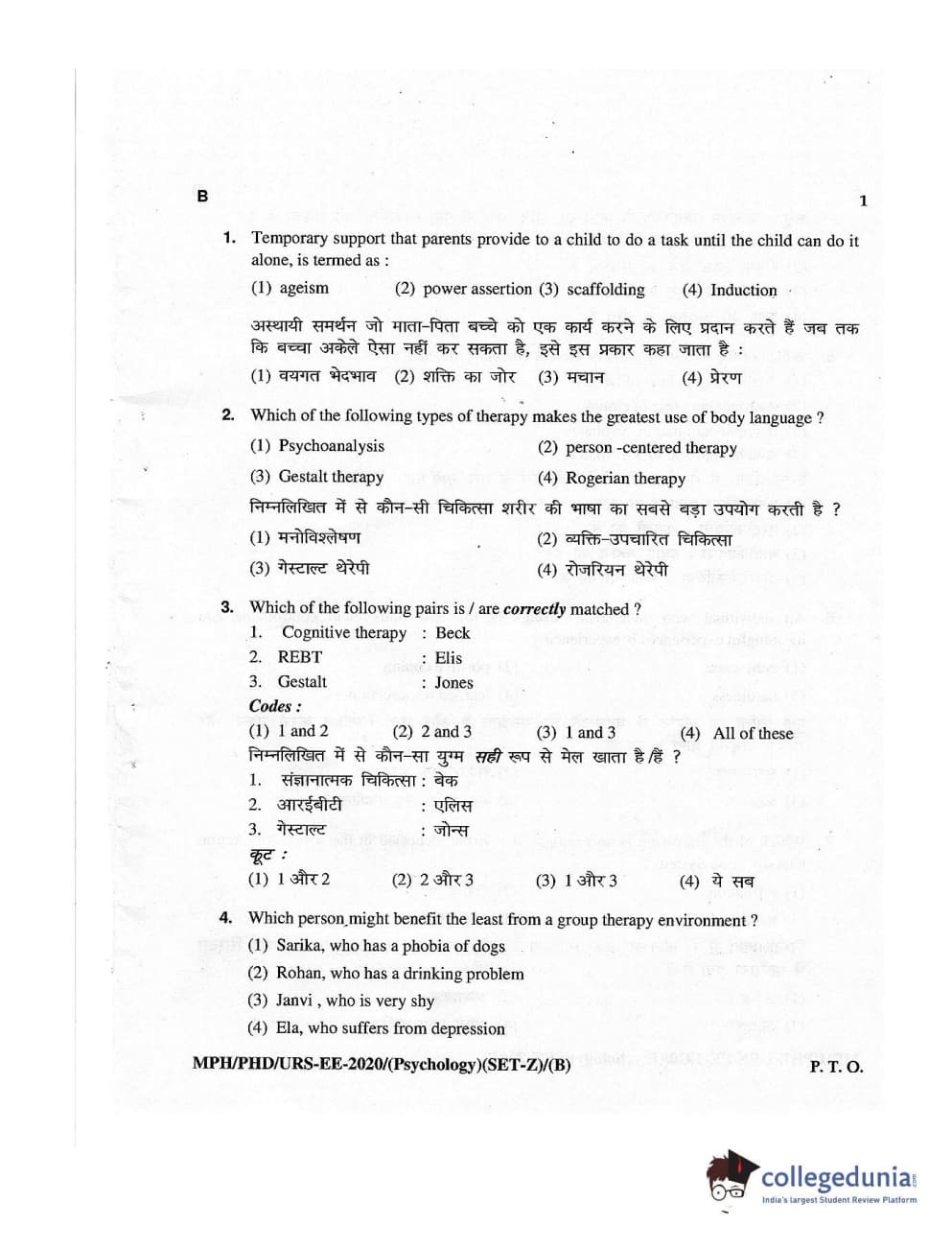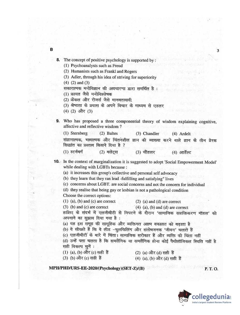 MDUCEE 2020 M.Phil/Ph.D/URS – Psychology Set B Question Paper with Answer Key PDFs