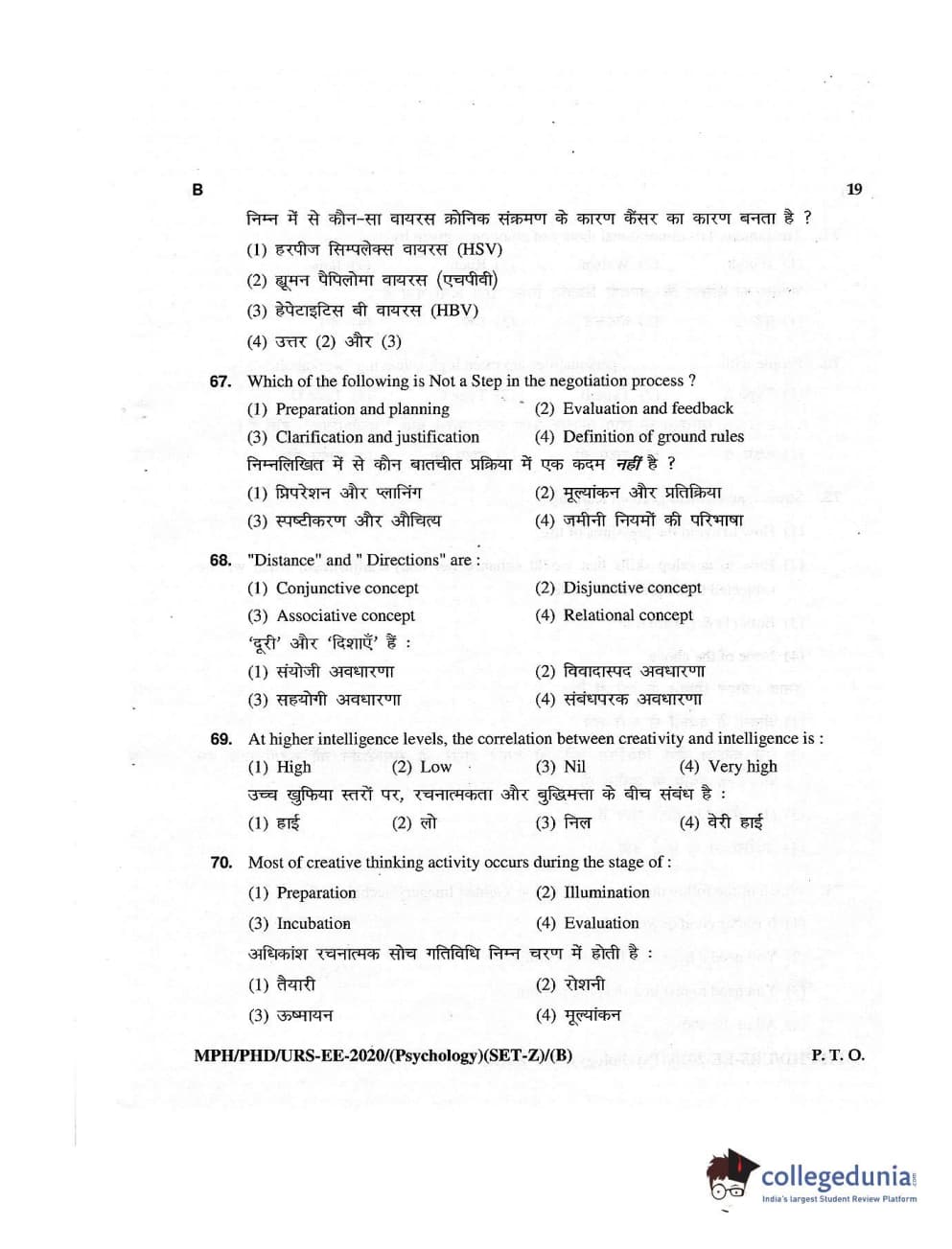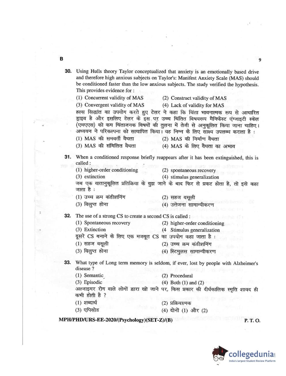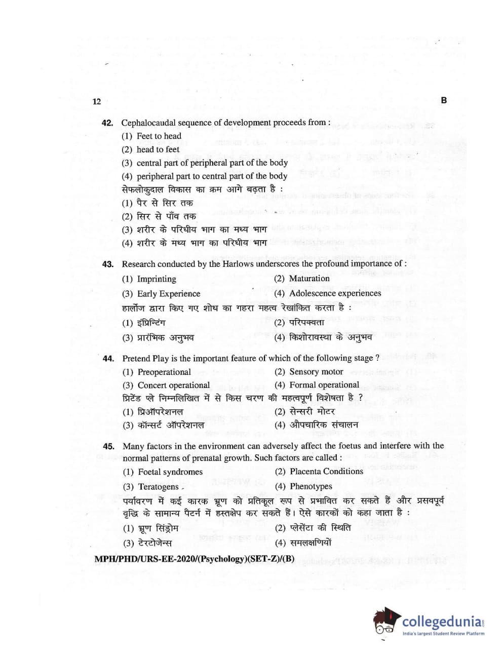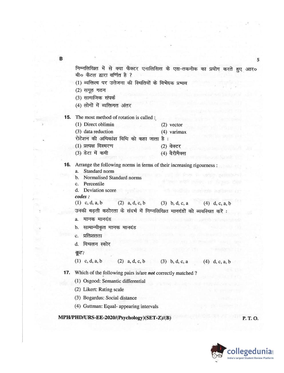 MDUCEE 2020 M.Phil/Ph.D/URS – Psychology Set B Question Paper with Answer Key PDFs