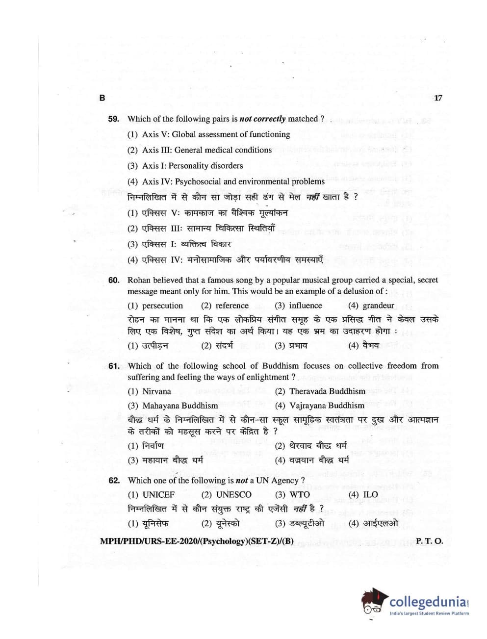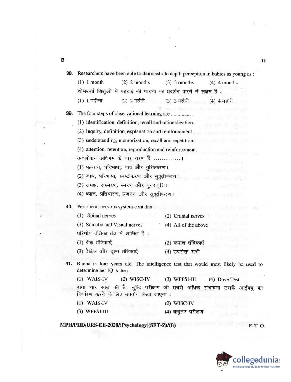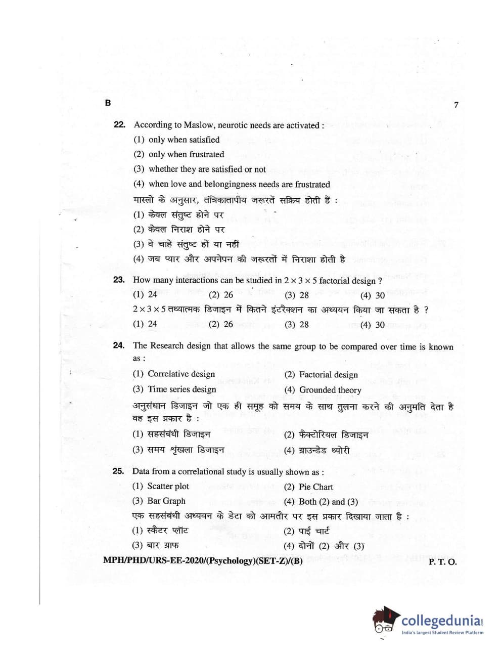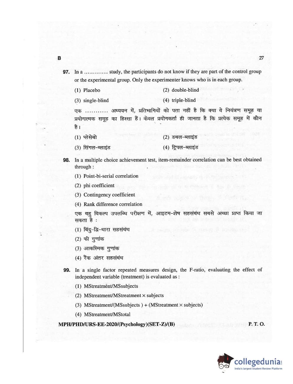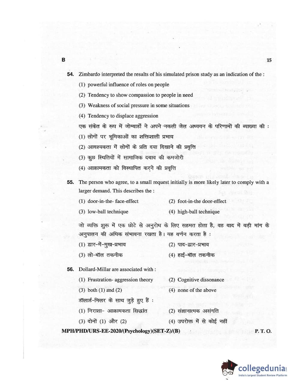 MDUCEE 2020 M.Phil/Ph.D/URS – Psychology Set B Question Paper with Answer Key PDFs