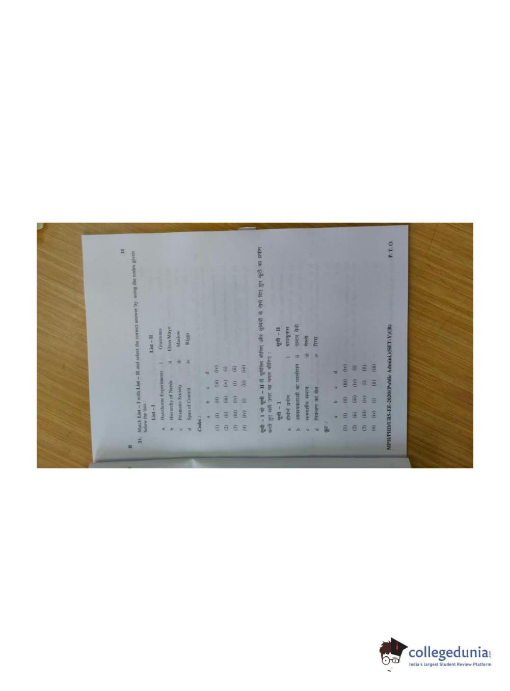 MDUCEE 2020 M.Phil/Ph.D/URS - Public Administration Set B Question Paper with Answer Key PDFs