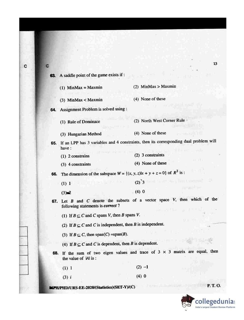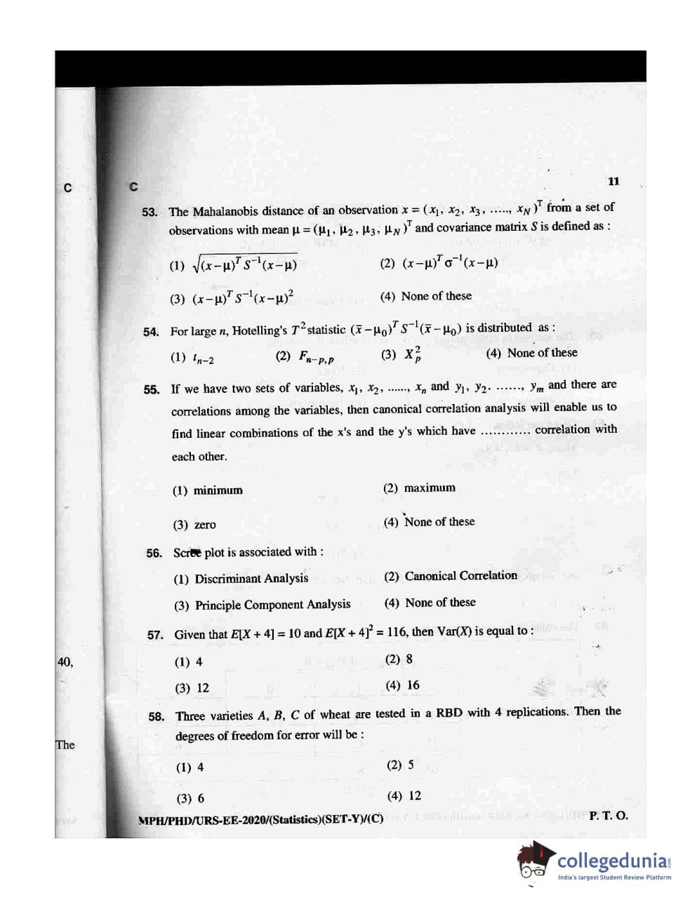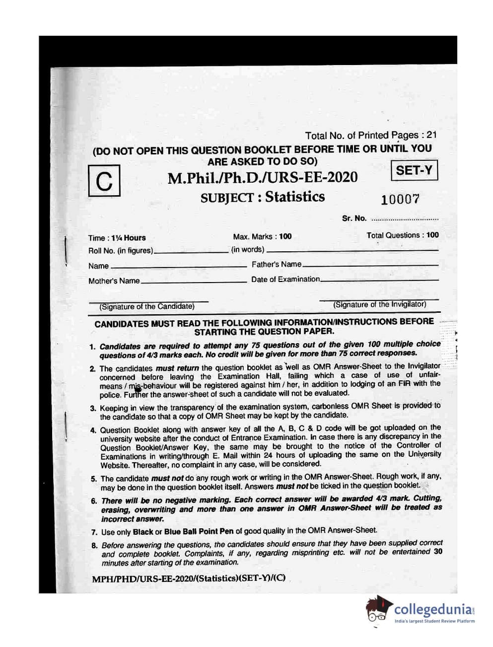 MDUCEE 2020 M.Phil/Ph.D/URS - Statistics Set C Question paper with answer key pdf is available for download. The exam was successfully organized by Maharishi Dayanand University. The question paper comprised a total of 100 questions.