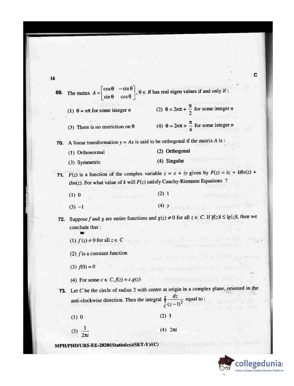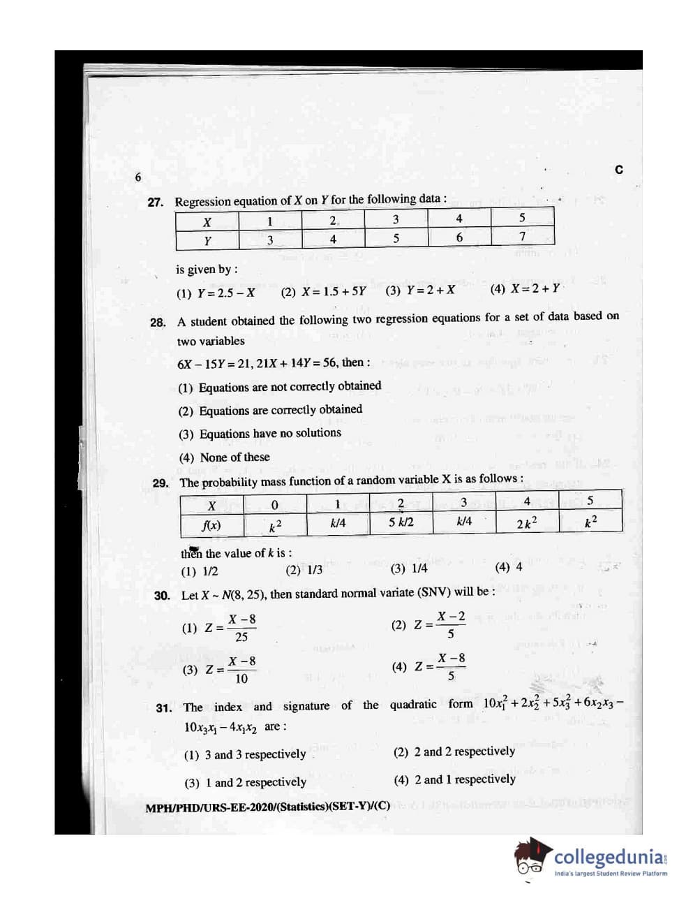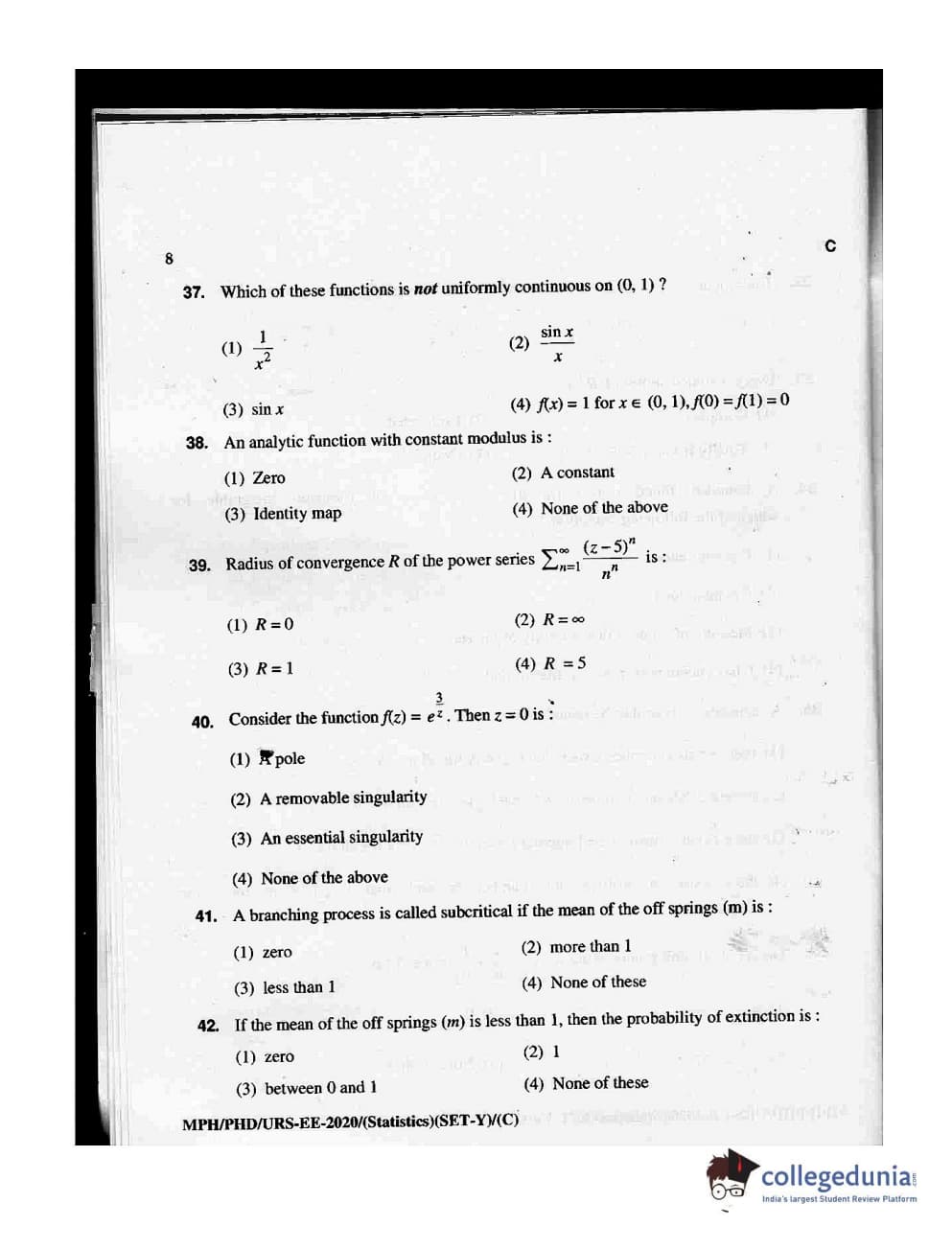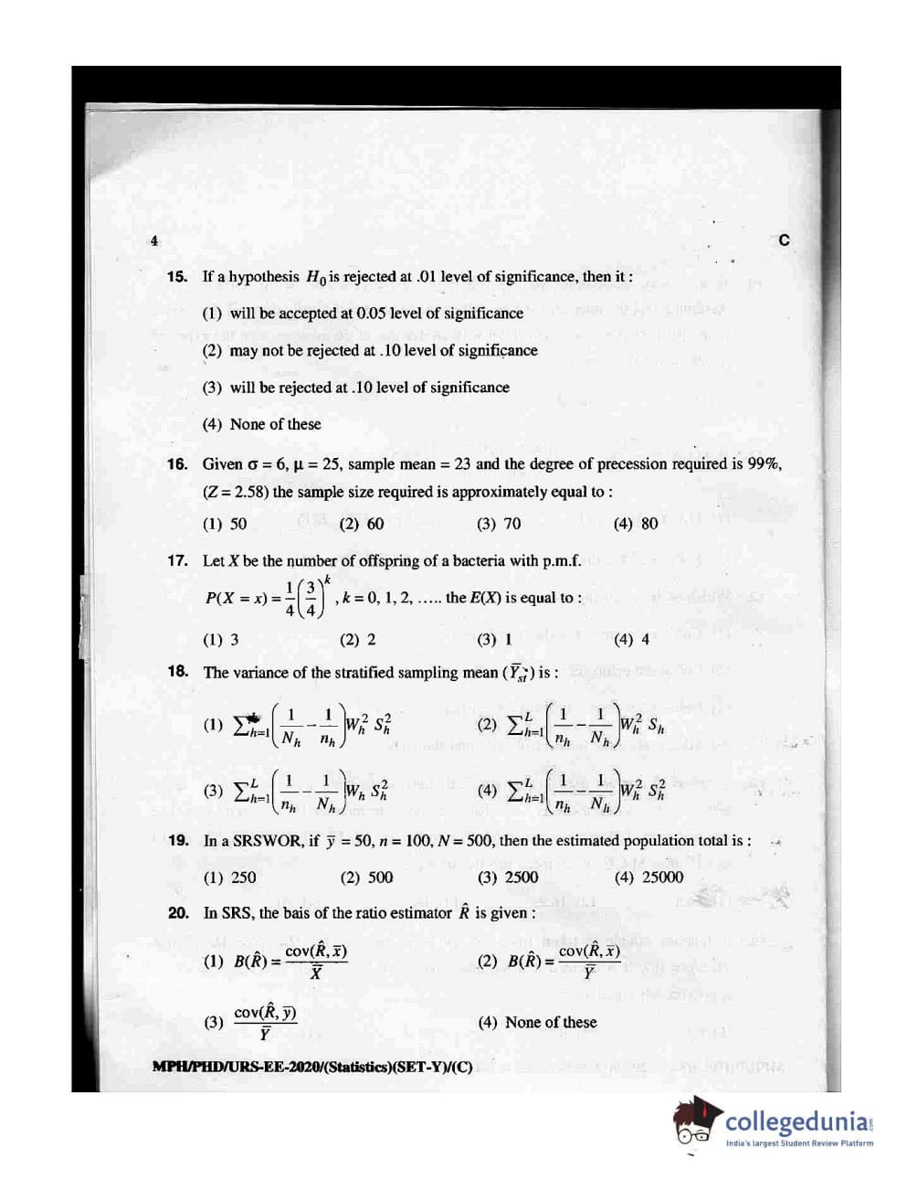 MDUCEE 2020 M.Phil/Ph.D/URS - Statistics Set C Question Paper with Answer Key PDFs
