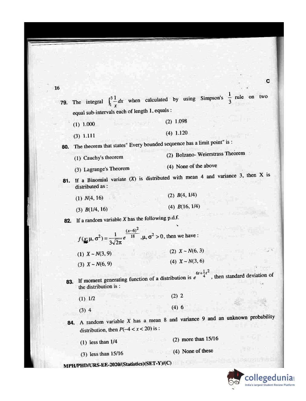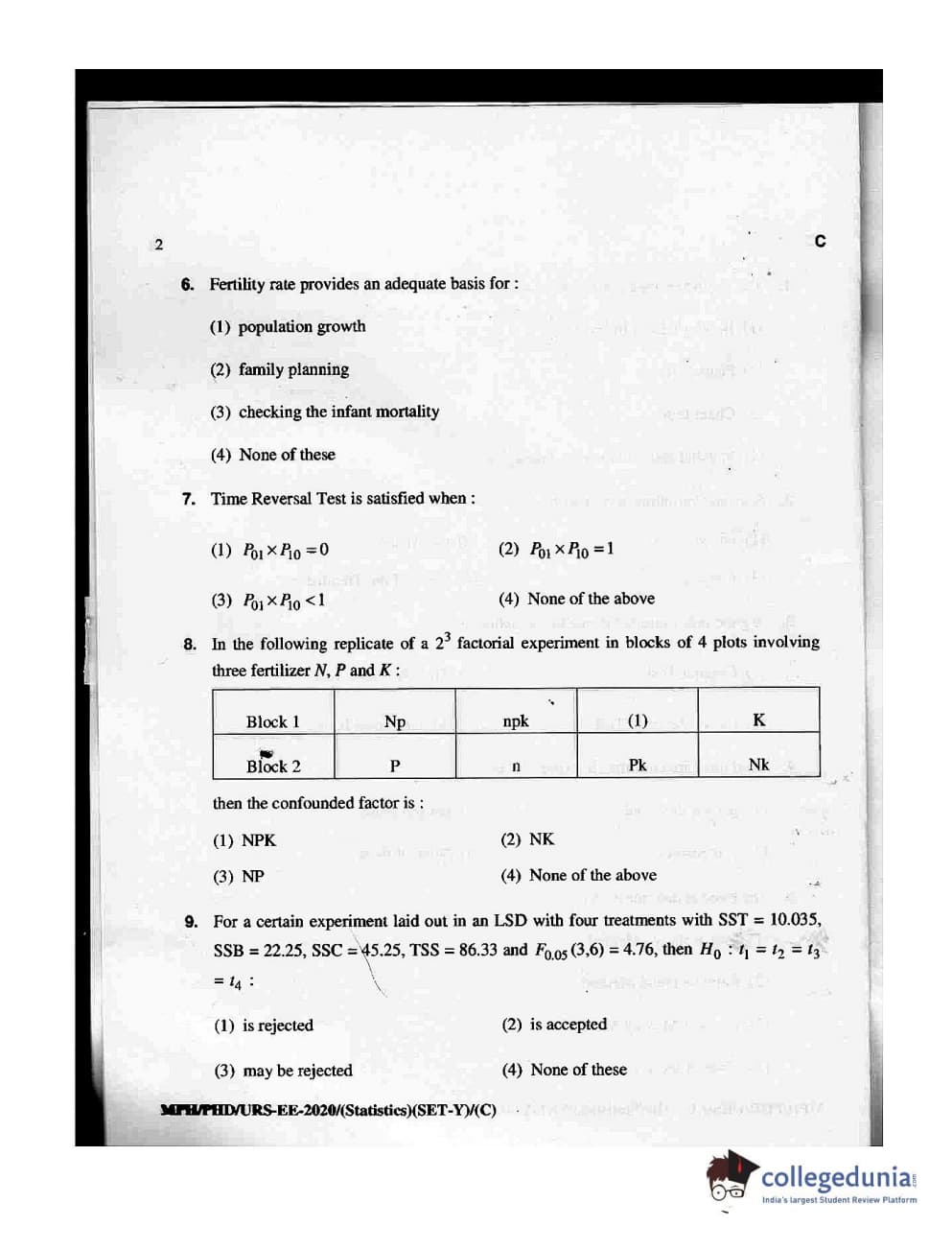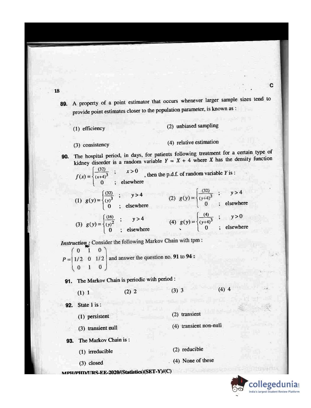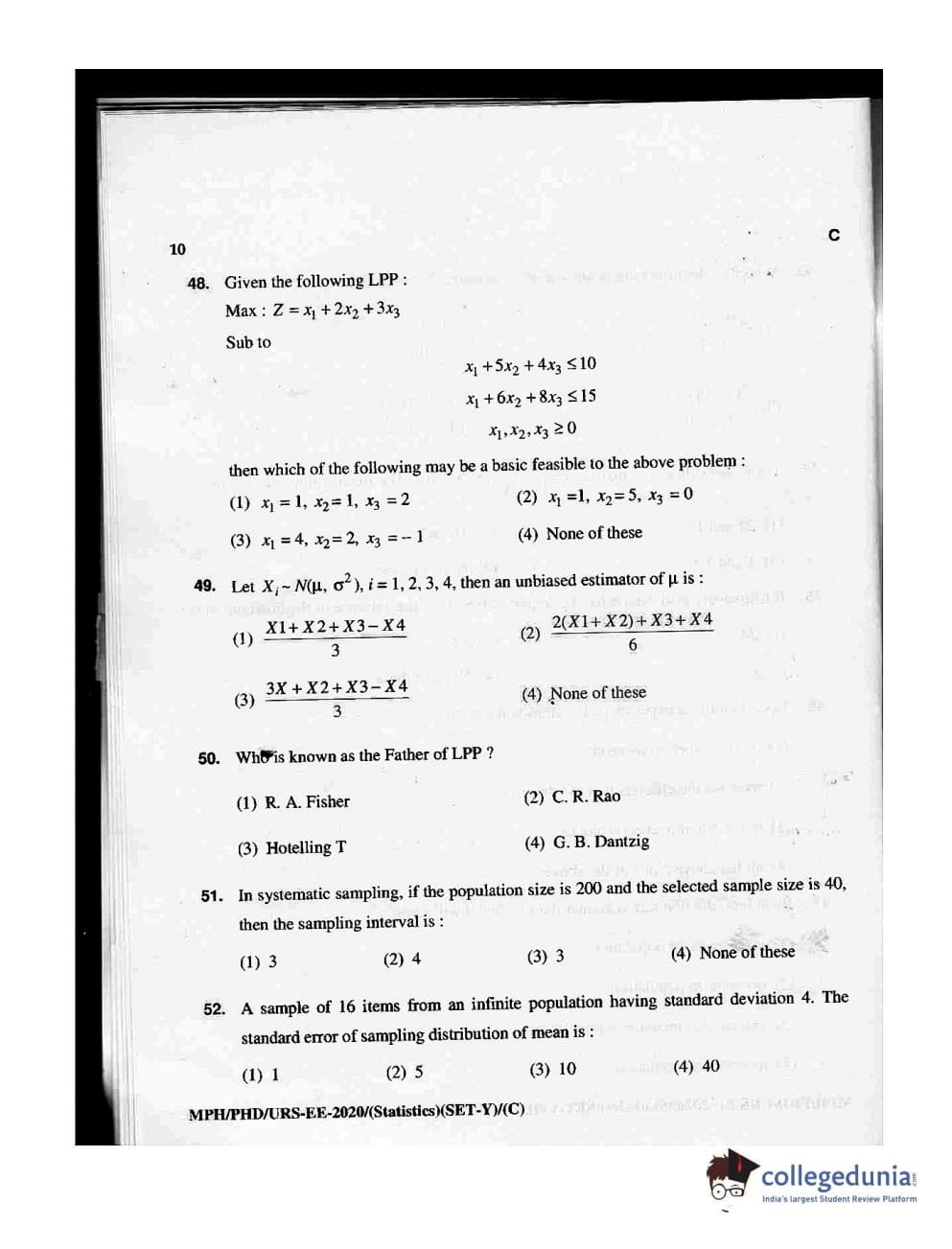 MDUCEE 2020 M.Phil/Ph.D/URS - Statistics Set C Question Paper with Answer Key PDFs